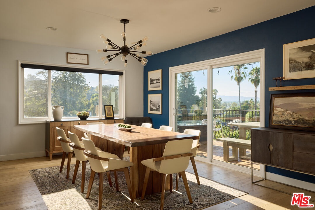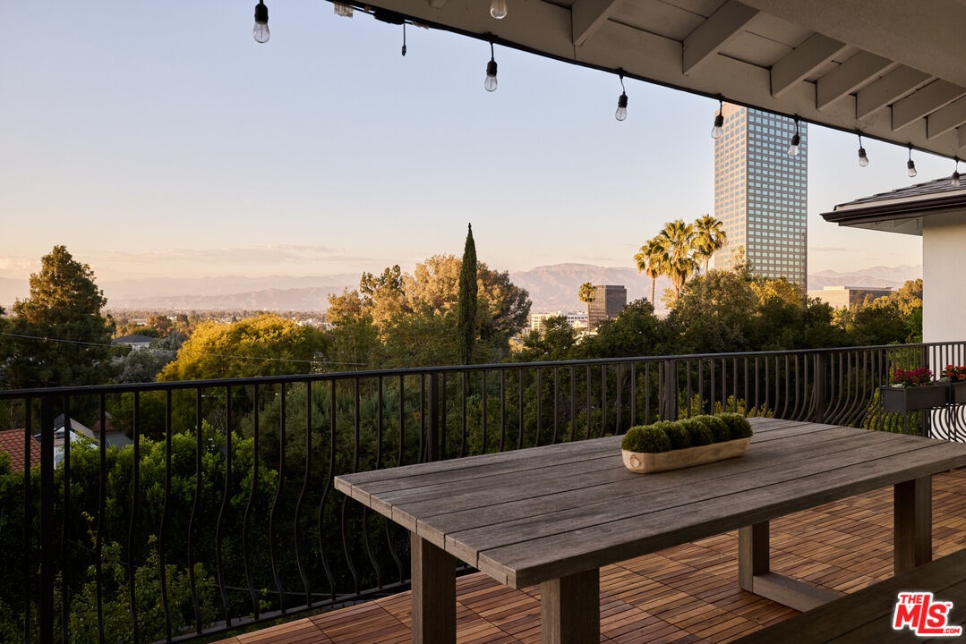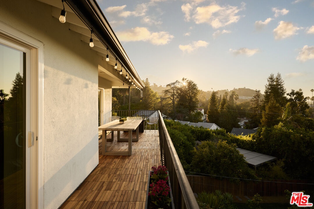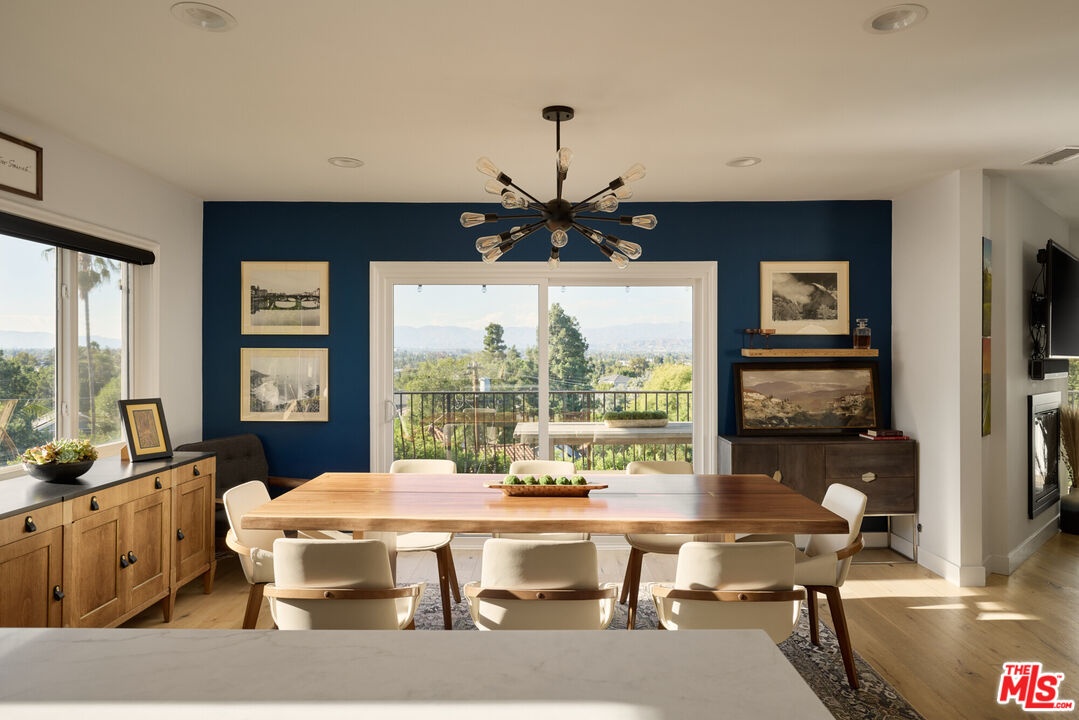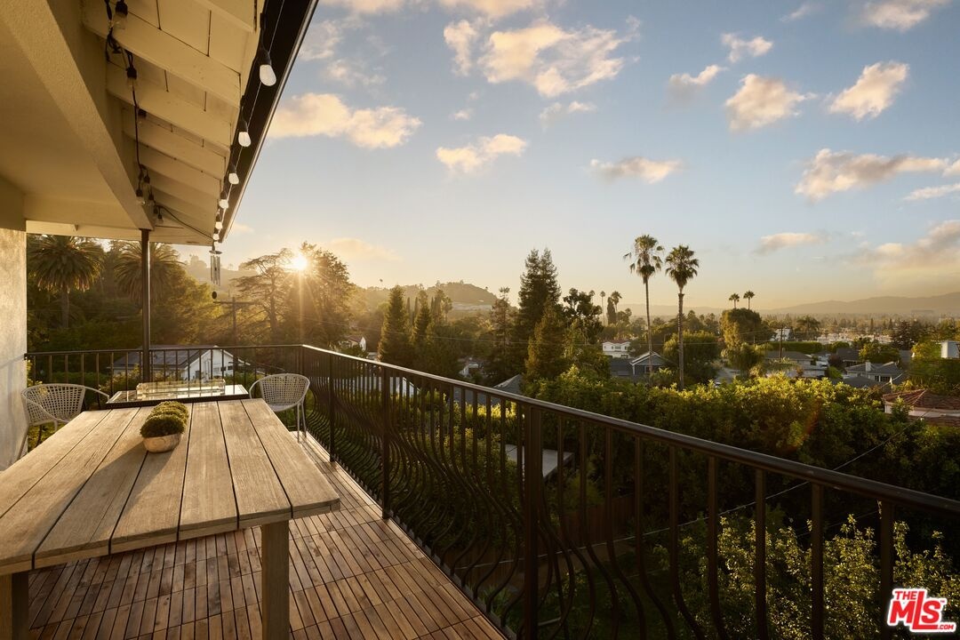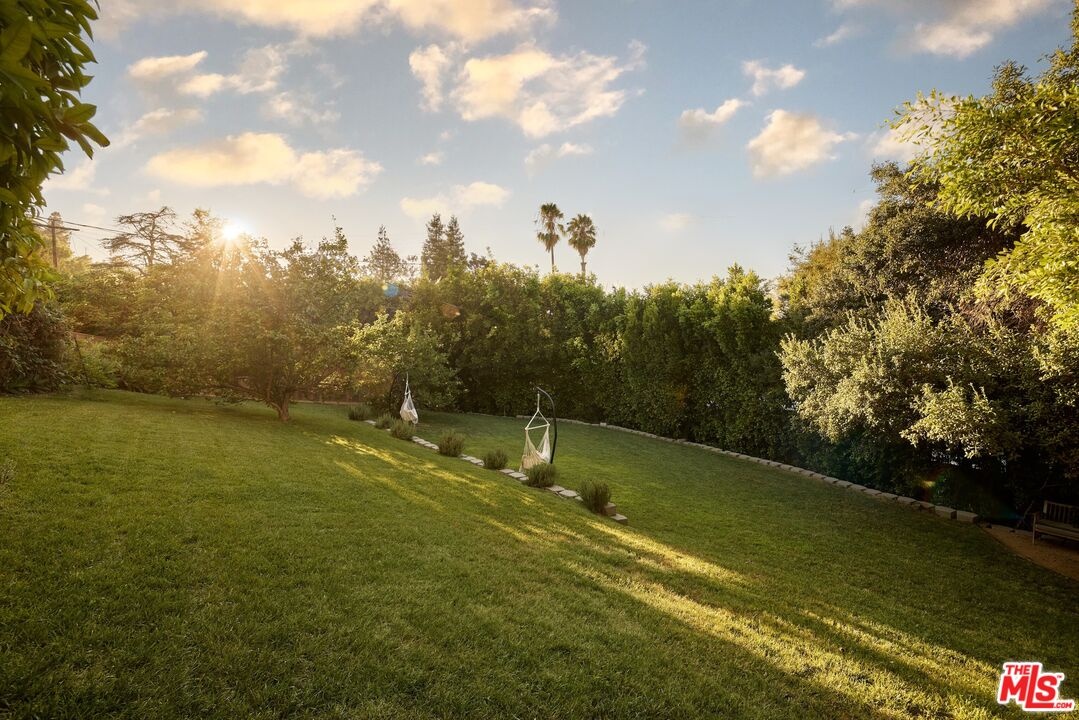 Sitting front row on more than a quarter-acre of park-like grounds, 3964 Fredonia is a rare offering that blends commanding city views, a modern residence, and one of the largest flat, usable backyards in the hills. Spanning two levels, the home offers an open floor plan with new wide-plank wood floors, recessed lighting, and expansive windows framing treetop and mountain views from nearly every room. The chef's kitchen is outfitted with new stainless-steel appliances, quartz countertops, a walk-in pantry, breakfast bar, built-in wine fridge, and dual dishwashers designed for both function and flow. The adjacent dining area is wrapped in glass and opens to a private deck overlooking the city, with snowcapped mountains visible on clear days. A side balcony framed by bougainvillea creates a picturesque setting for morning coffee or evening sunsets. Downstairs, the private primary suite feels like a retreat, surrounded by greenery with its own updated bath and generous built-ins. Additional bedrooms, a dedicated office, and multiple flexible spaces provide room for family and guests, while the family room is anchored by a restored gray lime-wash fireplace and custom built-in shelving with integrated lighting. The grounds are a true rarity for the area, with a fully fenced, oversized lot framed by mature ficus that creates both privacy and possibility. Expansive flat lawn areas and multiple seating nooks invite alfresco dining, play, and pets, while also offering space to envision a future ADU or guest house. A front courtyard features a mini chef's garden and orchard with blackberries, citrus, and avocado trees, and the backyard boasts a drip-irrigation system that supports the lush landscaping. Sustainable upgrades include owned solar panels, an EV charger, Nest thermostat, and ADR security system with comprehensive monitoring. A two-car garage, laundry room with custom drying racks, and generous storage complete this versatile, design-forward getaway above the city.