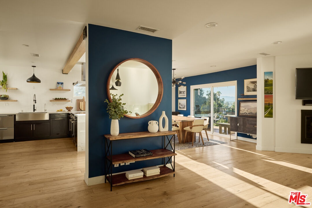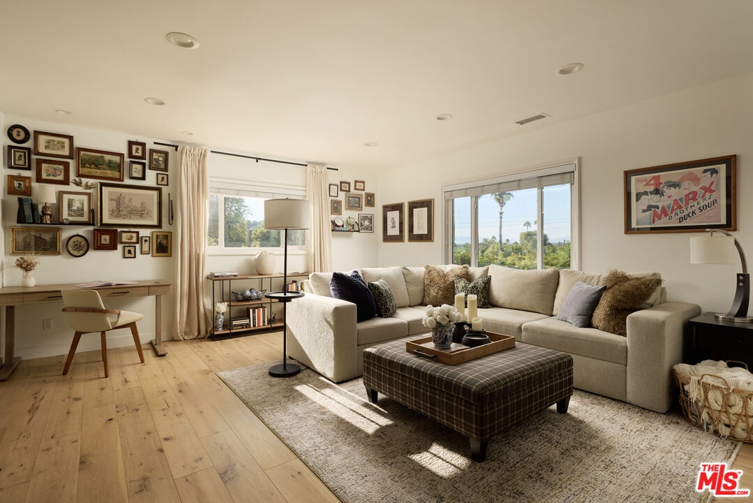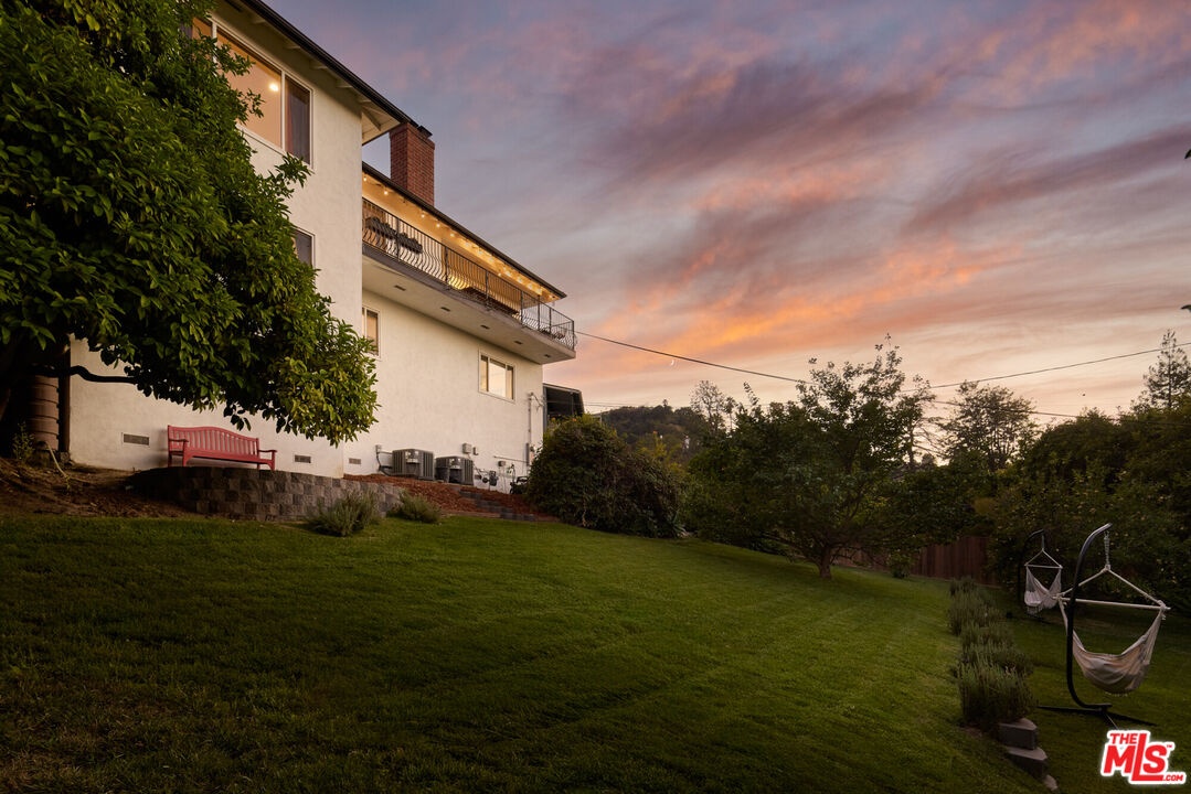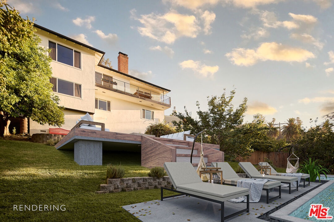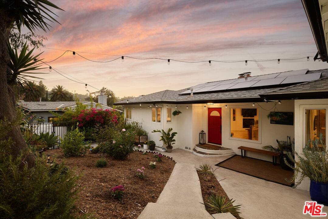 Sitting front row on more than a quarter-acre of park-like grounds, 3964 Fredonia is a rare offering that blends commanding city views, a modern residence, and one of the largest flat, usable backyards in the hills. Spanning two levels, the home offers an open floor plan with new wide-plank wood floors, recessed lighting, and expansive windows framing treetop and mountain views from nearly every room. The chef's kitchen is outfitted with new stainless-steel appliances, quartz countertops, a walk-in pantry, breakfast bar, built-in wine fridge, and dual dishwashers designed for both function and flow. The adjacent dining area is wrapped in glass and opens to a private deck overlooking the city, with snowcapped mountains visible on clear days. A side balcony framed by bougainvillea creates a picturesque setting for morning coffee or evening sunsets. Downstairs, the private primary suite feels like a retreat, surrounded by greenery with its own updated bath and generous built-ins. Additional bedrooms, a dedicated office, and multiple flexible spaces provide room for family and guests, while the family room is anchored by a restored gray lime-wash fireplace and custom built-in shelving with integrated lighting. The grounds are a true rarity for the area, with a fully fenced, oversized lot framed by mature ficus that creates both privacy and possibility. Expansive flat lawn areas and multiple seating nooks invite alfresco dining, play, and pets, while also offering space to envision a future ADU or guest house. A front courtyard features a mini chef's garden and orchard with blackberries, citrus, and avocado trees, and the backyard boasts a drip-irrigation system that supports the lush landscaping. Sustainable upgrades include owned solar panels, an EV charger, Nest thermostat, and ADR security system with comprehensive monitoring. A two-car garage, laundry room with custom drying racks, and generous storage complete this versatile, design-forward getaway above the city.