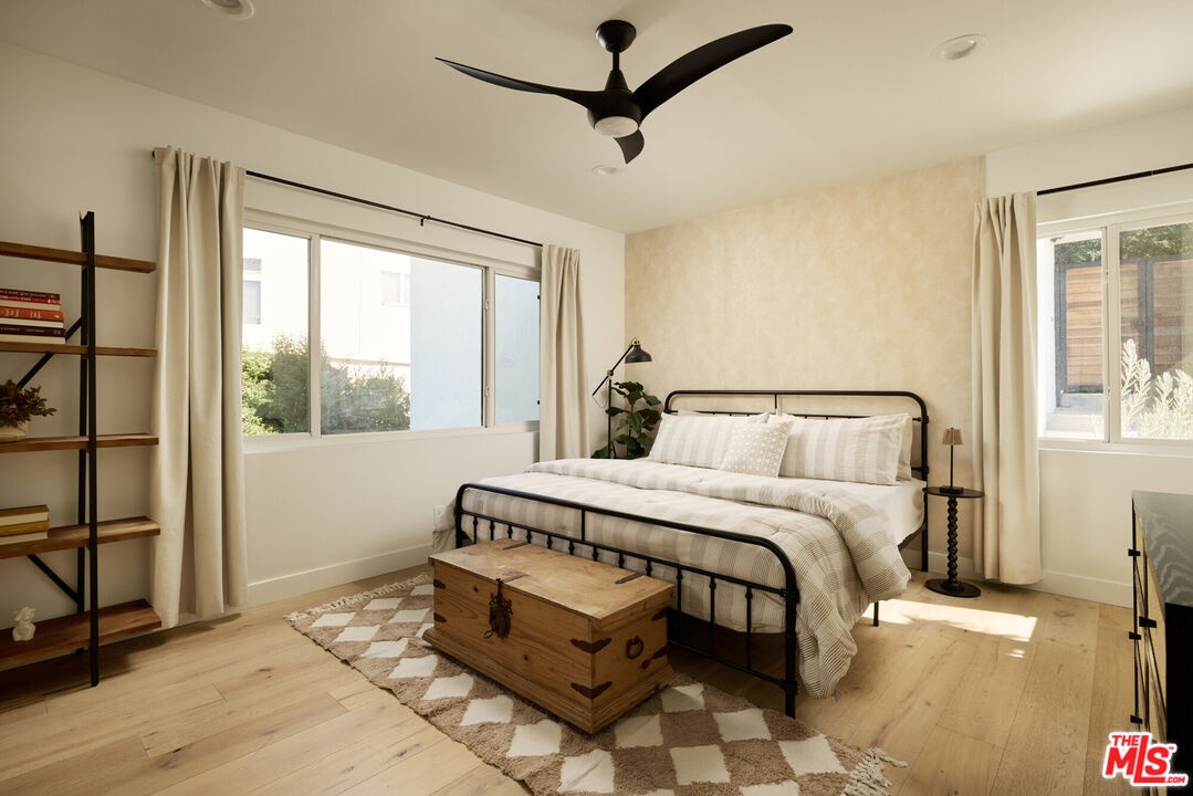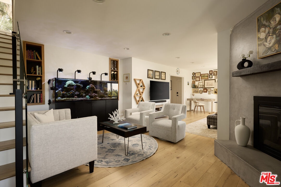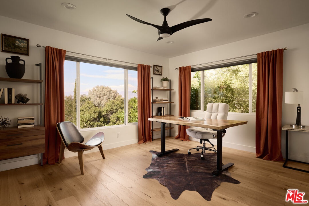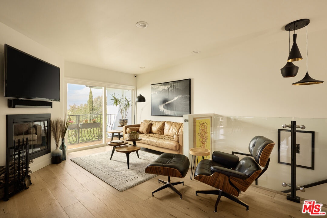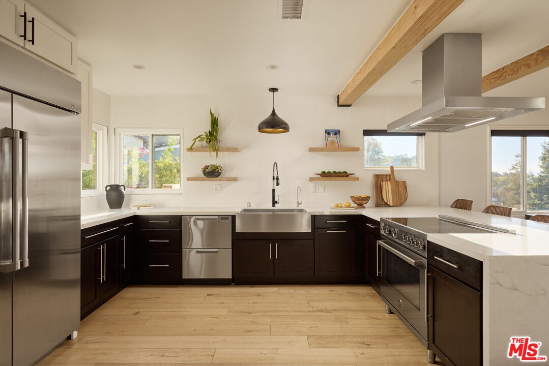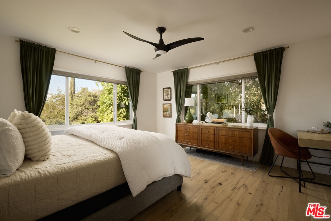 Sitting front row on more than a quarter-acre of park-like grounds, 3964 Fredonia is a rare offering that blends commanding city views, a modern residence, and one of the largest flat, usable backyards in the hills. Spanning two levels, the home offers an open floor plan with new wide-plank wood floors, recessed lighting, and expansive windows framing treetop and mountain views from nearly every room. The chef's kitchen is outfitted with new stainless-steel appliances, quartz countertops, a walk-in pantry, breakfast bar, built-in wine fridge, and dual dishwashers designed for both function and flow. The adjacent dining area is wrapped in glass and opens to a private deck overlooking the city, with snowcapped mountains visible on clear days. A side balcony framed by bougainvillea creates a picturesque setting for morning coffee or evening sunsets. Downstairs, the private primary suite feels like a retreat, surrounded by greenery with its own updated bath and generous built-ins. Additional bedrooms, a dedicated office, and multiple flexible spaces provide room for family and guests, while the family room is anchored by a restored gray lime-wash fireplace and custom built-in shelving with integrated lighting. The grounds are a true rarity for the area, with a fully fenced, oversized lot framed by mature ficus that creates both privacy and possibility. Expansive flat lawn areas and multiple seating nooks invite alfresco dining, play, and pets, while also offering space to envision a future ADU or guest house. A front courtyard features a mini chef's garden and orchard with blackberries, citrus, and avocado trees, and the backyard boasts a drip-irrigation system that supports the lush landscaping. Sustainable upgrades include owned solar panels, an EV charger, Nest thermostat, and ADR security system with comprehensive monitoring. A two-car garage, laundry room with custom drying racks, and generous storage complete this versatile, design-forward getaway above the city.