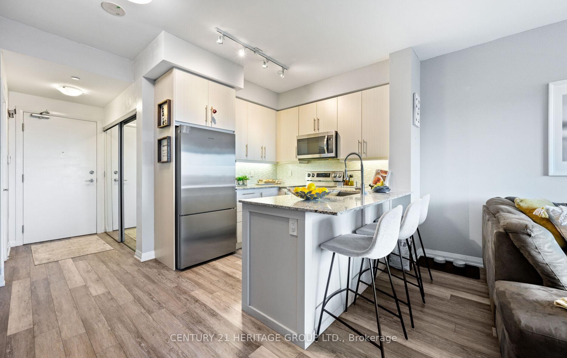 Modern, Quiet and Classy, 1+Den with parking and locker with a true resort-style feel. Thanks to the buildings unique raised podium design, this 4th-floor suite feels comfortably like the 2nd story ideal for those who prefer lower living or are uneasy with heights. Unlike many high-rises, this building is not congested, offering a more private, relaxed atmosphere. Resort-calibre amenities include a fully equipped fitness centre, a dedicated weight room, and a yoga/Pilates studio. Residents also enjoy an indoor pool, multimedia theatre room, two party rooms, guest suites, media/games room, and a dining/entertainment room. Outdoors, you'll find a rooftop deck with BBQs and dining areas and a green rooftop oasis where walking feels safe and secure. Additional conveniences include concierge service, indoor parking, visitor parking, and more lifestyle features that complete the resort experience. Suite 406 offers private greenery views, upgraded Silhouette-style blinds, and the most scenic balcony sunsets in the building. All of this in a prime Richmond Hill location, steps to transit, shopping, dining, and highways.