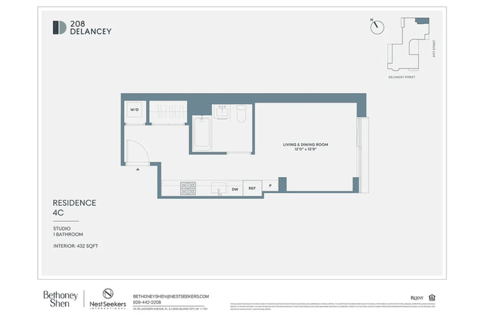 Residence 4C at 208 Delancey exemplifies modern living with a thoughtfully designed layout that offers endless possibilities for personalizing your space. This 432 sf studio is crafted to maximize both comfort and style. Enjoy serene eastern-facing views to start your day, along with high-end Miele appliances, including a dishwasher and in-unit washer and dryer—luxuries rarely found in studio homes.