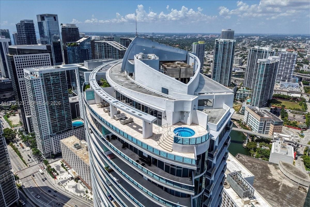 A House In The Sky with over 7000 sq ft! This extraordinary 2-Story PH spans over 4300 living sq ft & 2700 balcony sq ft with east panoramic views of Biscayne Bay & Ocean. Ideal for indoor & outdoor living with 5 balconies including a rooftop terrace and your very own private plunge pool. Features include a floating illuminated staircase, open chef’s kitchen with high-end Miele appliances, custom closets/doors, Tesla Charger & 2 oversized storage units. Primary suite w/spa-like marble bath & soaking tub. The 2nd floor is your ultimate entertainment center that can be converted into a 4th bedroom or in-law suite. Currently rented at $28k/month with a kickout clause. Epic Residences is conveniently located minutes from Brickell, Bayfront, & One World Center. This is truly a House in the Sky!