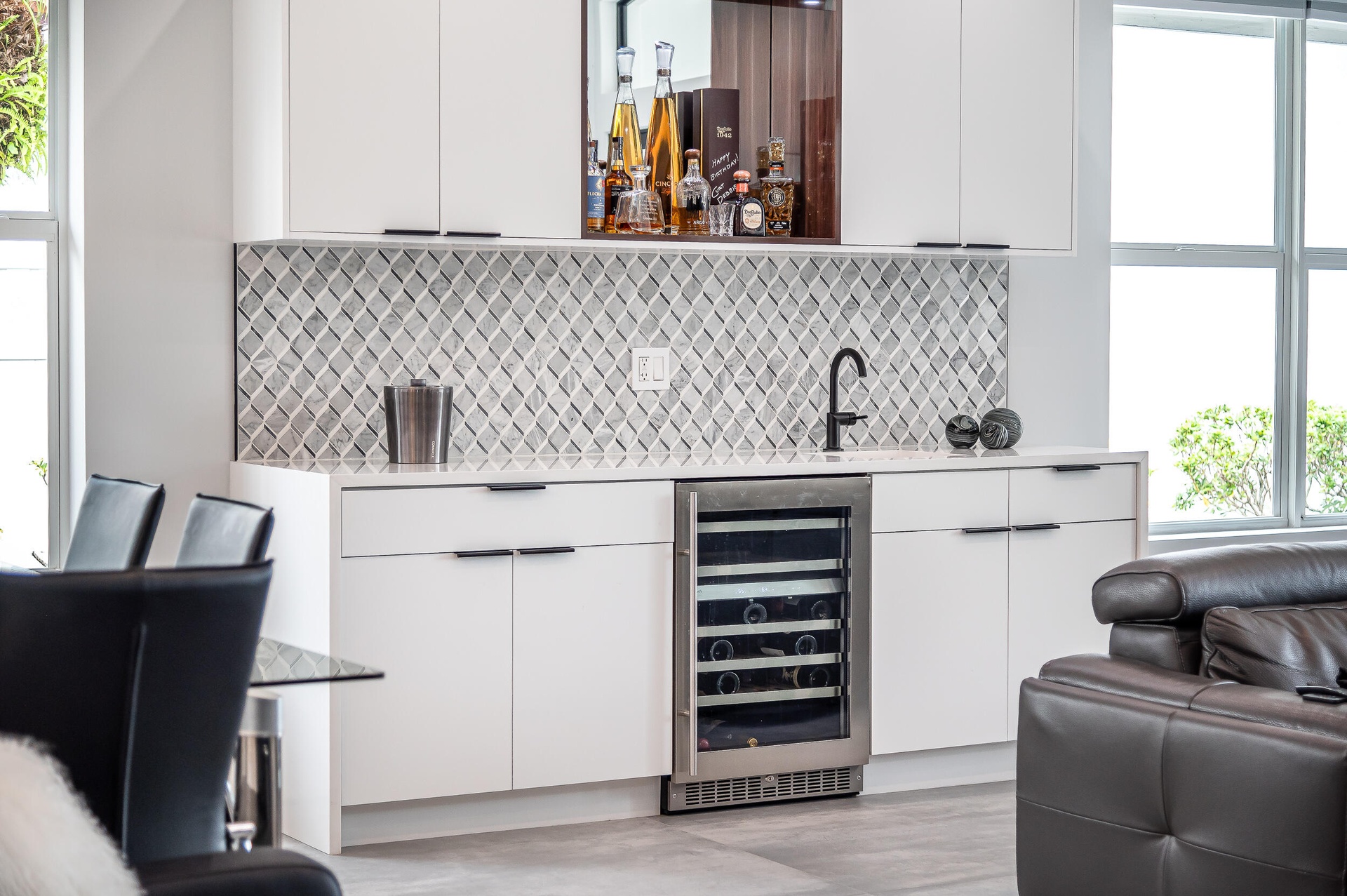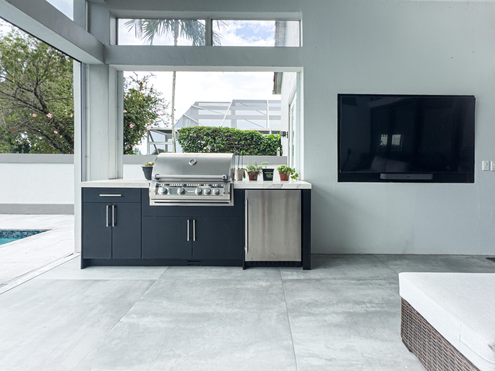 Stunning Fully Renovated 3BR + Office/4BA Pool Home in Eastpointe. Completely remodeled in 2022, this custom Eastpointe home offers nearly 2,500 sq. ft. of luxury living with 14' ceilings, impact glass, and high-end finishes throughout. Spacious 3BR + office layout with 4 full baths.Gourmet kitchen features a 54'' Miele column fridge/freezer, induction cooktop with downdraft, and a dramatic 4'x9' quartzite waterfall island with seating for four. Great room includes a marble feature wall, built-in 85'' TV, electric fireplace, and full bar with sink and beverage center.Primary suite includes dual walk-in closets and a spa-style bathroom w/6' soaking tub and oversized shower. Guest BR's are ensuite or adjacent to full baths.Enjoy resort-style outdoor living with a newly resurfaced pool