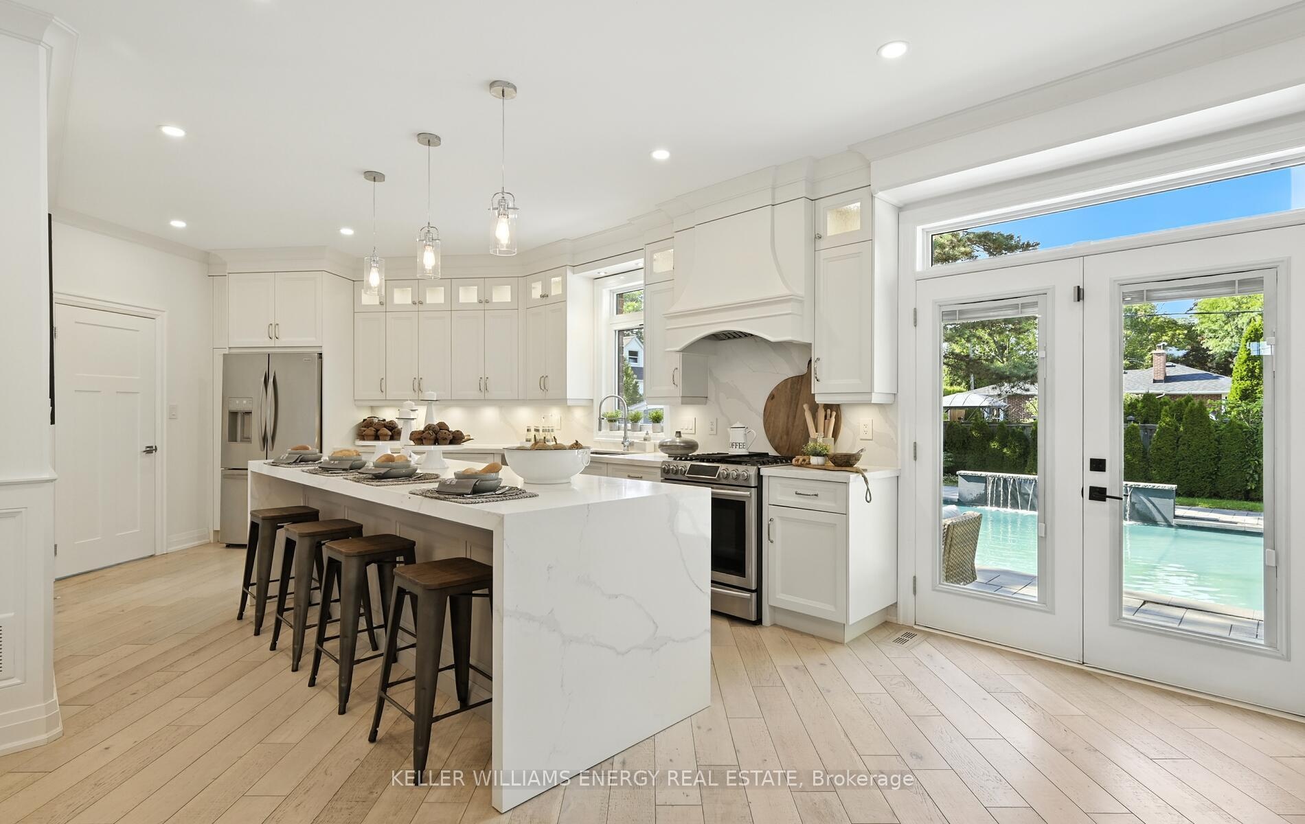 Welcome to 96 Kingsdale Drive a 7-year-new, custom-built residence offering 2,838 sq. ft. above grade and approximately 4,000 sq. ft. of finished living space on a premium 130 foot deep lot. Designed for luxury living, this home features 4 spacious bedrooms and 5 bathrooms. The main floor showcases custom millwork, contemporary oak hardwood flooring, and a gourmet kitchen with an 11-ft Calcutta waterfall quartz island and premium appliances. The open-concept great room with a gas fireplace overlooks your private backyard retreat. Step outside to enjoy your private oasis featuring 20x40 saltwater pool with waterfall & light show, a pool house with 2-piece bath, and extensive professional landscaping an entertainers dream. Designed for both relaxation and entertaining. Upstairs, you'll find four generously sized bedrooms, including a primary suite with a spa-inspired 5-piece ensuite, a large walk-in closet, and a sitting area a true retreat within the home. The finished lower level extends the living space with a large rec room, home gym/office, and a spa-inspired 3-piece bathroom with steam shower. This is a rare opportunity to own a custom luxury home with a resort-style backyard oasis in one of Oshawa's most desirable neighborhoods.
