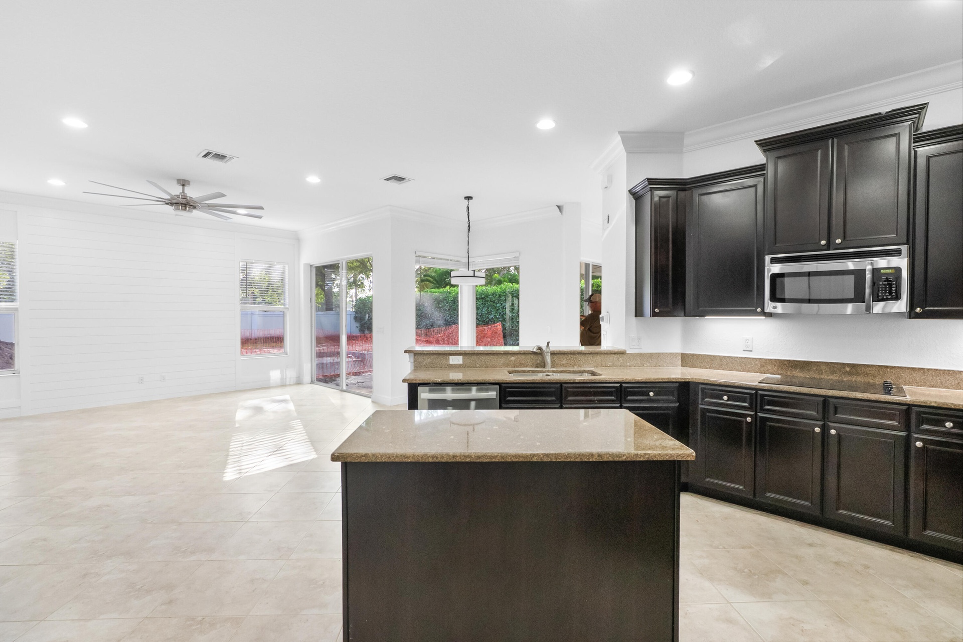 Beautiful CBS ALL IMPACT WINDOWS Single Story 4 Bedroom + Office/Den, 3 Full Bathroom, 3 Car Garage POOL House. Nestled in Jupiter, In The Gated Community Of ''Rialto''. This Gorgeous Home Offers A Wonderful Split Bedroom Floor Plan; Which Includes A Spacious Master Bedroom With His & Hers Walk In Closets and A Large Ensuite Bathroom With Dual Vanities. The 3 Bedrooms Are All Very Spacious and Include Walk in Closets. The Kitchen is Equipped with SS Appliances, 42'' Raised Saspodilla Wood Cabinetry, NEW KITCHEN QUARTZ COUNTERTOPS BEING INSTALLED. This Great Design Offers An Open Kitchen With a Large Great Room & A 4th Bedroom