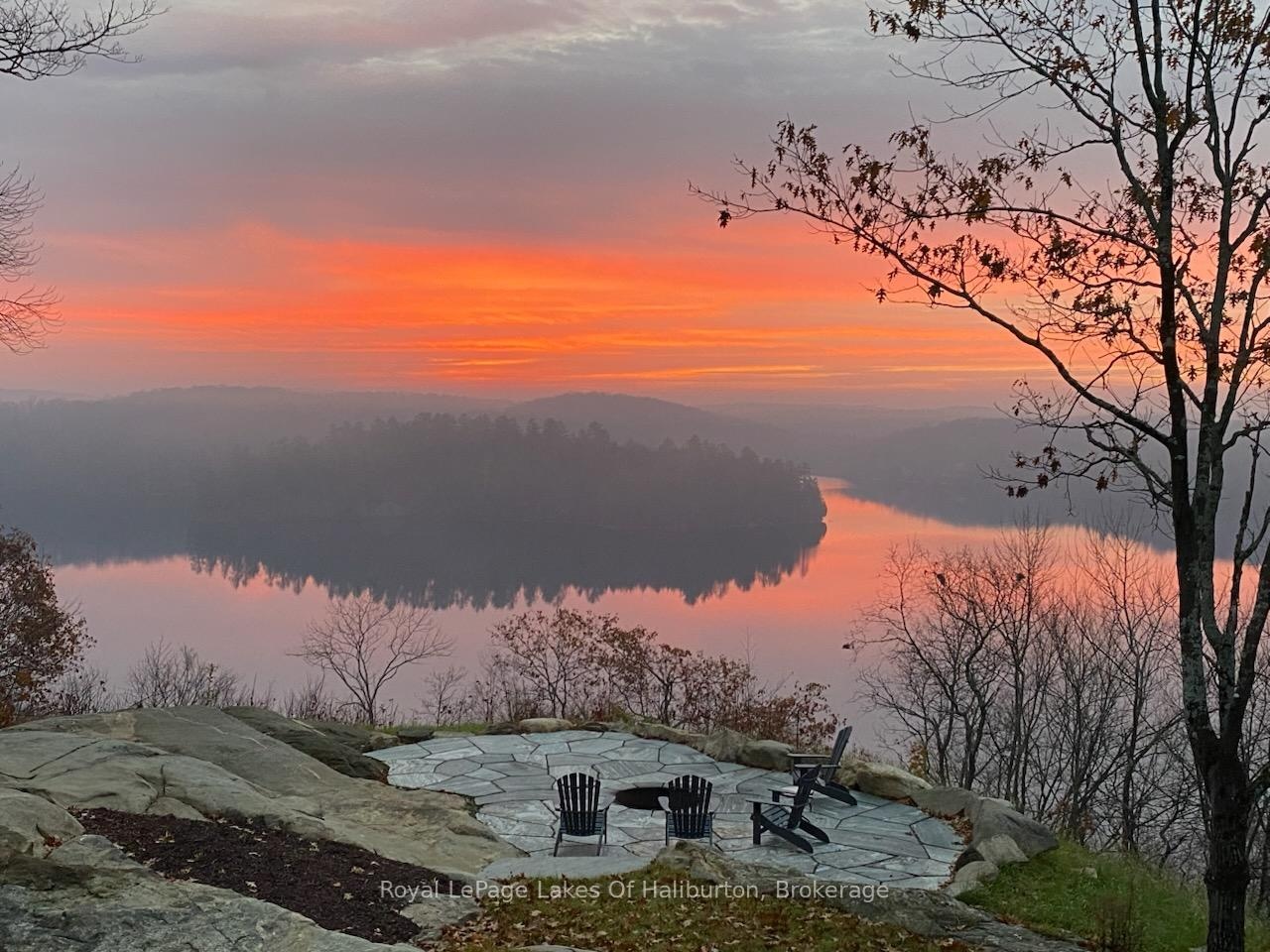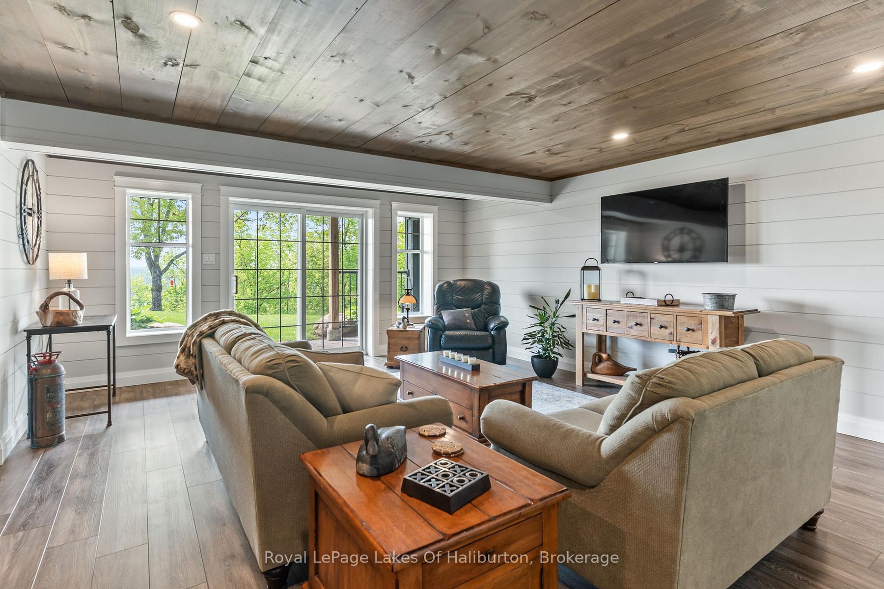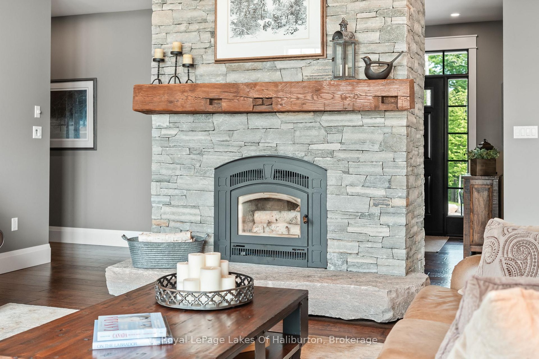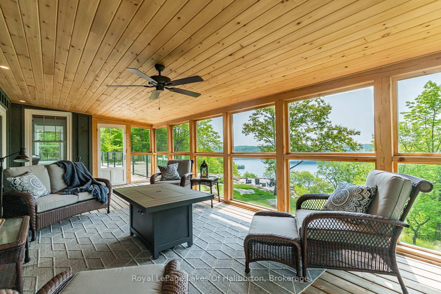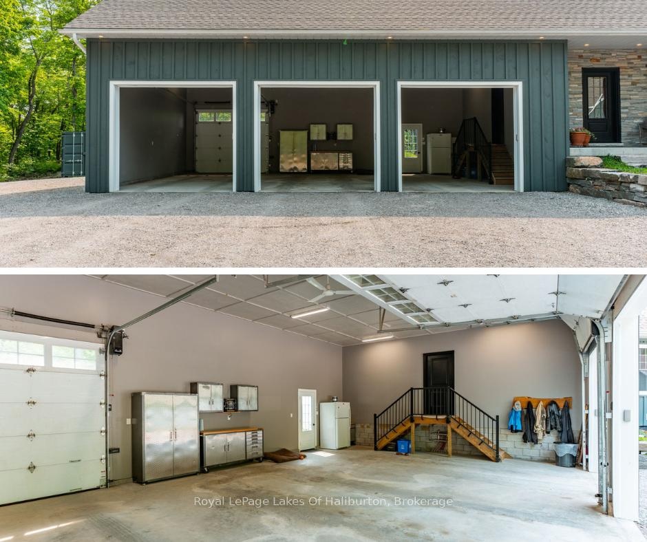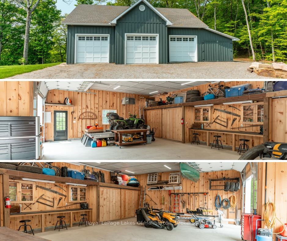 Experience refined lakeside living on the private shores of Loon Lake, where 800 feet of deep waterfront & over 5,000 sq ft of thoughtfully designed living space come together in perfect harmony. This year-round meticulously maintained 3+2 bedroom residence is the epitome of peace and luxury, offering breathtaking panoramic views and unmatched privacy. At the heart of the outdoor experience is a stunning natural granite and stone firepit area with lake vistas. Enter through a timber-frame porch into the grand Great Room, where a floor-to-ceiling dry stack stone fireplace, engineered hardwood flooring and lots of windows invite the outdoors in. Enjoy the 850+ sq ft deck with glass-panel railings, where sunrises & the tranquil lake horizon set the tone for each day. The kitchen is equipped with stainless steel appliances, soft-close cabinetry & a corner sink with captivating views. The main-floor primary suite is a private sanctuary, complete with a ensuite with heated floors, a walk-in closet & direct access to a screened-in Haliburton Room. The lower level extends the homes versatility with two more bedrooms, games room, heated floors, a second kitchen, 3-piece bath, and a cozy living area that opens to the hot tub room, stone flooring & stacking windows blend indoor comfort with natures beauty. Designed for accessibility and functionality, the home features, wide hallways, California shutters, & a spacious laundry room with heated floors & sink, generator & 200 amp. The heated triple garage includes a drive-through bay, electric openers,100-amp panel & 9ft doors. A separate 1,800 sq ft heated garage/workshop with 9-ft doors, 100 amp & a wood lean-to offers ample space for hobbies & storage, landscaped with dry stack stone walls, perennial gardens, & a generator backup system. On this 54 acre parcel you can hunt in your own backyard and close to snowmobile trails. An easy 4 min. walk or short ATV/UTV path to lakeside decking area with deep water off docks end.