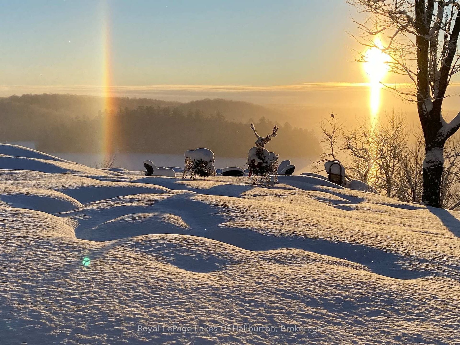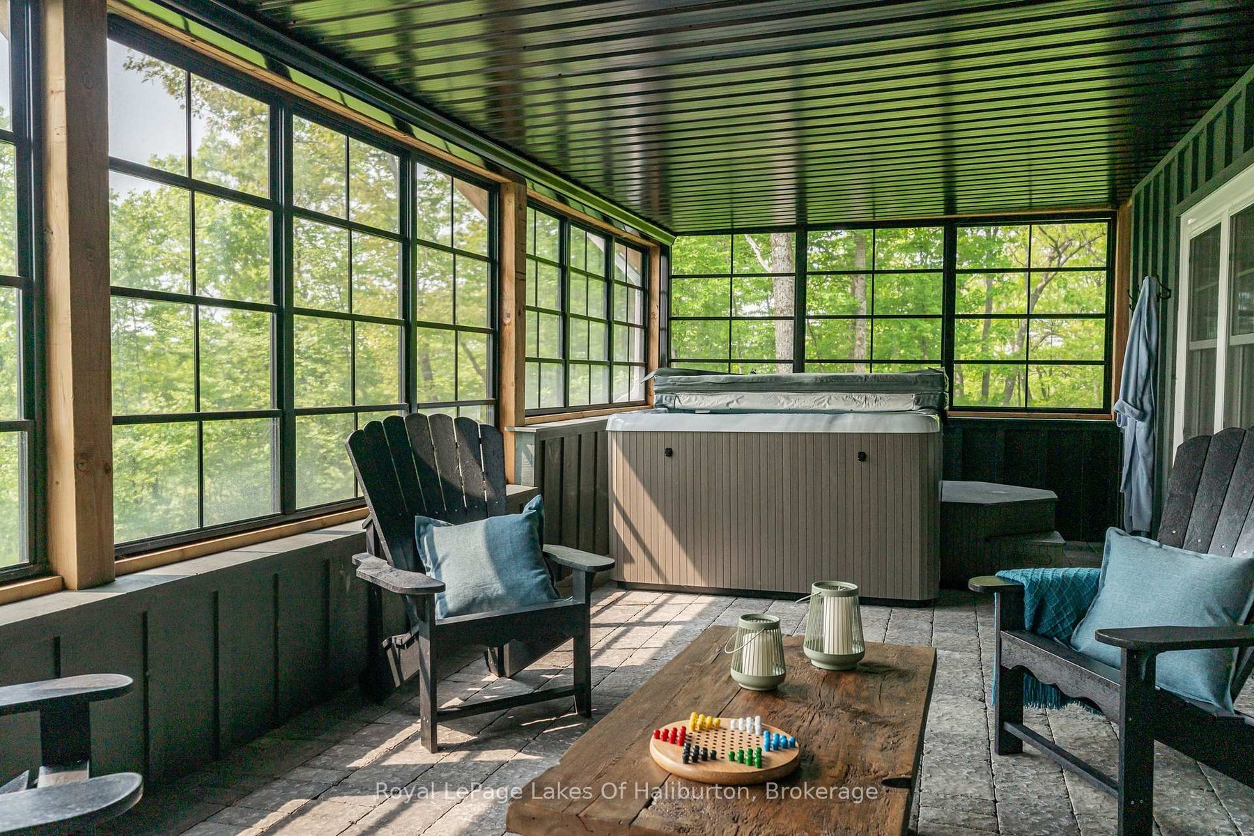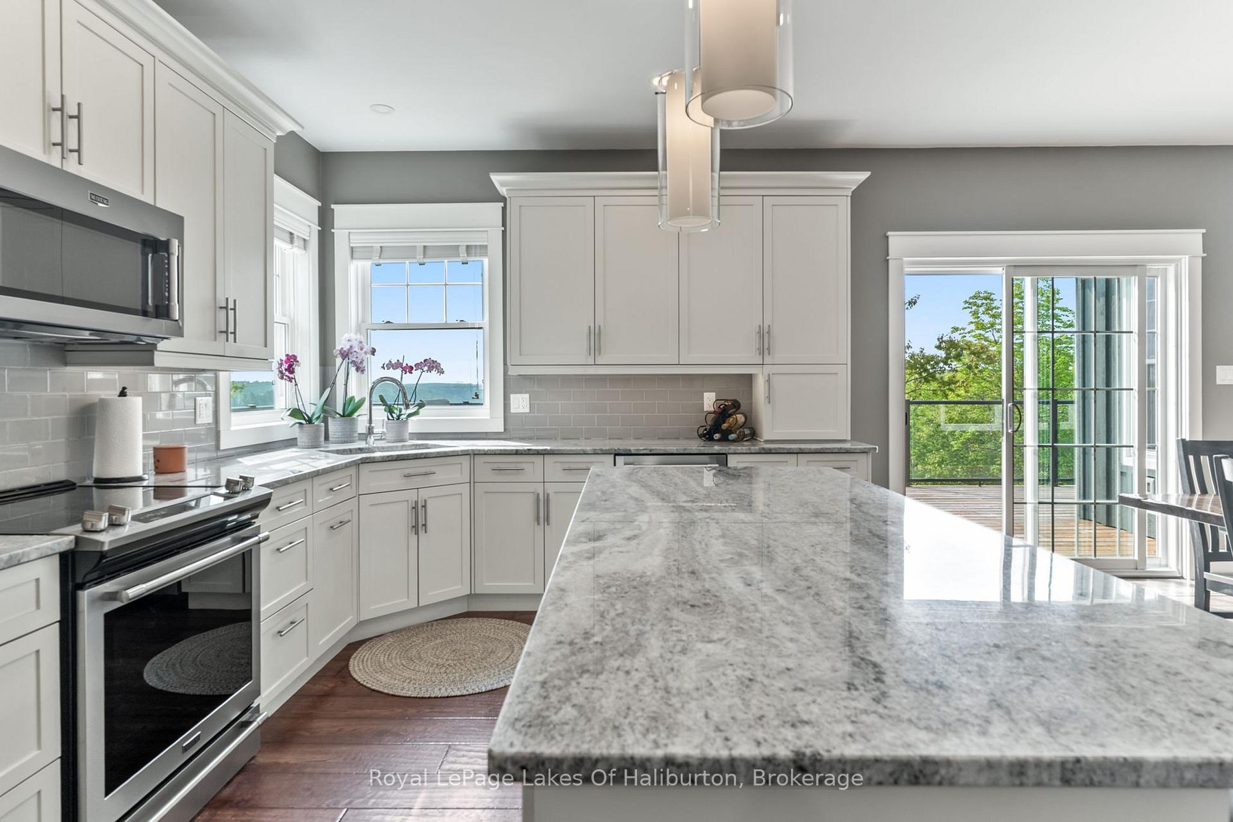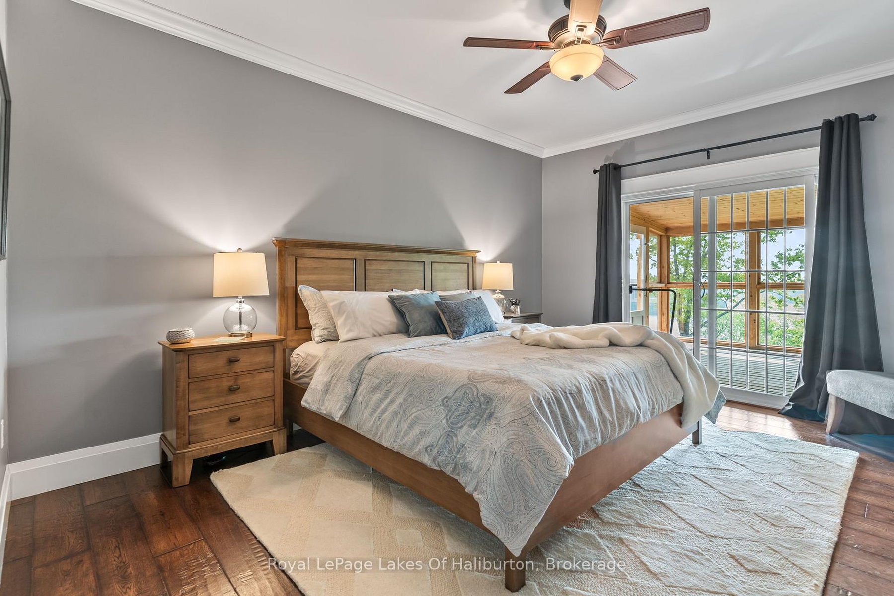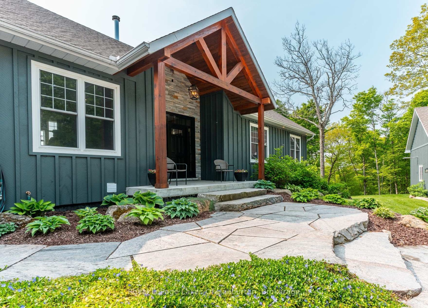 Experience refined lakeside living on the private shores of Loon Lake, where 800 feet of deep waterfront & over 5,000 sq ft of thoughtfully designed living space come together in perfect harmony. This year-round meticulously maintained 3+2 bedroom residence is the epitome of peace and luxury, offering breathtaking panoramic views and unmatched privacy. At the heart of the outdoor experience is a stunning natural granite and stone firepit area with lake vistas. Enter through a timber-frame porch into the grand Great Room, where a floor-to-ceiling dry stack stone fireplace, engineered hardwood flooring and lots of windows invite the outdoors in. Enjoy the 850+ sq ft deck with glass-panel railings, where sunrises & the tranquil lake horizon set the tone for each day. The kitchen is equipped with stainless steel appliances, soft-close cabinetry & a corner sink with captivating views. The main-floor primary suite is a private sanctuary, complete with a ensuite with heated floors, a walk-in closet & direct access to a screened-in Haliburton Room. The lower level extends the homes versatility with two more bedrooms, games room, heated floors, a second kitchen, 3-piece bath, and a cozy living area that opens to the hot tub room, stone flooring & stacking windows blend indoor comfort with natures beauty. Designed for accessibility and functionality, the home features, wide hallways, California shutters, & a spacious laundry room with heated floors & sink, generator & 200 amp. The heated triple garage includes a drive-through bay, electric openers,100-amp panel & 9ft doors. A separate 1,800 sq ft heated garage/workshop with 9-ft doors, 100 amp & a wood lean-to offers ample space for hobbies & storage, landscaped with dry stack stone walls, perennial gardens, & a generator backup system. On this 54 acre parcel you can hunt in your own backyard and close to snowmobile trails. An easy 4 min. walk or short ATV/UTV path to lakeside decking area with deep water off docks end.