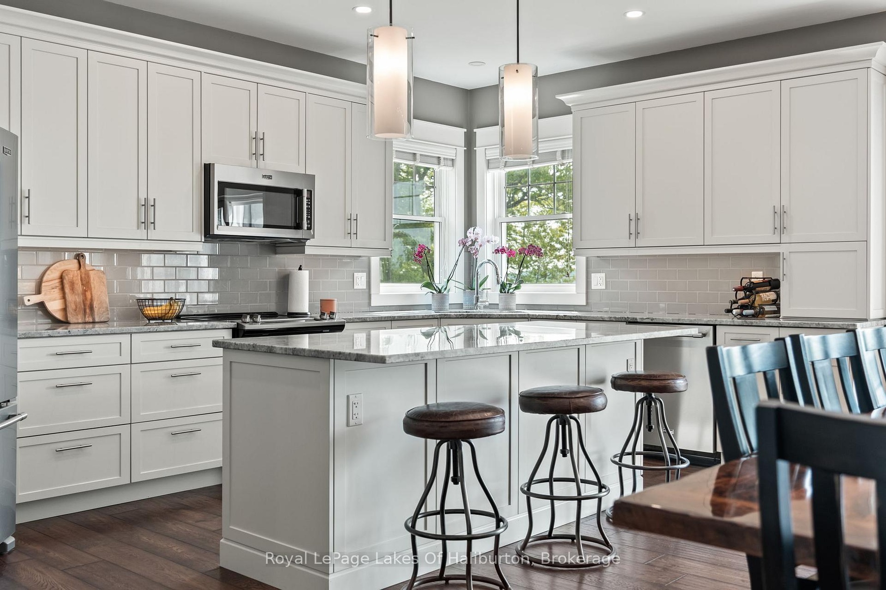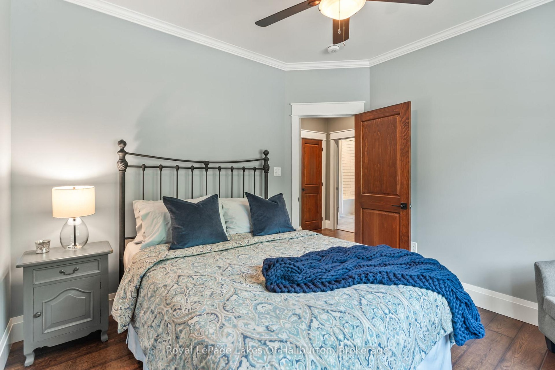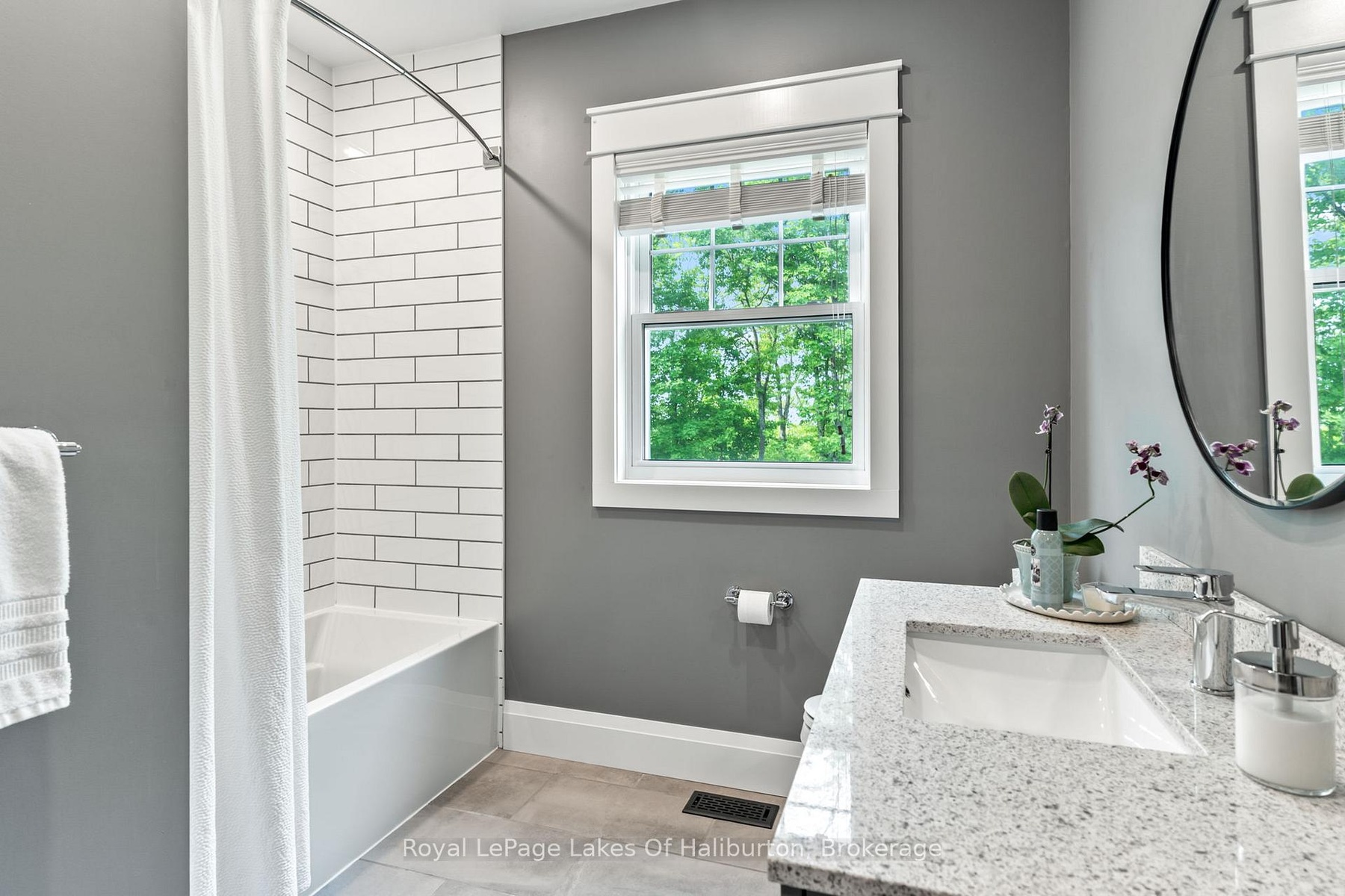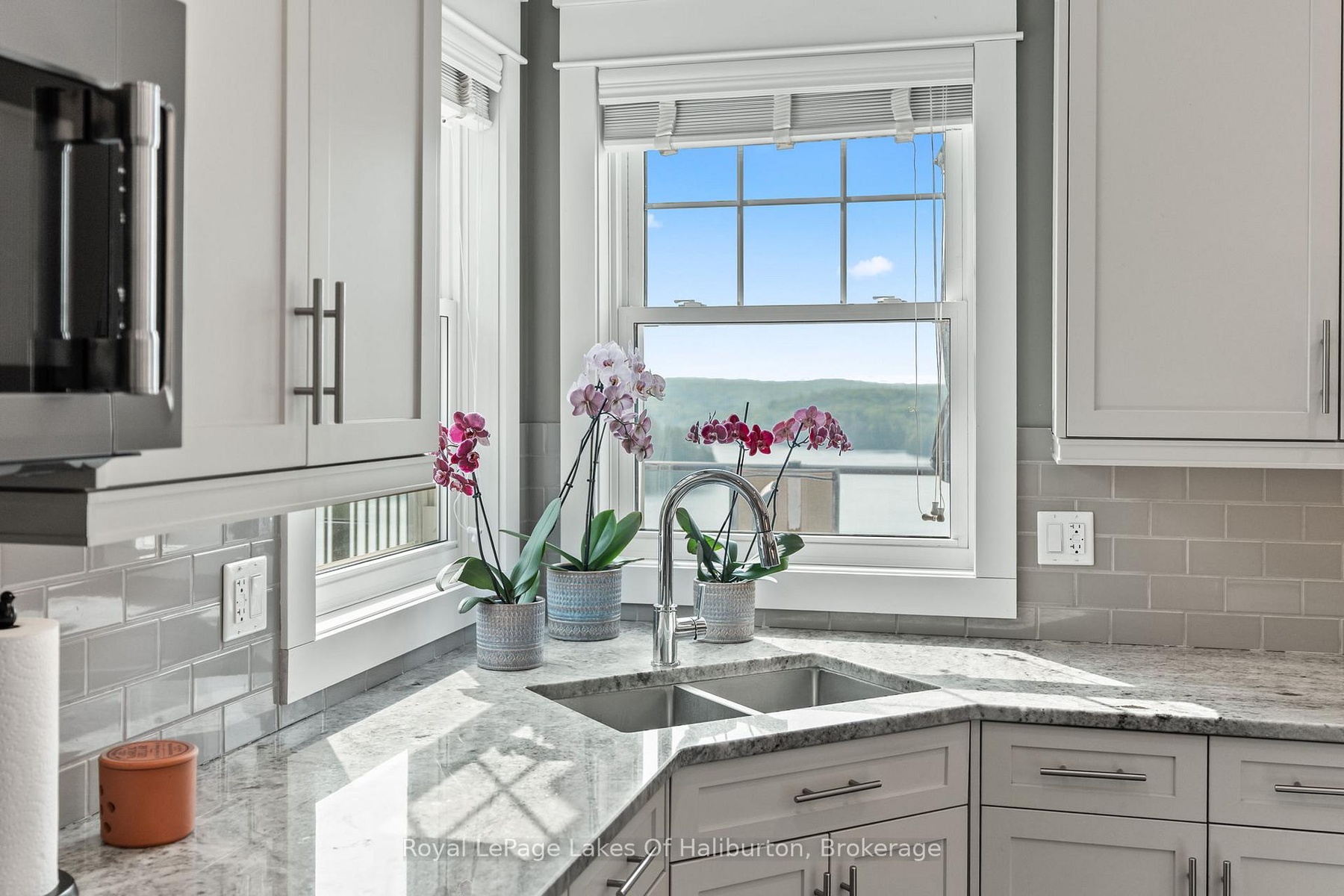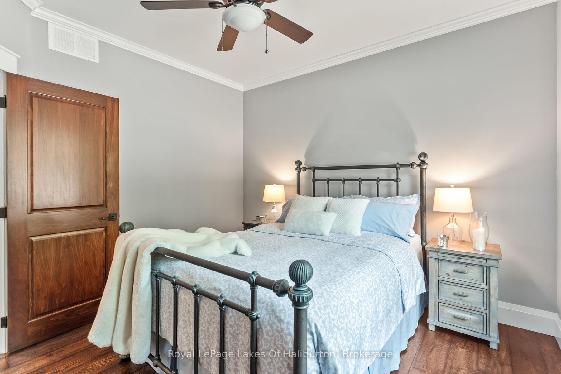 Experience refined lakeside living on the private shores of Loon Lake, where 800 feet of deep waterfront & over 5,000 sq ft of thoughtfully designed living space come together in perfect harmony. This year-round meticulously maintained 3+2 bedroom residence is the epitome of peace and luxury, offering breathtaking panoramic views and unmatched privacy. At the heart of the outdoor experience is a stunning natural granite and stone firepit area with lake vistas. Enter through a timber-frame porch into the grand Great Room, where a floor-to-ceiling dry stack stone fireplace, engineered hardwood flooring and lots of windows invite the outdoors in. Enjoy the 850+ sq ft deck with glass-panel railings, where sunrises & the tranquil lake horizon set the tone for each day. The kitchen is equipped with stainless steel appliances, soft-close cabinetry & a corner sink with captivating views. The main-floor primary suite is a private sanctuary, complete with a ensuite with heated floors, a walk-in closet & direct access to a screened-in Haliburton Room. The lower level extends the homes versatility with two more bedrooms, games room, heated floors, a second kitchen, 3-piece bath, and a cozy living area that opens to the hot tub room, stone flooring & stacking windows blend indoor comfort with natures beauty. Designed for accessibility and functionality, the home features, wide hallways, California shutters, & a spacious laundry room with heated floors & sink, generator & 200 amp. The heated triple garage includes a drive-through bay, electric openers,100-amp panel & 9ft doors. A separate 1,800 sq ft heated garage/workshop with 9-ft doors, 100 amp & a wood lean-to offers ample space for hobbies & storage, landscaped with dry stack stone walls, perennial gardens, & a generator backup system. On this 54 acre parcel you can hunt in your own backyard and close to snowmobile trails. An easy 4 min. walk or short ATV/UTV path to lakeside decking area with deep water off docks end.