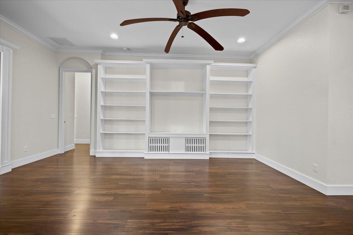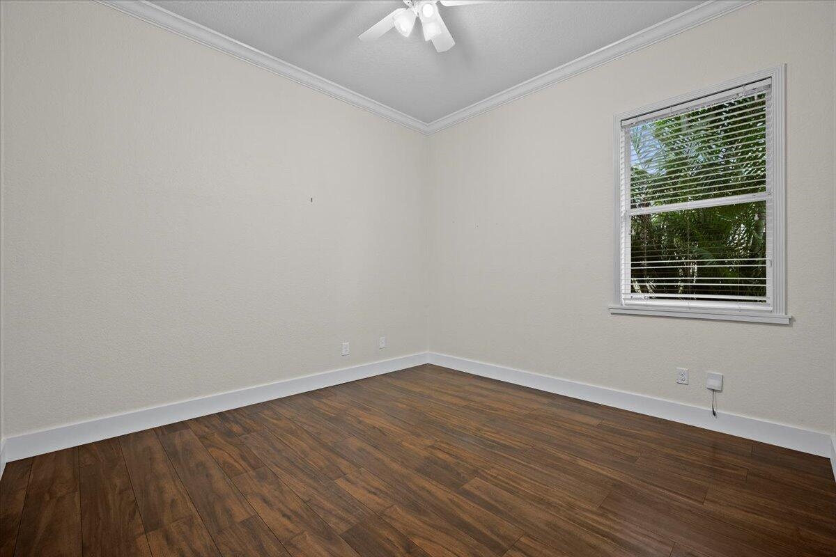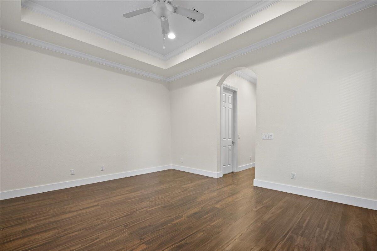 Designed for effortless living, this gated Paloma residence boasts an efficient floor plan with no stairs, ensuring comfort and accessibility throughout. 3 bedrooms, 2.5 bathrooms and a flex space that can be a den/office or a formal dining room.The recently updated kitchen features quartz countertops and an expansive island with a waterfall edge, blending timeless luxury with a modern twist. Premium appliances make cooking a dream. Ample storage with a large pantry and pull out shelves in the cabinets do the trick.Impact windows provide peace of mind and interior plantation shutters provide style. Laminate floors bring warmth, and easy upkeep. A covered patio off the great room provides a setting for relaxation.