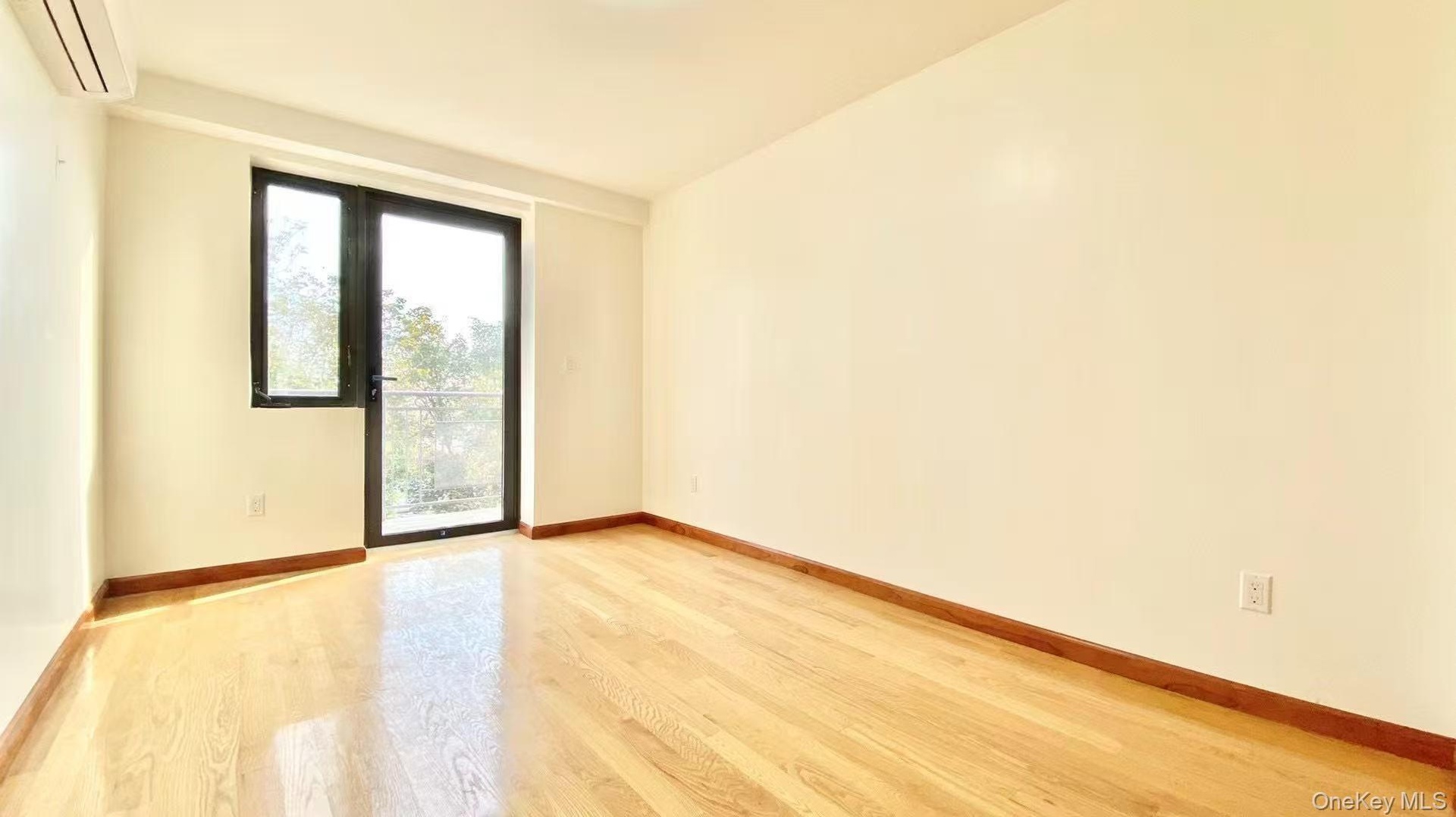 - Unfurnished room featuring light wood-type flooring and a wall unit AC