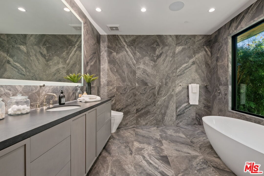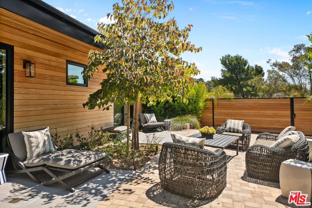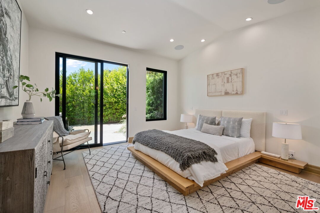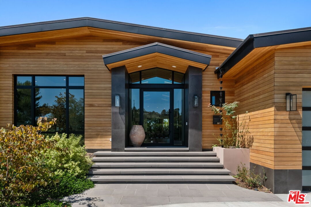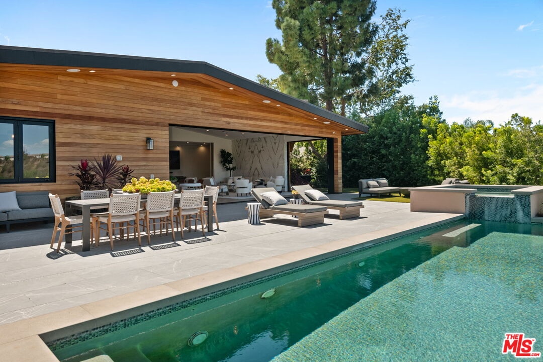 A brand-new single-story masterpiece, perfectly situated on a quiet cul-de-sac just north of the prestigious Trousdale Estates. Surrounded by beautiful trees and serene canyon views, this contemporary residence offers an exceptional blend of luxury, comfort, and sophistication. Designed with a seamless open floor plan and effortless indoor-outdoor flow, the living room boasts floor-to-ceiling automated sliding glass doors that open to a private backyard oasis with an infinity pool, spa, and waterfall. The expansive great room unites the living, dining, and chef's kitchen, featuring Miele appliances, dual sinks and ovens, two dishwashers, built-in espresso/coffee maker, microwave, and a refrigerator and freezer. A generous island and elegant European wood floors enhance the home's refined design. Offering 6 ensuite bedrooms and 9 bathrooms, the home provides unparalleled comfort for both family and guests. The media room, complete with a wide electric fireplace can be closed for privacy or opened to the main living area. The grand primary suite is a sanctuary, featuring a cozy seating area, private patio, and a stunning pearl onyx double-sided fireplace. It is complemented by two luxurious bathrooms with a soaking tub and steam shower complete this extraordinary retreat. Additional highlights include a temperature-controlled glass wine room, Sonos Arc sound system, and the finest finishes throughout. A true entertainer's dream, this residence exemplifies modern luxury at its finest.