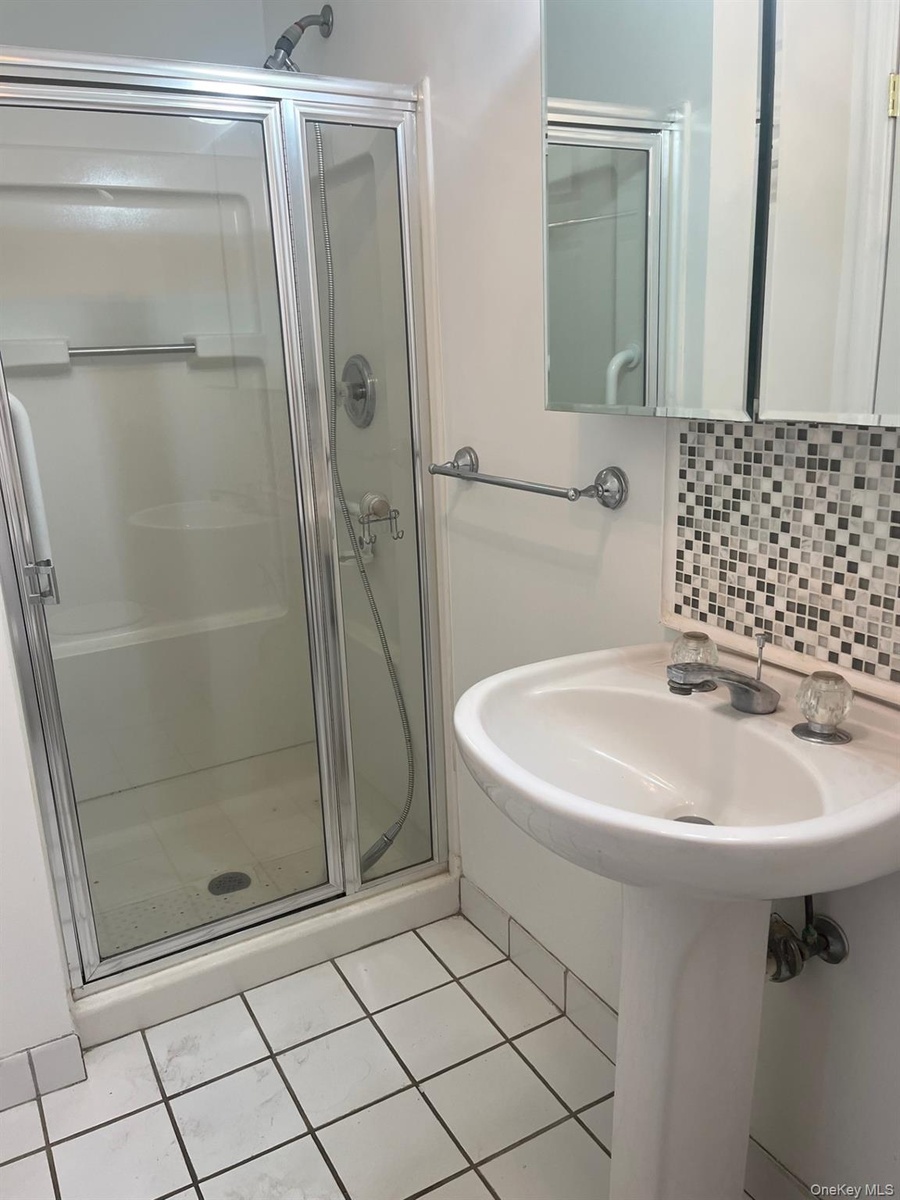 - Full bath with light tile patterned floors, a shower stall, in the 2nd bedroom/office
