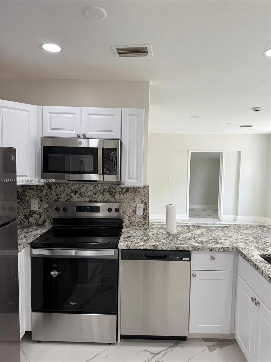 Stunning, turnkey 5 bedroom, 2 bathroom home with huge private backyard. Beautiful, bright tiling throughout, brand new everything - soft close kitchen cabinets, washer/dryer, stainless steel appliances, impact windows and doors, gorgeous bathrooms with frameless shower doors. Bar counter in the kitchen for casual dining, open concept living and dining area, LED lighting with soft touch switches, split layout for maximum privacy. The primary bedroom and bathroom can be used as your private sanctuary or leased as a fully separated efficiency, with dividing doors, a separate kitchenette and its own private walkway and side entrance that still has full access to the beautiful, shaded backyard. Super location, just minutes from the I-95 and on a quiet cul-de-sac ensuring limited through traffic. Brand new fence all around the property, including gated access to driveway.
