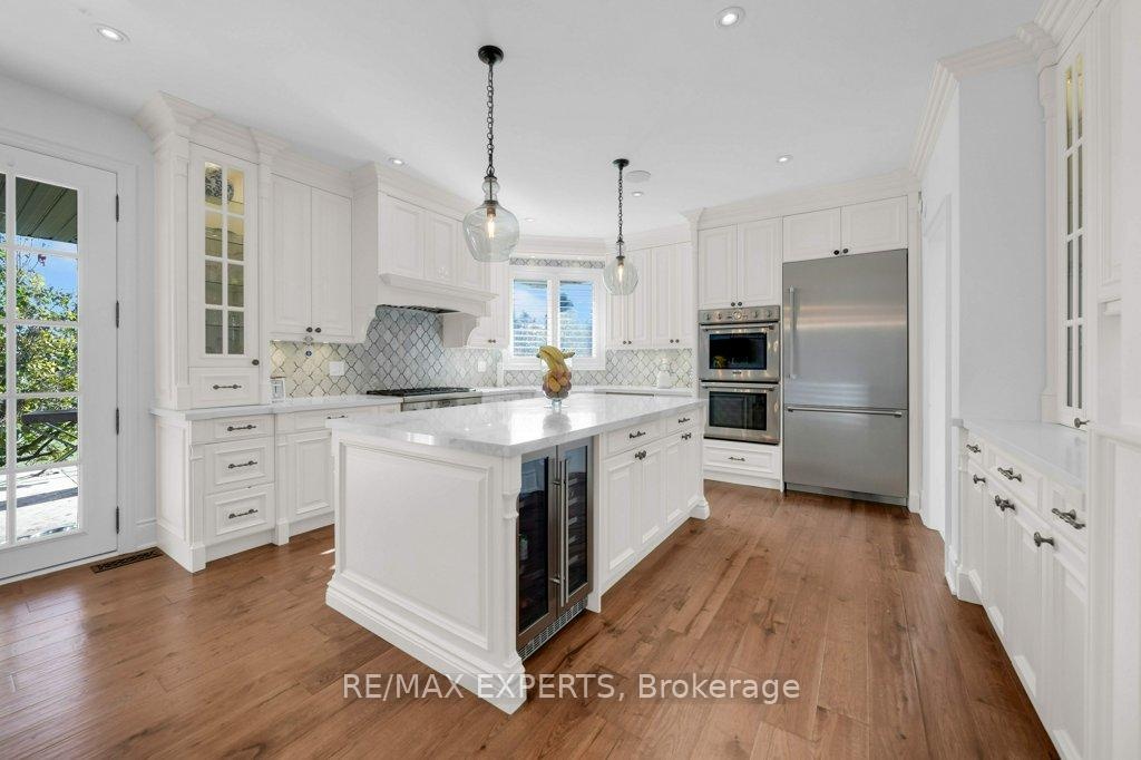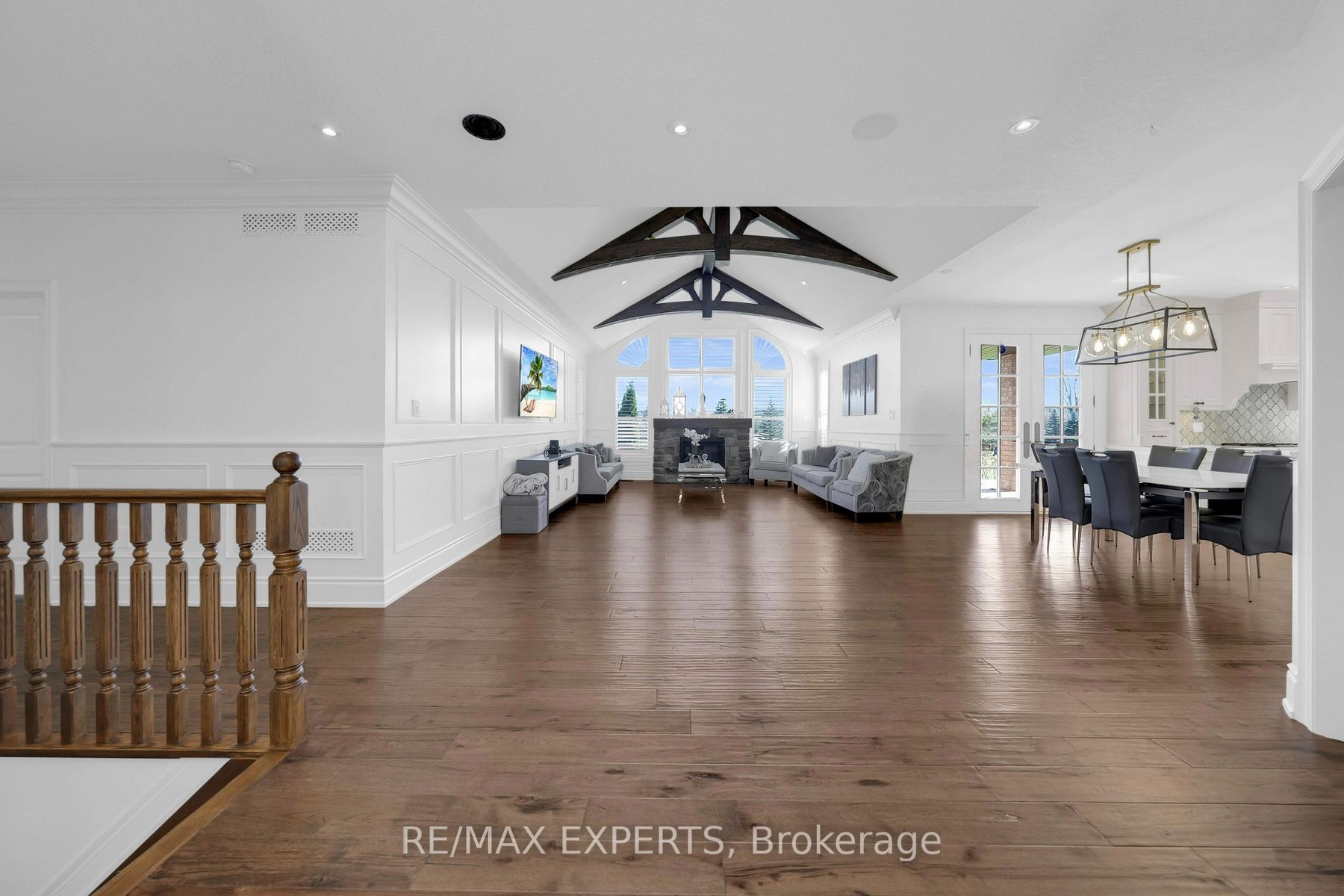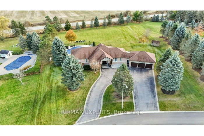 This luxury estate lot features 4 bedroom, 4 bathroom bungalow offers approx 5,200 sq. ft. of total living space sitting on a 1.47-acre in Bradfords most coveted community. Situated on a quiet cul-de-sac, this exquisite residence blends privacy and elegance. The home features a massive open-concept great room perfect for entertaining and everyday living, hardwood floors throughout, fireplace, wainscoting, cathedral ceiling, built-in speakers for an immersive atmosphere, custom kitchen boasts a large island, high-end appliances, crown moulding, pot lights, 9-ft ceilings, and an office that provides the perfect space for working from home. The fully finished walk-out basement is an entertainers dream, features B/In bar, bonus bedroom, cantina, spa-inspired bathroom with sauna, and a spacious recreation area. Step outside to your private backyard oasis, sparkling inground pool, lush landscaping, plenty of space for BBQs, summer parties, and unforgettable gatherings. The oversized 3-car garage provides extra storage for the family, horseshoe driveway offers ample parking for guests. This is more than a home its a statement of style, thoughtful design, and comfort, offering the perfect setting for hosting, relaxing, and creating lasting memories. Experience the ultimate in luxury living. Don't miss your chance to unlock your dream home!