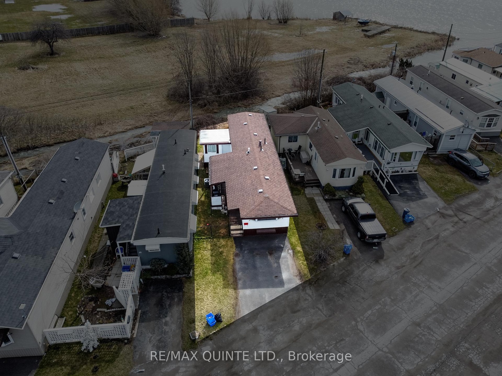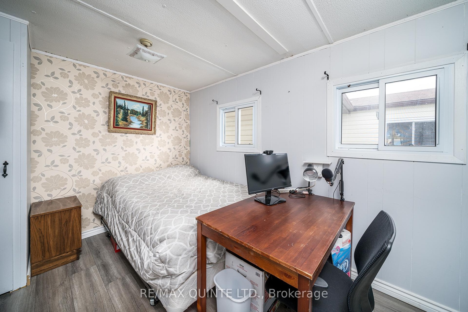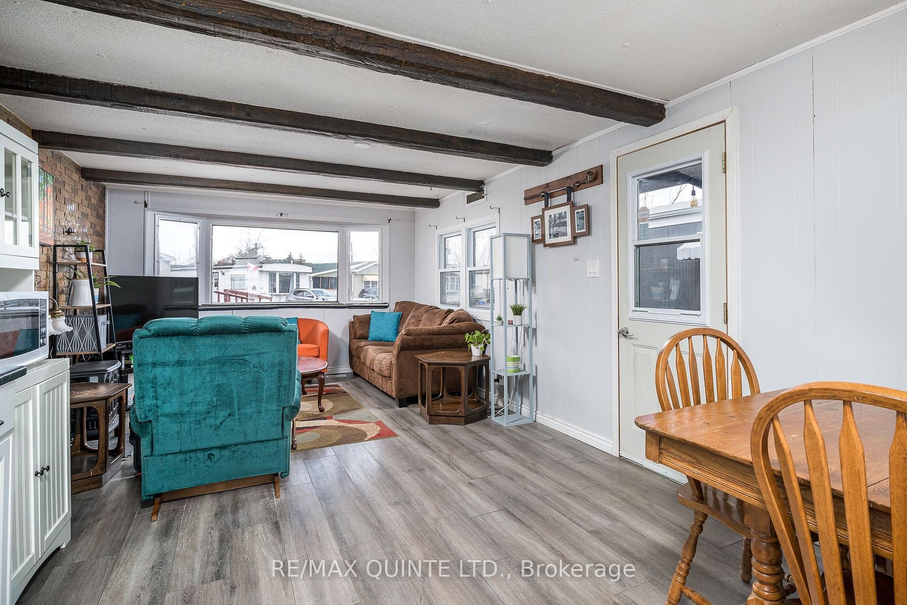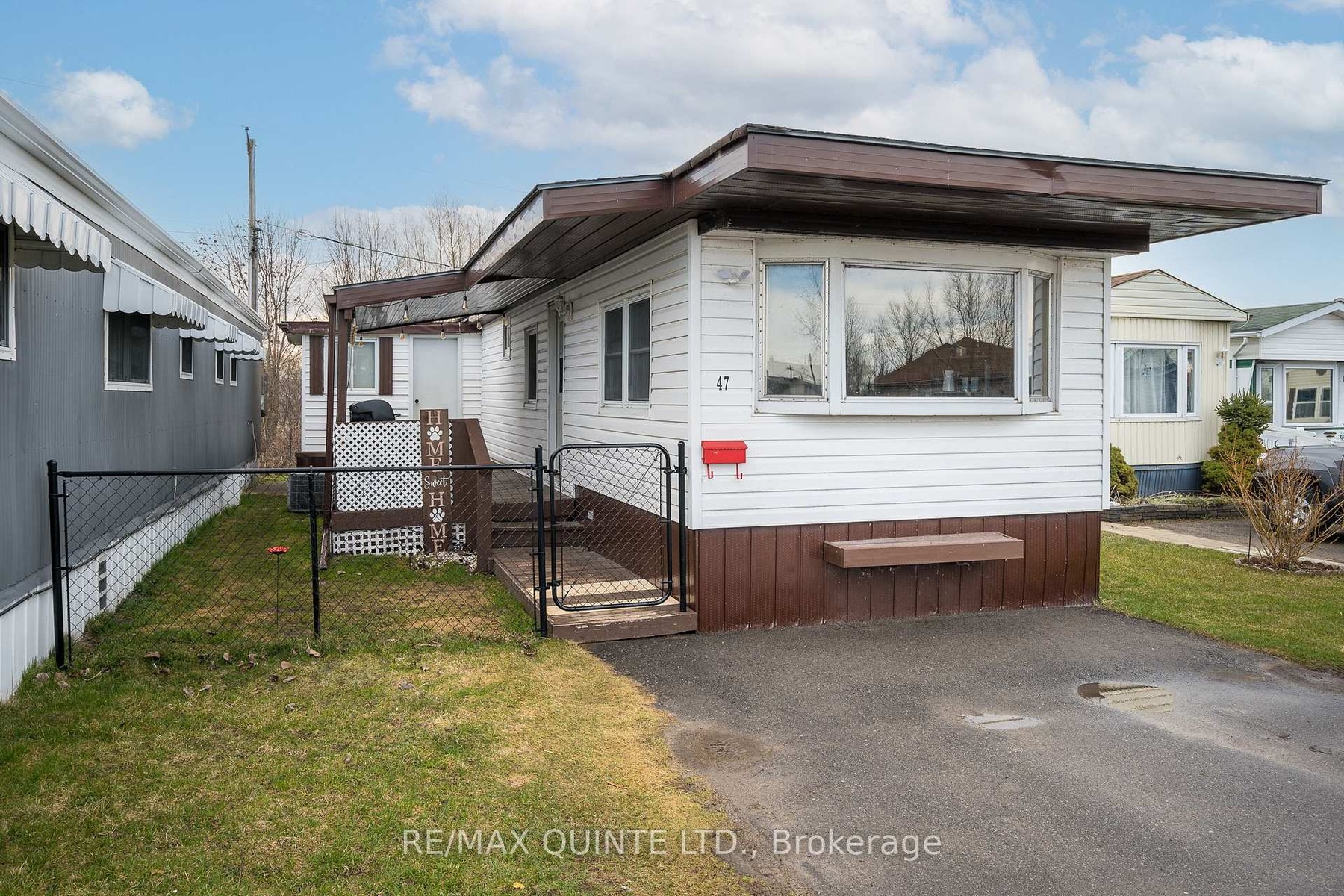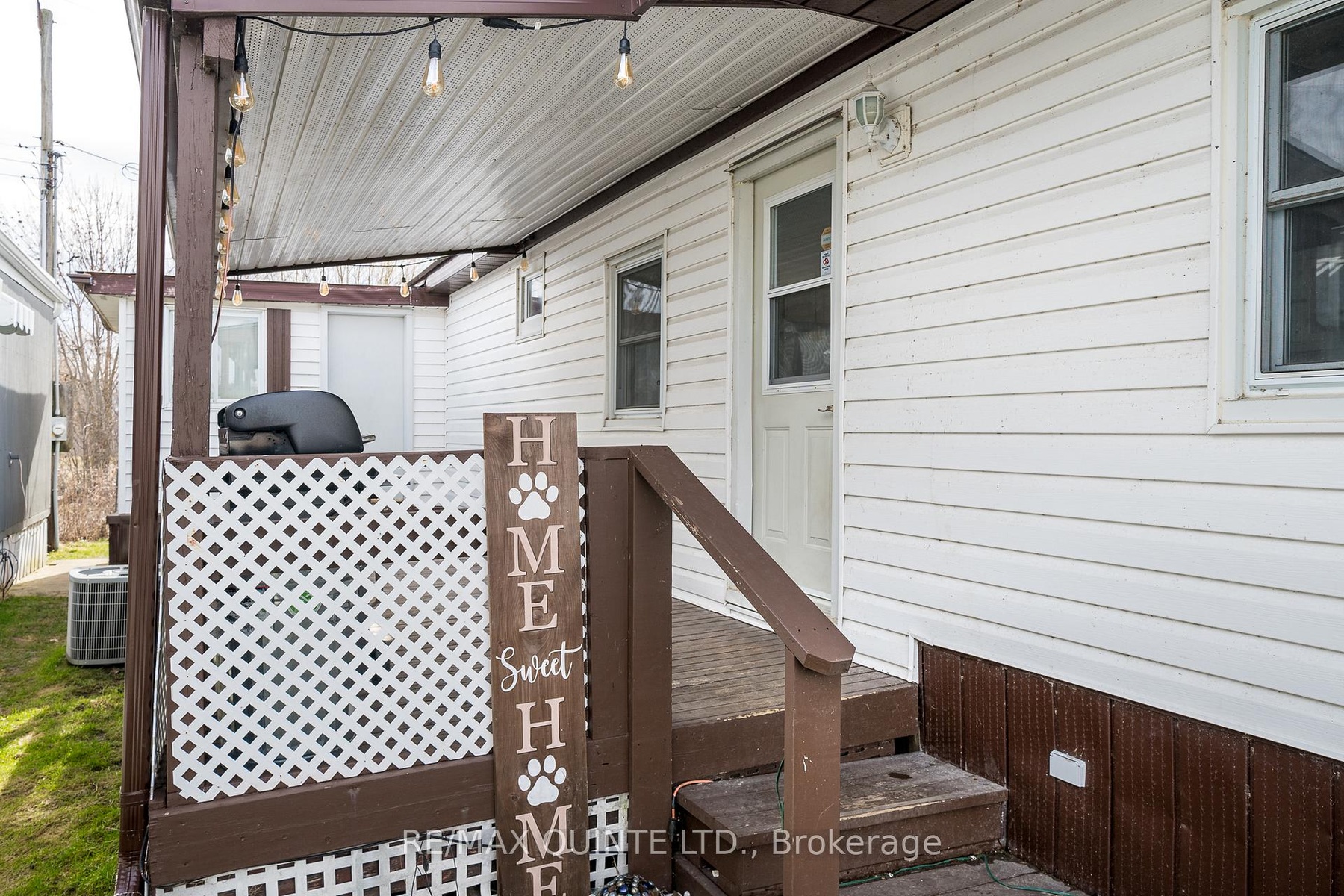 Discover the potential of this charming 2-bedroom, 1-bathroom home, ideally situated next to a tranquil creek and just a short distance from the beautiful Bay of Quinte. This property is perfect for young buyers and those looking to downsize, offering a unique opportunity to create your personal oasis. While the home has been updated with laminate flooring and features a renovated bathroom and updated kitchen offering white cabinetry, double sink, soft-close drawers & modern countertops, there's still room to personalize this home to suit your style. With exposed faux brick and attractive ceiling beams in the living room, this cozy home gains a lot of charm. Generous windows and bright white walls fill the interior with natural light, creating a warm and inviting atmosphere. A new forced-air furnace was installed in 2020, providing reliable heating along with updated plumbing and light fixtures, essential upgrades for comfortable living. Enjoy picturesque views of the creek and the Bay of Quinte from the primary bedroom, which features built-in drawers and ample natural light. The spacious covered deck is perfect for entertaining or enjoying quiet evenings outside.Additionally, a convenient storage room is accessible from both the home and the deck, along with a sizable shed in the backyard to meet all your storage needs. Experience the ease of living with grocery stores, restaurants, and essential amenities within walking distance. This affordable home is a canvas ready for your personal touch. Whether you're looking to start fresh or downsize, this property offers an incredible opportunity to invest in a lifestyle filled with minimal yard work, convenience and a great community. Don't miss your chance to make this wonderful space your own! The Current Land lease fee is $299.23 plus Taxes of $49.73 per month, and water is $106.85 per month for a total of $455.81/month.