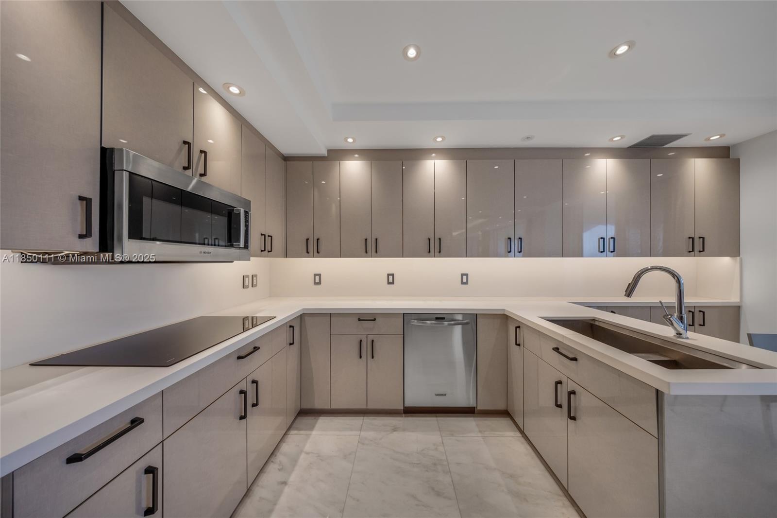 - Renovated with high ceilings, marble floors, and lighting, and large wine cooler