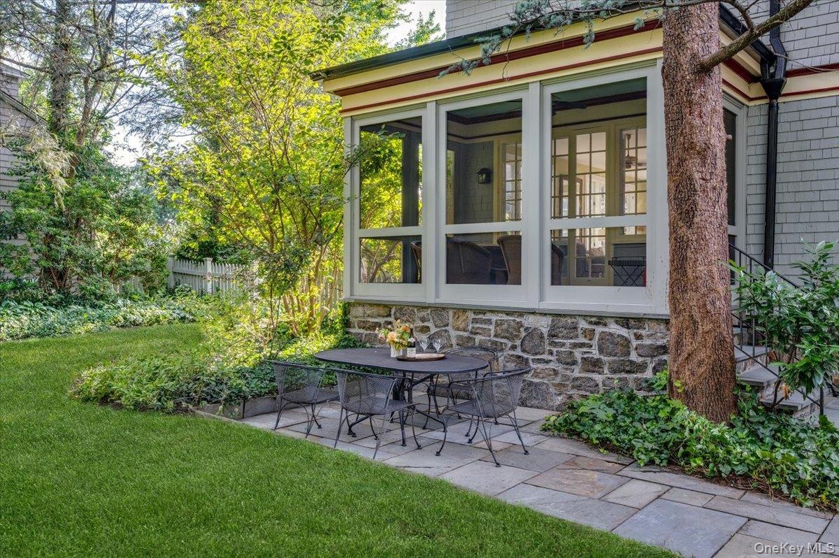 - Screened porch for enjoying morning coffee and year-round use with views and access to private fenced back yard and blue stone patio.