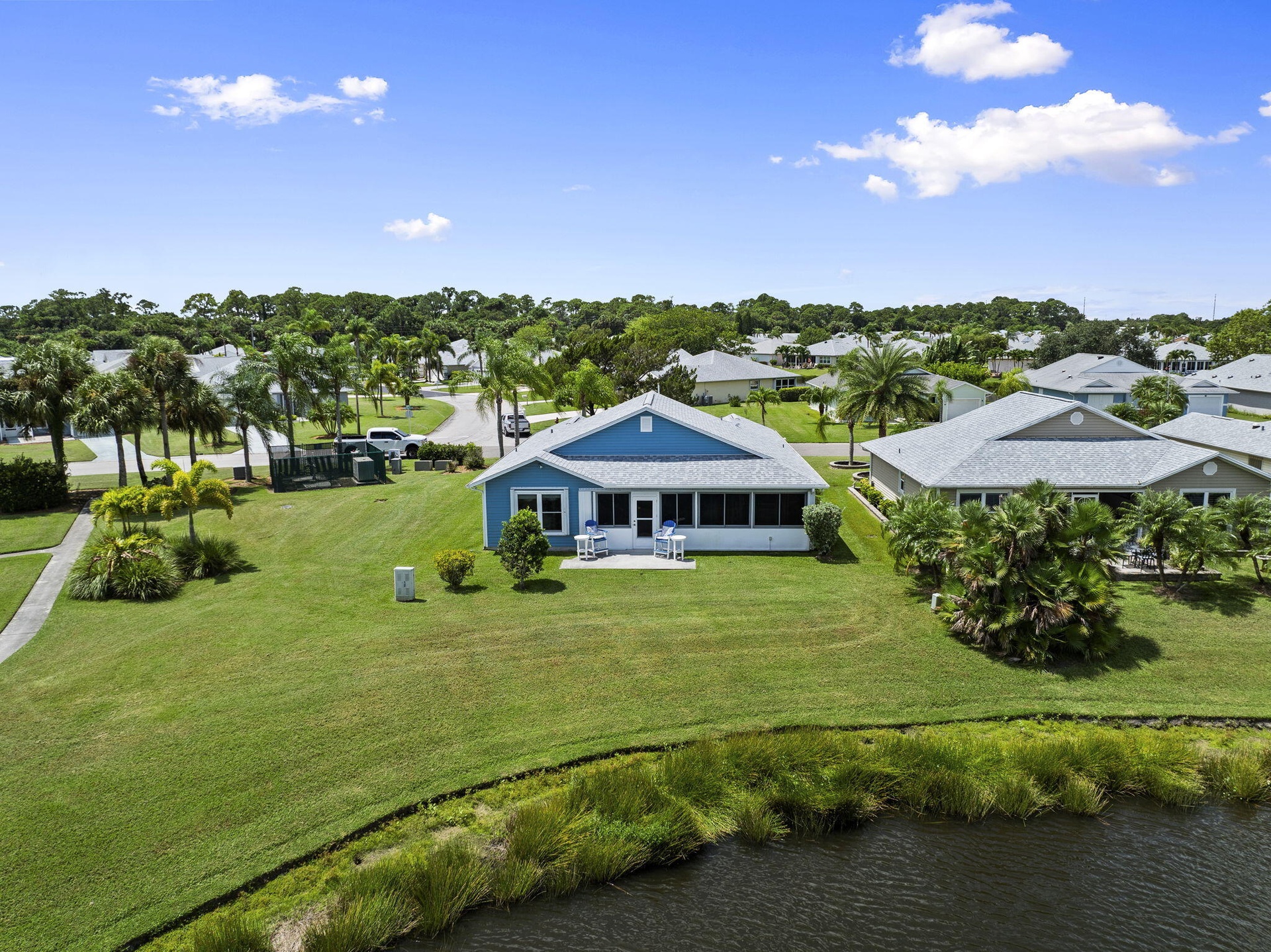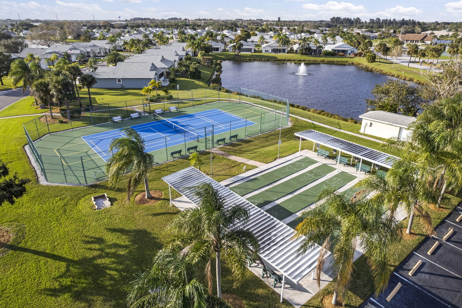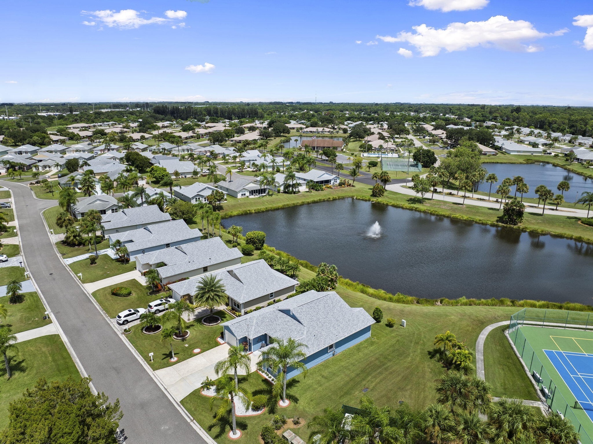 Location, location, location!! This is the one you have been waiting for. The closest lakefront home, within walking distance to the clubhouse & pool & no neighbors to the right! No honey do list here. Newly painted inside/out. New electrical panel, 2021 roof & gutters, full accordion shutters. AC 5 yr, HWH 2 yr. Custom landscape concrete edging. Tile throughout. Vaulted ceilings. Updated bathrooms. Full kitchen remodel w/ quartz, soft close features, stainless steel appliances & double oven feature, under cabinet lighting. Updated lighting/fans throughout. Palm Grove is a 55+ community with a lakeside, year round heated pool, tennis, bocce, pickleball, billiards & so much more along with an active community schedule.