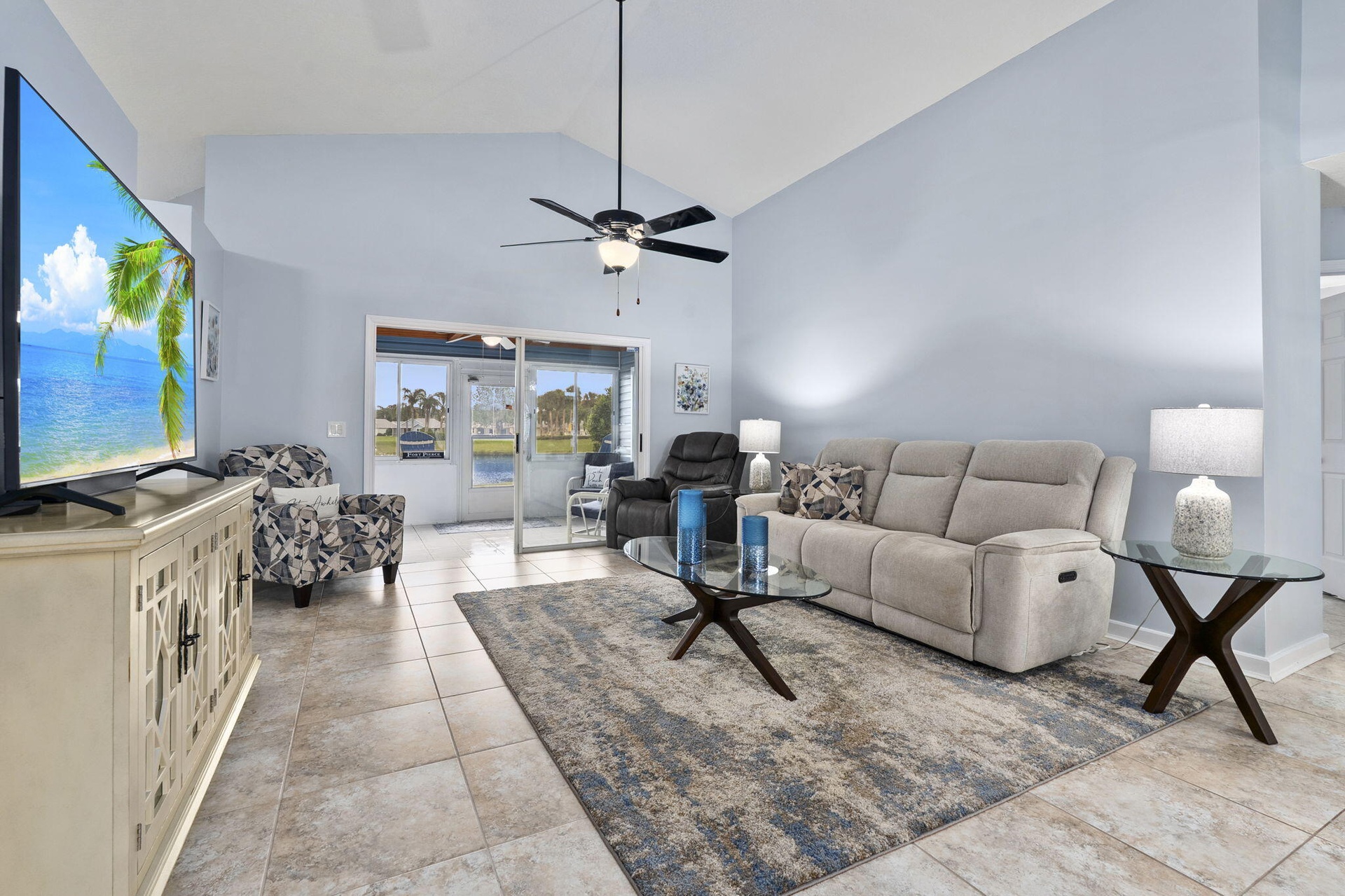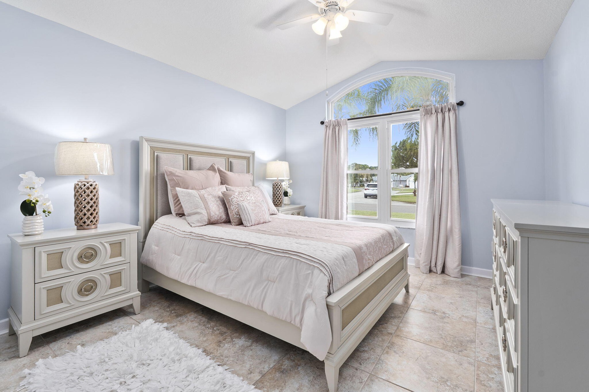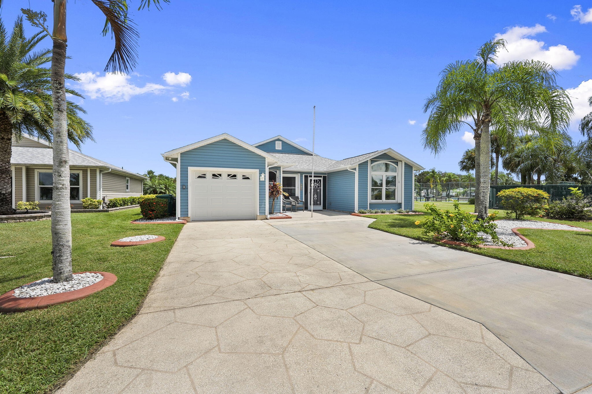 Location, location, location!! This is the one you have been waiting for. The closest lakefront home, within walking distance to the clubhouse & pool & no neighbors to the right! No honey do list here. Newly painted inside/out. New electrical panel, 2021 roof & gutters, full accordion shutters. AC 5 yr, HWH 2 yr. Custom landscape concrete edging. Tile throughout. Vaulted ceilings. Updated bathrooms. Full kitchen remodel w/ quartz, soft close features, stainless steel appliances & double oven feature, under cabinet lighting. Updated lighting/fans throughout. Palm Grove is a 55+ community with a lakeside, year round heated pool, tennis, bocce, pickleball, billiards & so much more along with an active community schedule.