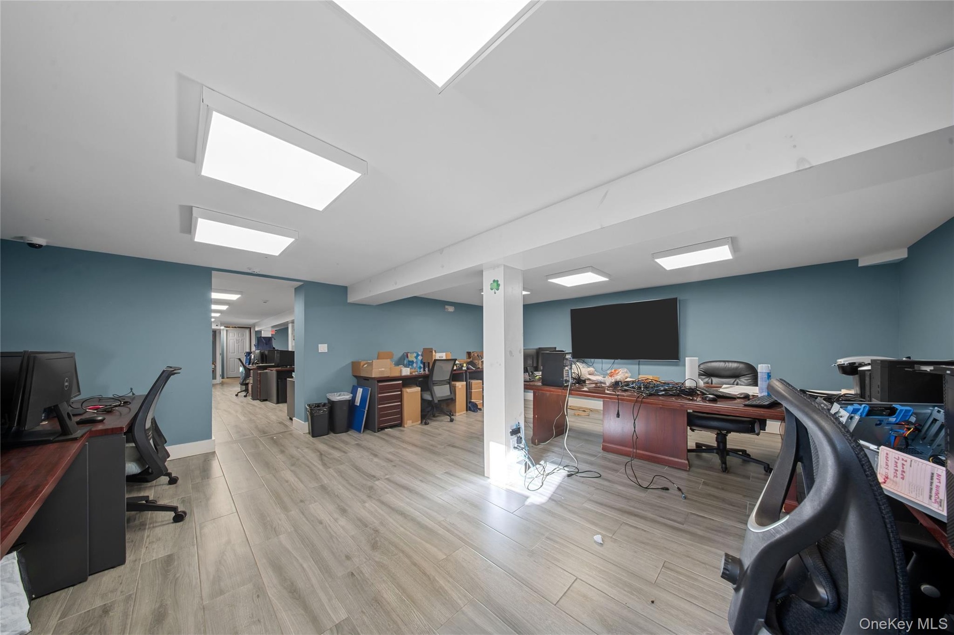 - Office area with light wood-style flooring