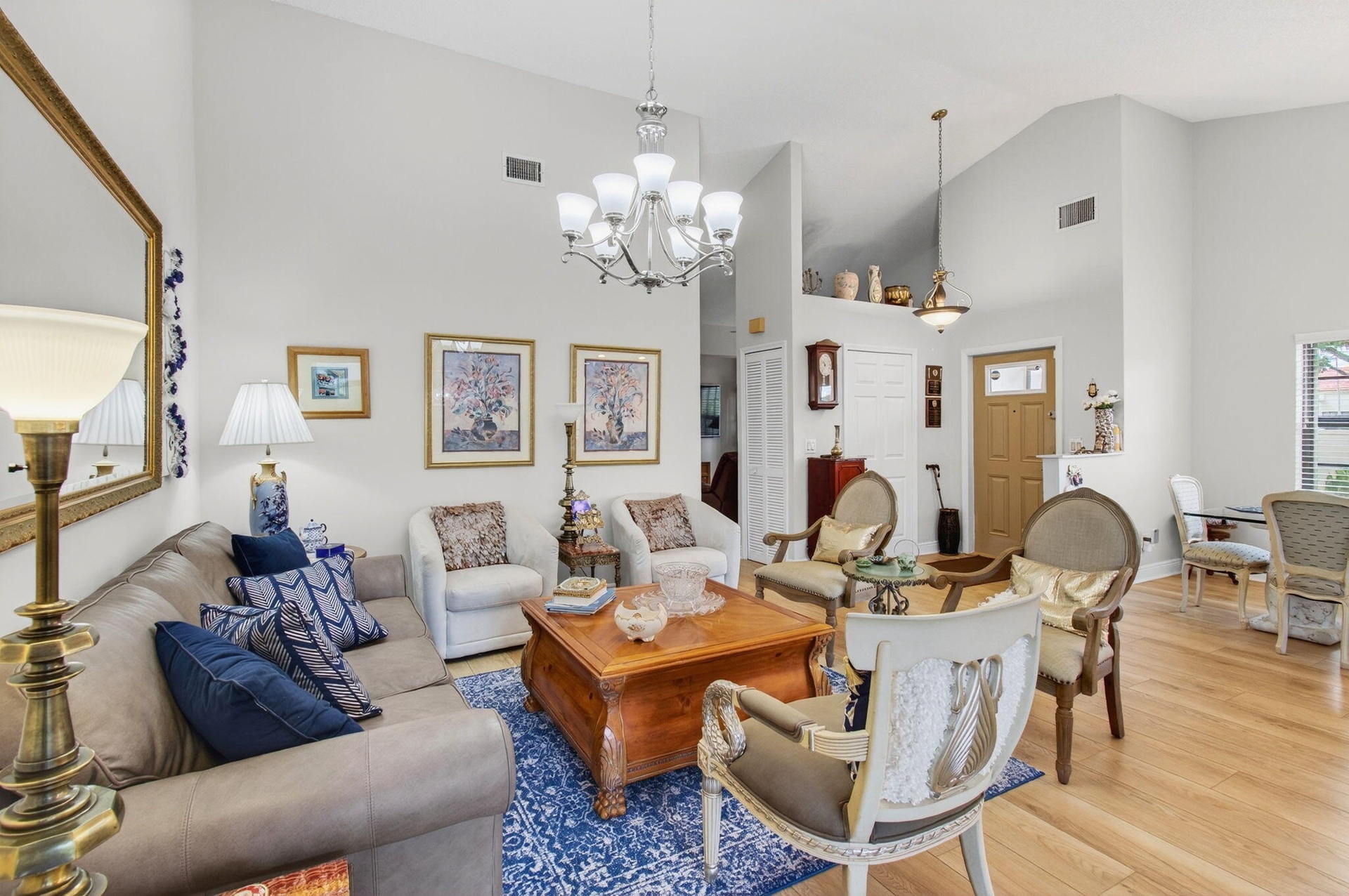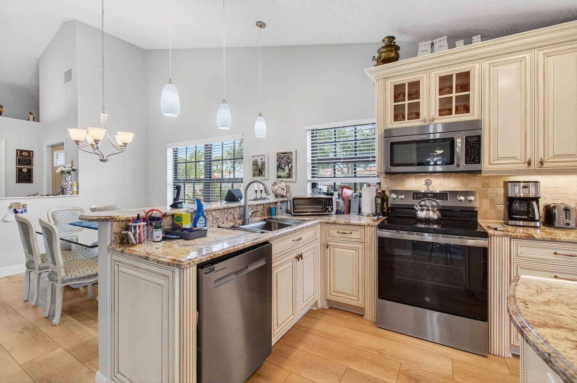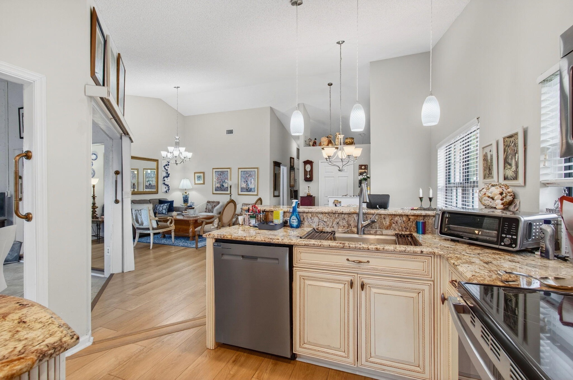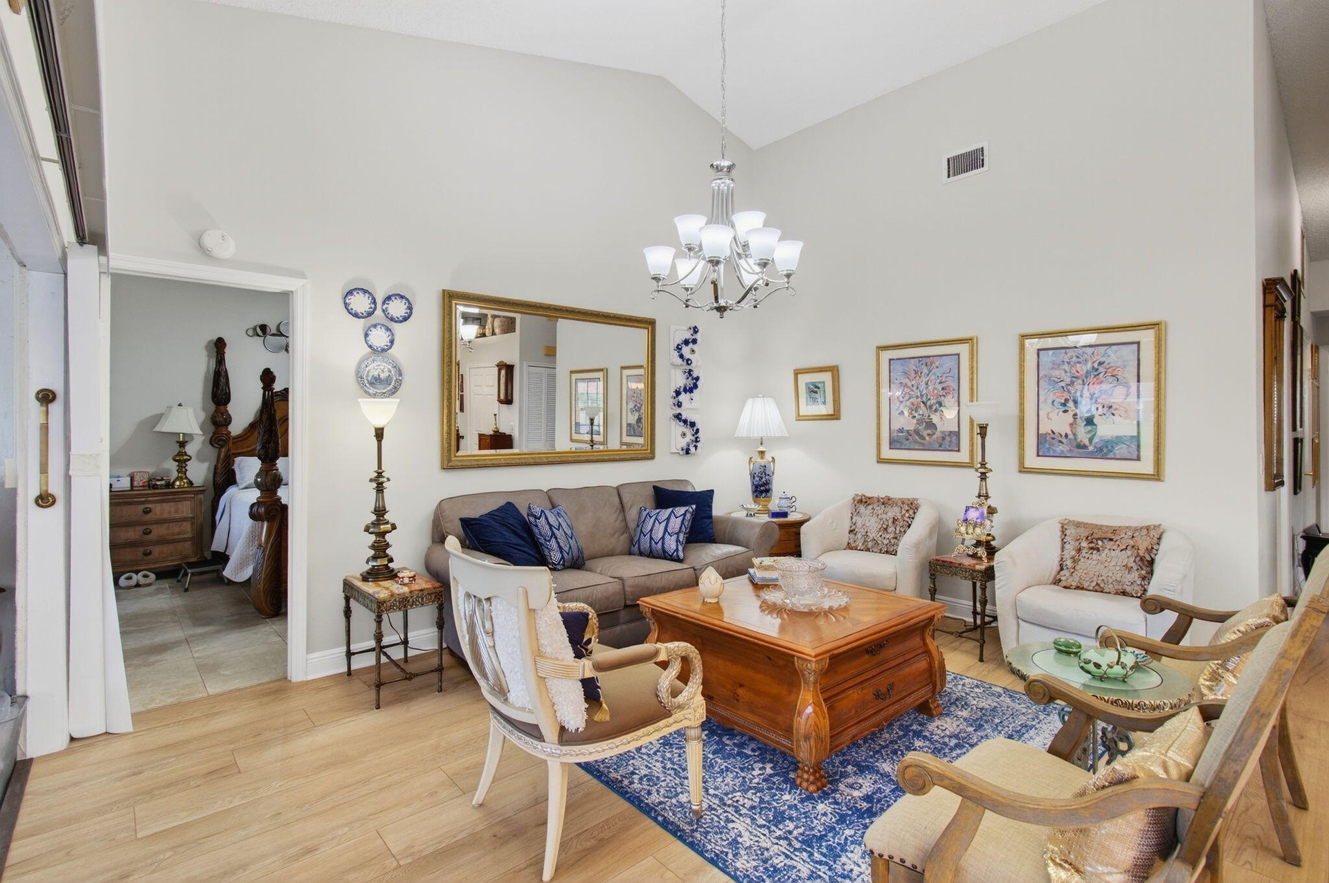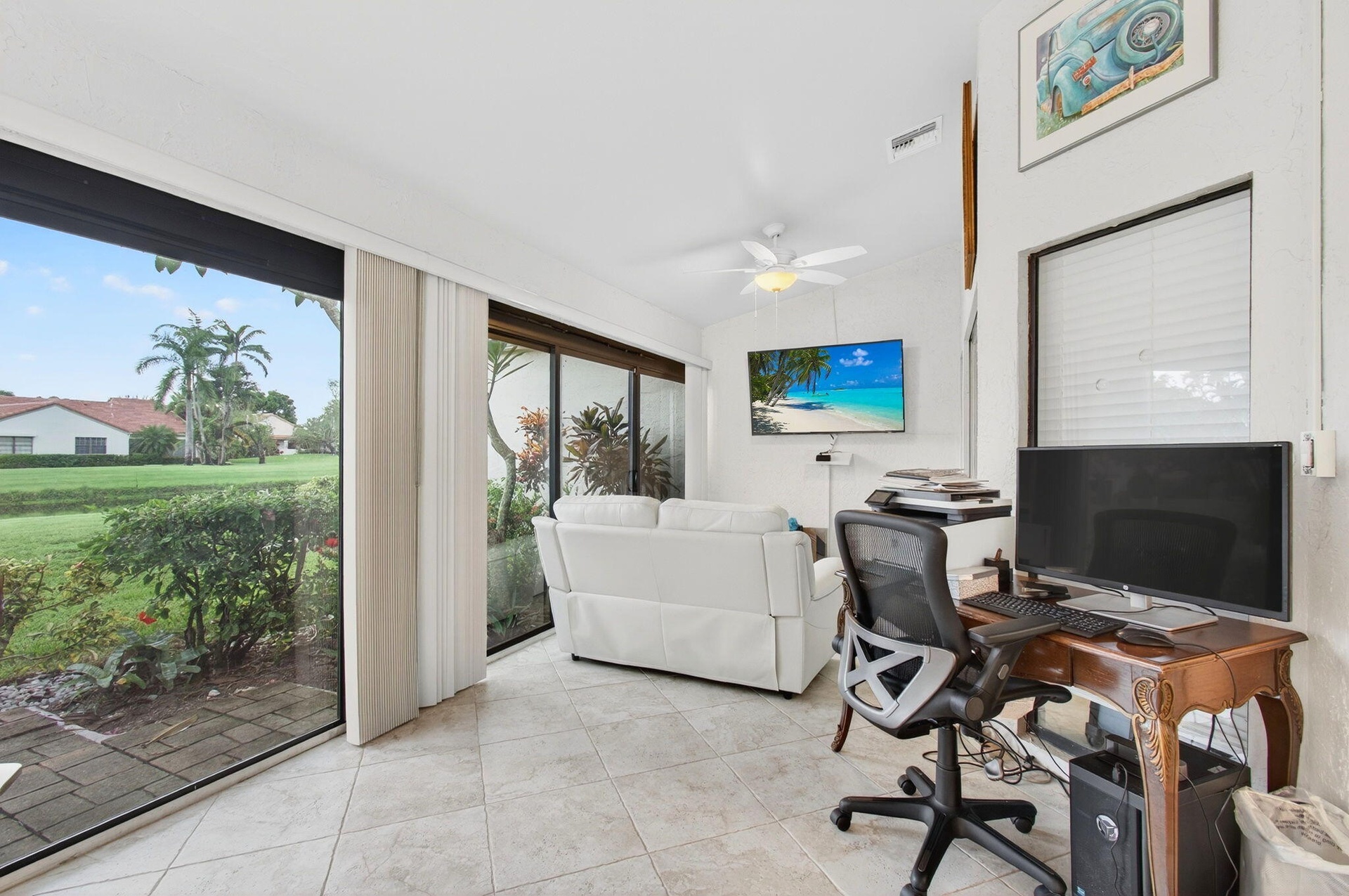 Meticulously maintained for your fussiest Buyer. Don't miss showing this rarely available Driftwood Model. This corner unit Villa features Impact Glass throughout,a lovely courtyard entrance, beautiful landscaping & serene lake views... The stunning kitchen is a chef's delight with wood cabinetry, stainless appliances, cooks center island and granite counters. This home features 3 bedrooms (the 3rd bedroom is used as an open den/office but can easily be converted), 2 remodeled baths and to add to your living space, a glass and screen enclosed air-conditioned Lanai (the lanai is not included in the square footage). Vaulted ceilings make this unit light and bright. Enjoy the many amenities of Aberdeen East with NO MEMBERSHIP FEES. The clubhouse amenities are all included in your HOA