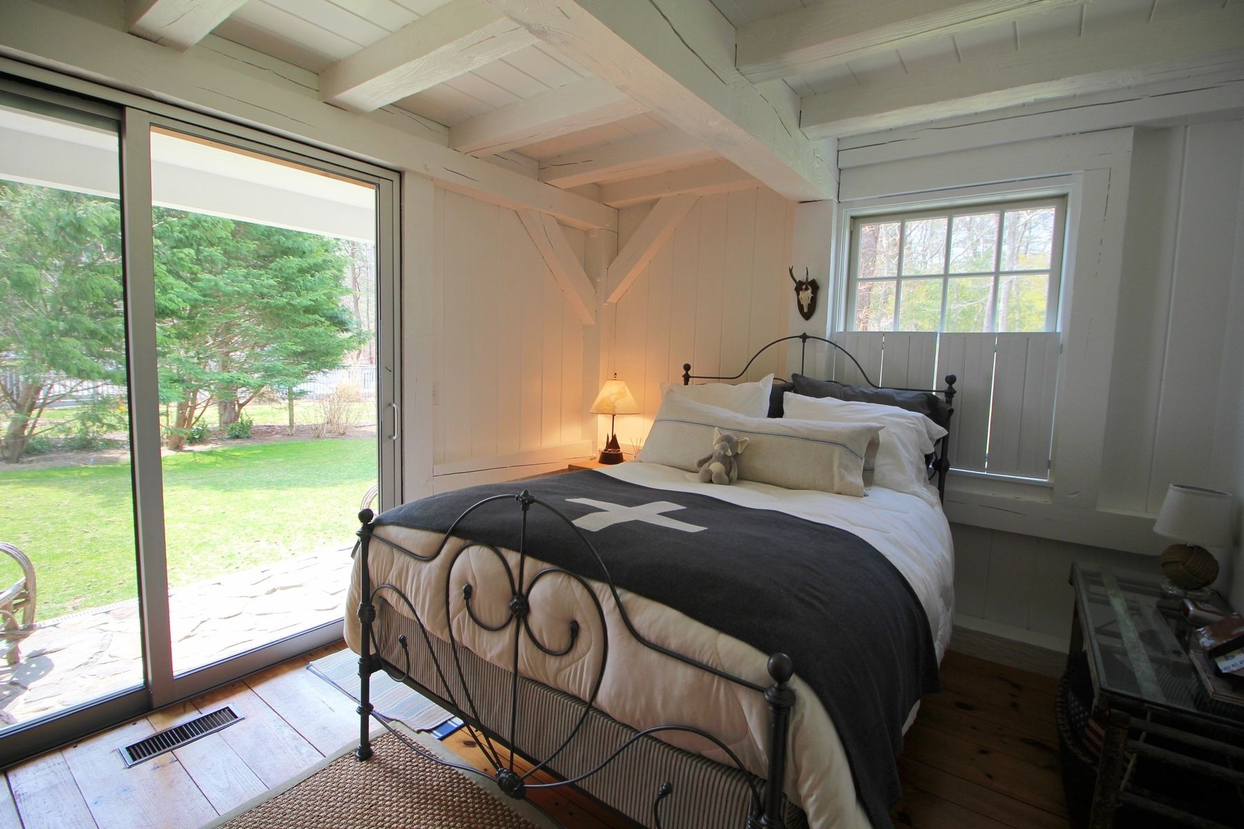 Rental Registration #: 18-1122 Tucked away at the end of a private lane is this totally renovated Wainscott cottage. The interior has all the modern amenities, gourmet kitchen, spacious dining area, light filled living room, two guest bedrooms on the main floor with shared bath. The master bedroom with it's own loft is upstairs. There is a beautiful inground heated pool with sun deck. Close to ocean beaches and villages. You'll feel like you are in the French countryside... a perfect summer ......
