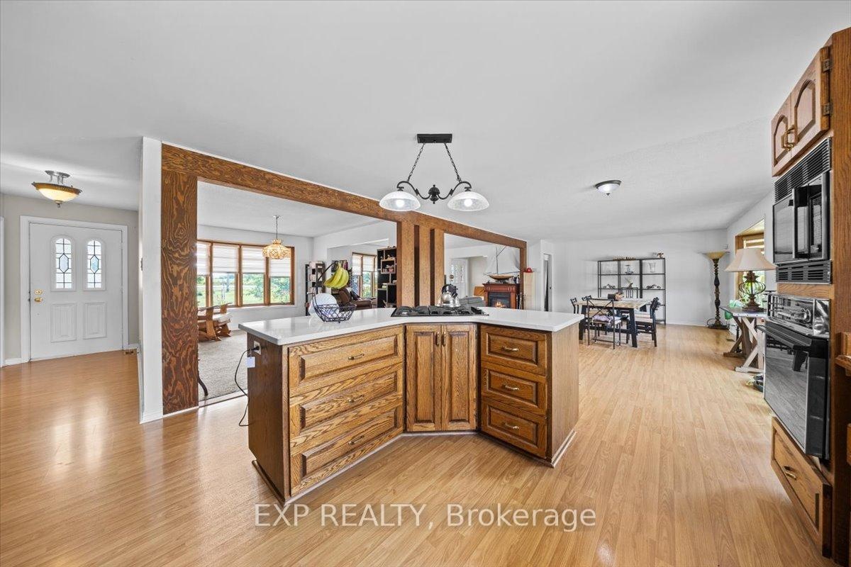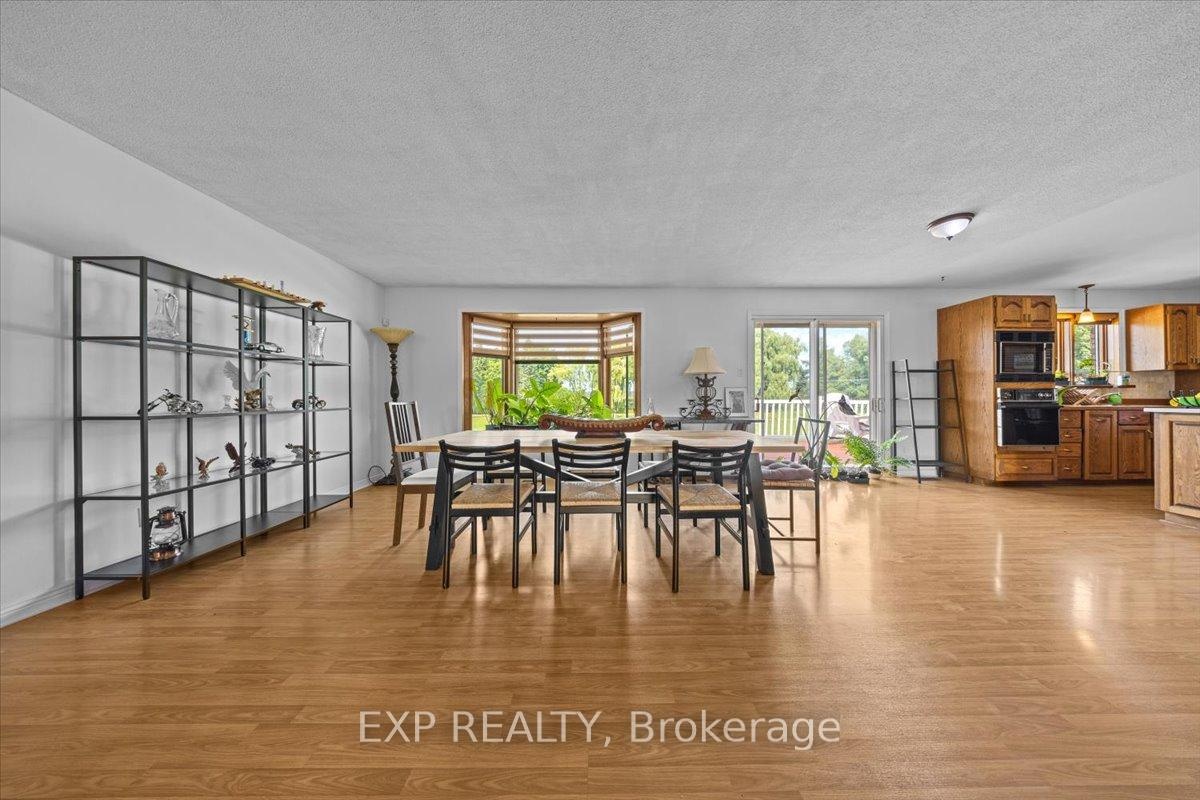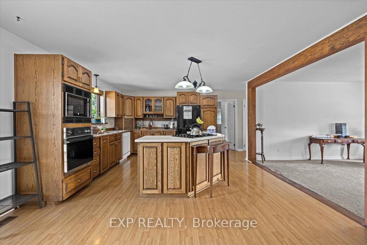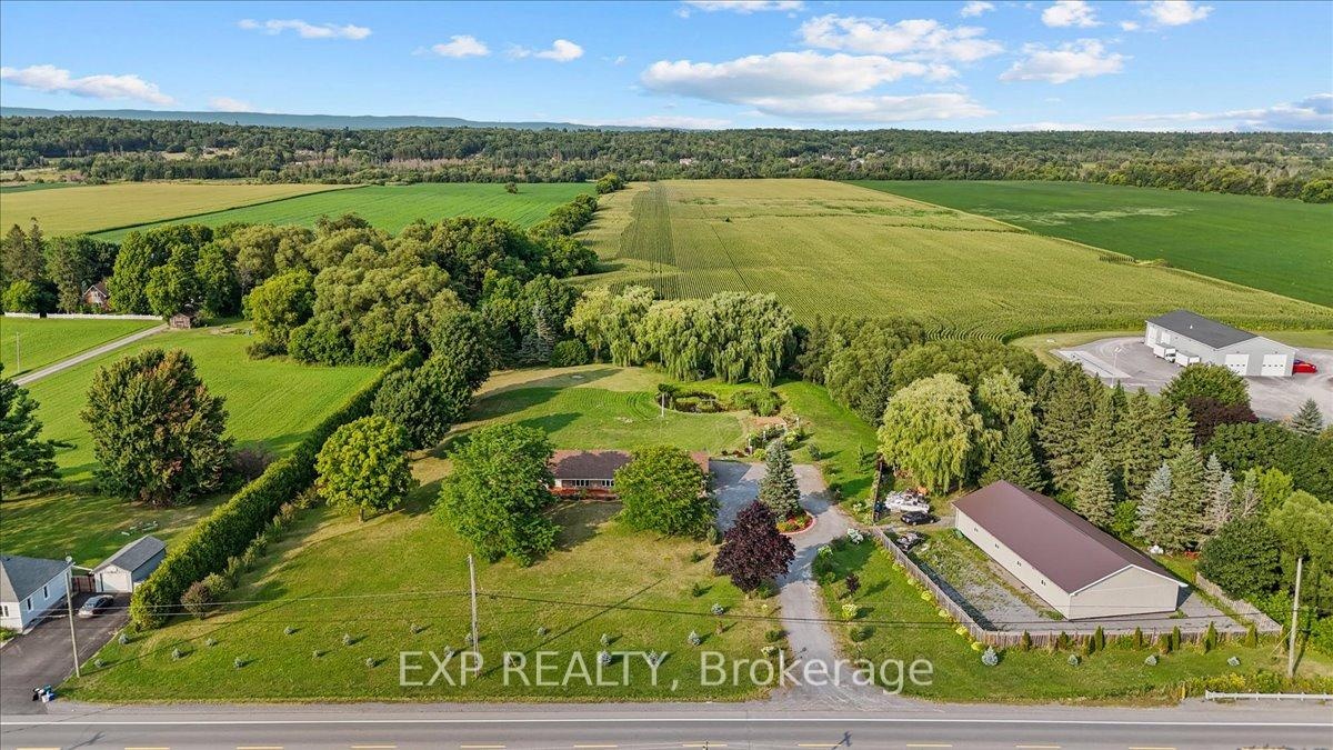 A rare offering just minutes from Kanata and Stittsville, this all-brick bungalow is nestled on a beautifully landscaped 3.95-acre lot surrounded by scenic ravine views and open farmland. Zoned agricultural, this well-maintained property offers exceptional potential for a home-based business, multi-generational living, or future investment. Inside, the spacious layout features a large eat-in kitchen with direct access to a sunny deck overlooking the expansive backyard perfect for entertaining or simply enjoying the peaceful surroundings. A formal dining room, two large living areas, and a dedicated office/den provide flexibility and function for families or remote work. Three bedrooms, three bathrooms, main floor laundry, and a triple-car garage complete the upper level. The fully finished lower level expands your options with a massive recreation room, billiards area, bar, additional bedroom with walk-in closet, and the potential to convert the basement into a separate suite or duplex. Outside, the home is set back from the road with a long, private driveway and immaculate grounds. A 3,200 sq ft detached garage (built 7 years ago) offers potential for storage rental income. Incredible space for storage, a workshop, RV parking, or agricultural uses including kennel operations. Can hold 14 to 20 cars depending on the size. Incredible space for storage, a workshop, RV parking, or agricultural uses including kennel operations. The fully fenced yard features fruit trees (apple, cherry, plum, and pear), trimmed hedges, and a cleared tree line around the ravine. Wildlife lovers will enjoy frequent deer and turkey sightings, and sports enthusiasts will appreciate the space for a pool, tennis court, or basketball court. Additional highlights include a new furnace (2024), interlocked walkway, and excellent road exposure on Carp Road. A unique property with unmatched potential, blending country charm with business-ready amenities.
