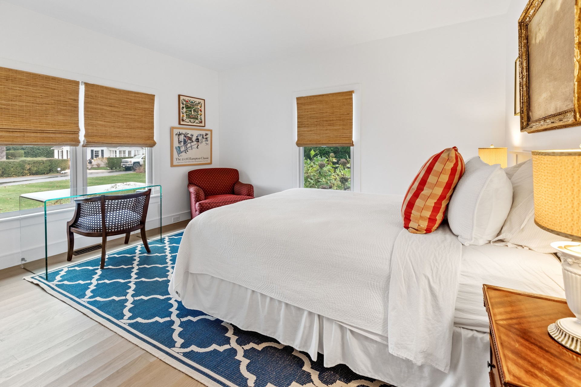Enjoy this Charming Home with 4 Bedrooms, 3.5 Baths, and Heated Gunite Pool situated on a beautiful shy acre, minutes from the Village of Bridgehampton. This lovely home is available throughout the summer months.