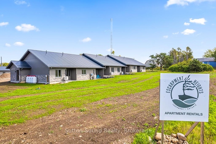DescriptionWelcome to Escarpment Heights, a thoughtfully designed retirement rental community offering the perfect blend of comfort, convenience, and peace of mind. These townhome-style apartments are an excellent option whether you're looking to enjoy year-round living in Tobermory or spend summers here and head south for the winter, knowing your property will be cared for with lawn maintenance and snow removal included. Each unit has been built with quality in mind, featuring open and spacious layouts, paved driveways, covered entrances, and private outdoor spaces. Deluxe units offer the added bonus of a single-car garage and den. Every home is equipped with in-floor heating, air conditioning, and 36" door widths for accessibility, along with a full suite of stainless steel appliances including fridge, stove, dishwasher, microwave, washer, and dryer. The Standard One-Bedroom unit provides 720 square feet of well-planned living space. It includes a large master bedroom with generous closet space and an open-concept kitchen, dining, and living area highlighted by a built-in pantry. The rental rate is $1,875 per month plus hydro, with in-floor heating, water, property taxes, lawn care, guest parking, and snow removal all included. Escarpment Heights is more than just a place to live - its a lifestyle. Set in the heart of Tobermory, its the perfect choice for those seeking a secure, low-maintenance retirement home surrounded by the natural beauty of the Bruce Peninsula. With Phase 1 now complete and Phase 2 coming soon, this is the ideal time to reserve your unit and secure your place in this sought-after community. Contact me today to arrange a viewing or learn more about availability at Escarpment Heights.Virtual Tour: https://www.youtube.com/watch?v=WqE0SyfssVAAmenities- 32 Inch Min Doors
