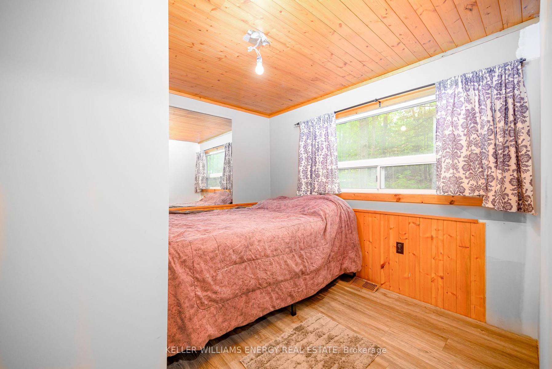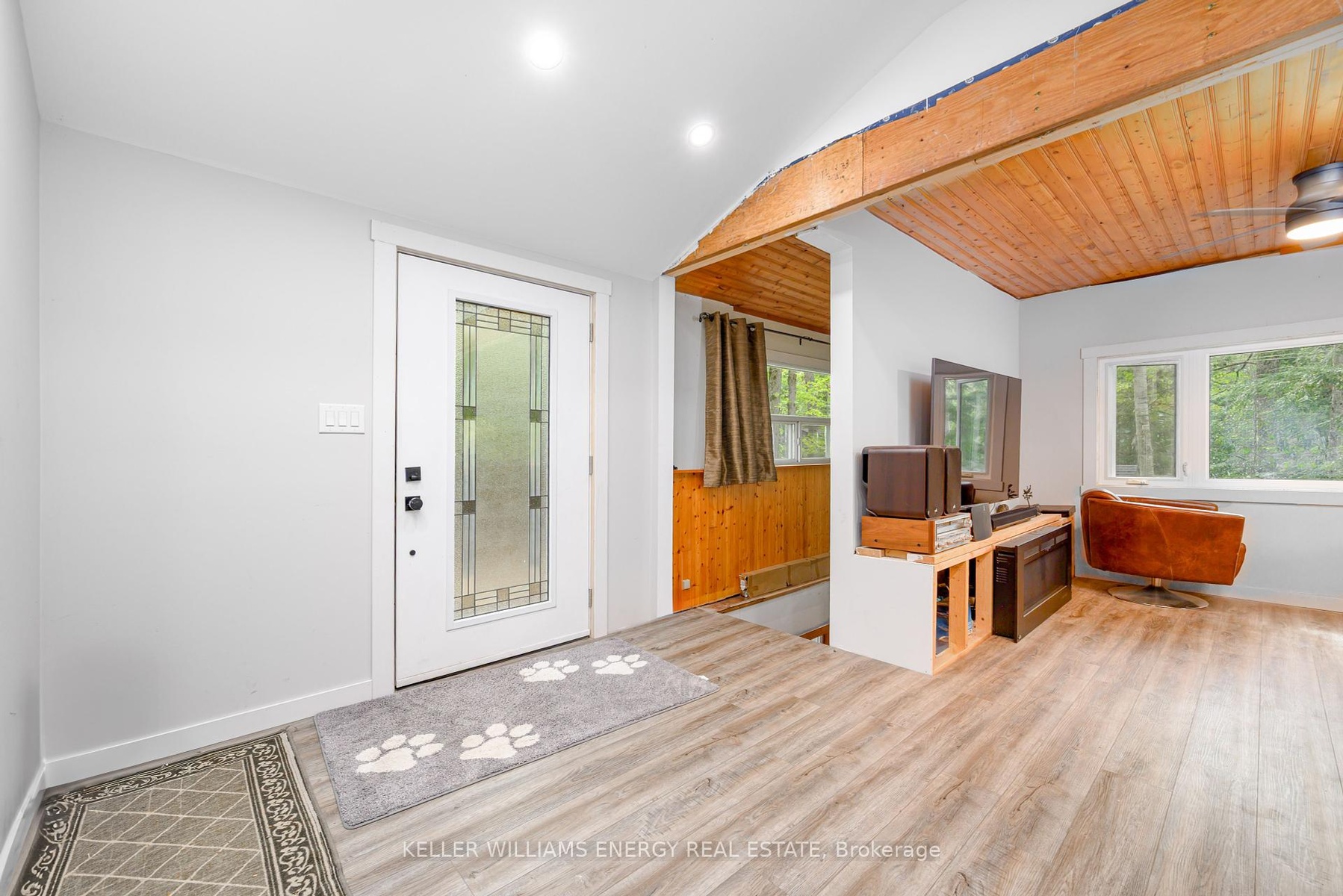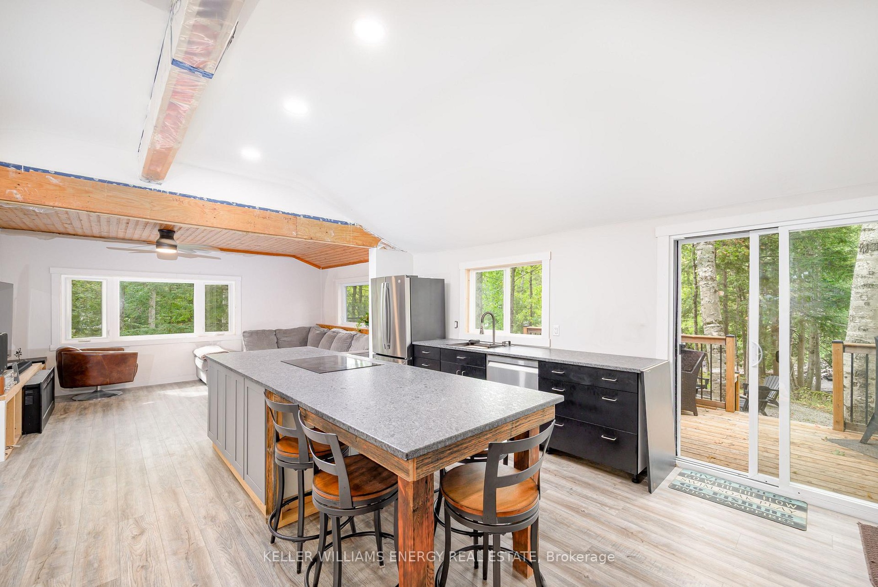 Stylishly Updated Inside and Out, so groovy! Dont miss this private oasis with 108 feet of frontage on the beautiful Miskwaa Zibii River. This charming year-round 3-bedroom, 1-bathroom home offers the perfect blend of comfort, serenity, and natural beauty. Inside, you'll find vaulted ceilings, tongue-and-groove pine throughout, 200-amp service, and an updated bathroom. Recent upgrades include all new insulation, plumbing, and wiring on the main floor, a new water treatment system, and washer/dryer. Step outside to enjoy a metal roof, drilled well, landscaped lot, private fire pit, and patio doors leading to a brand-new deck (2023) ideal for dining al fresco or hosting friends and family. The versatile bunkhouse, already equipped with 60-amp electrical, is ready for your finishing touches whether you envision extra guest space, a workshop, games room, or an artists retreat. A great location, countless updates, and serene river frontage make this property a rare find!