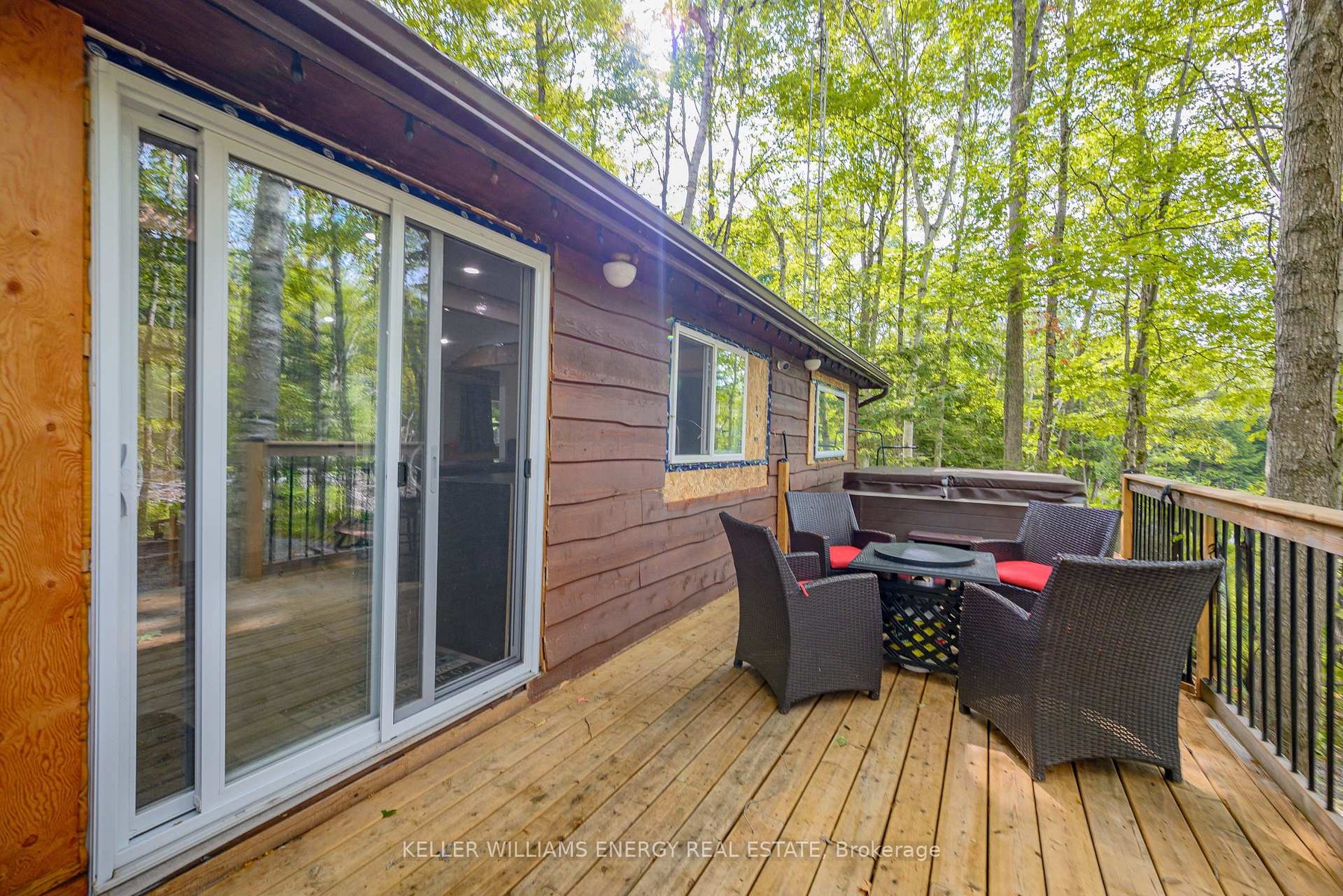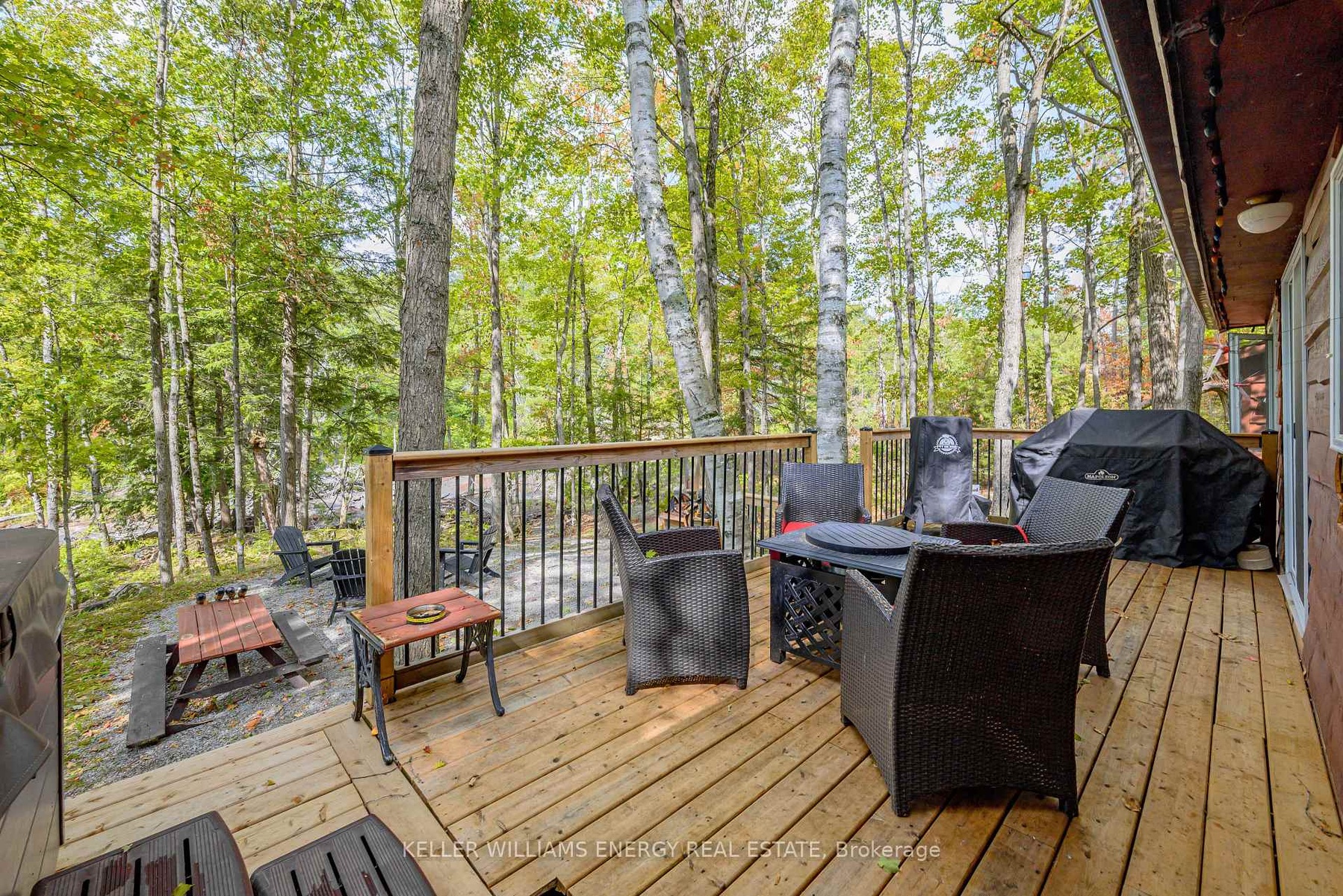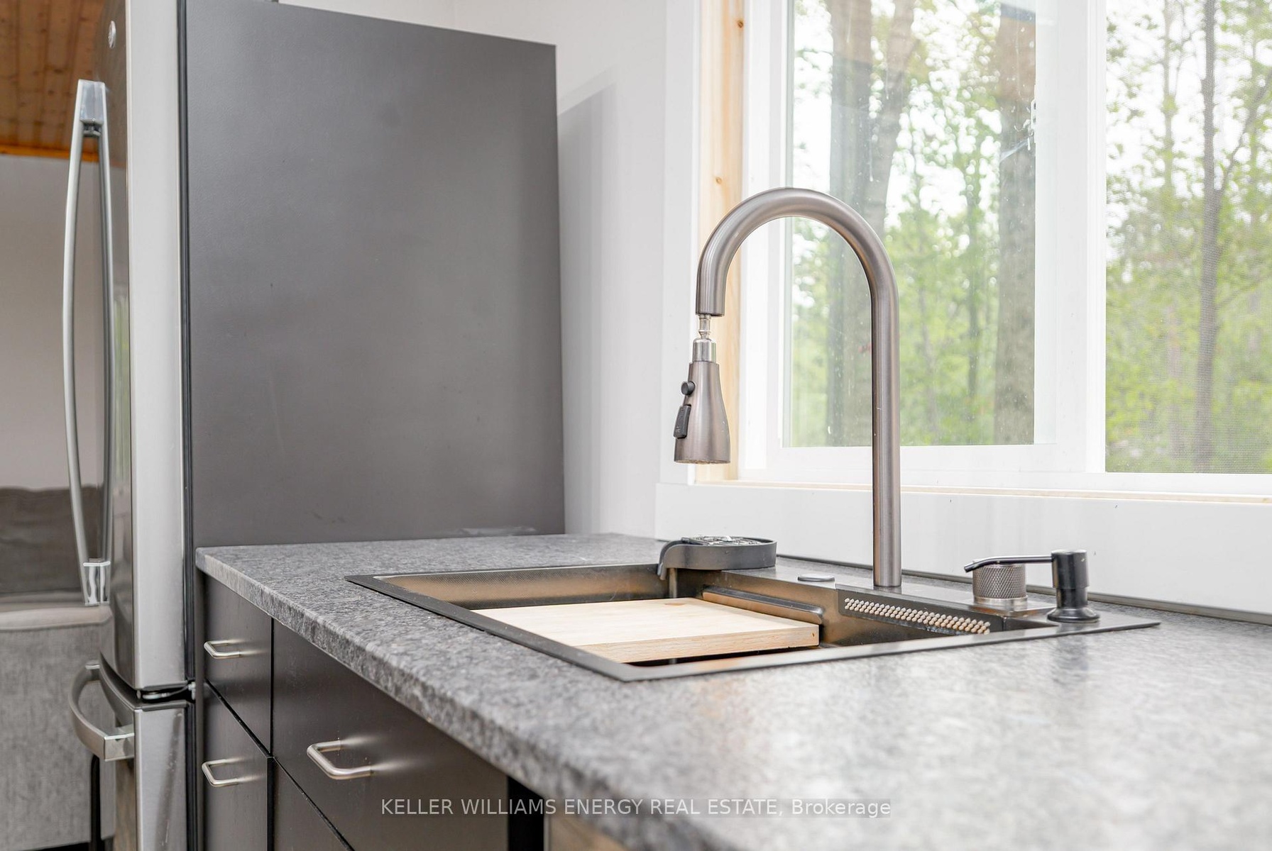 Stylishly Updated Inside and Out, so groovy! Dont miss this private oasis with 108 feet of frontage on the beautiful Miskwaa Zibii River. This charming year-round 3-bedroom, 1-bathroom home offers the perfect blend of comfort, serenity, and natural beauty. Inside, you'll find vaulted ceilings, tongue-and-groove pine throughout, 200-amp service, and an updated bathroom. Recent upgrades include all new insulation, plumbing, and wiring on the main floor, a new water treatment system, and washer/dryer. Step outside to enjoy a metal roof, drilled well, landscaped lot, private fire pit, and patio doors leading to a brand-new deck (2023) ideal for dining al fresco or hosting friends and family. The versatile bunkhouse, already equipped with 60-amp electrical, is ready for your finishing touches whether you envision extra guest space, a workshop, games room, or an artists retreat. A great location, countless updates, and serene river frontage make this property a rare find!