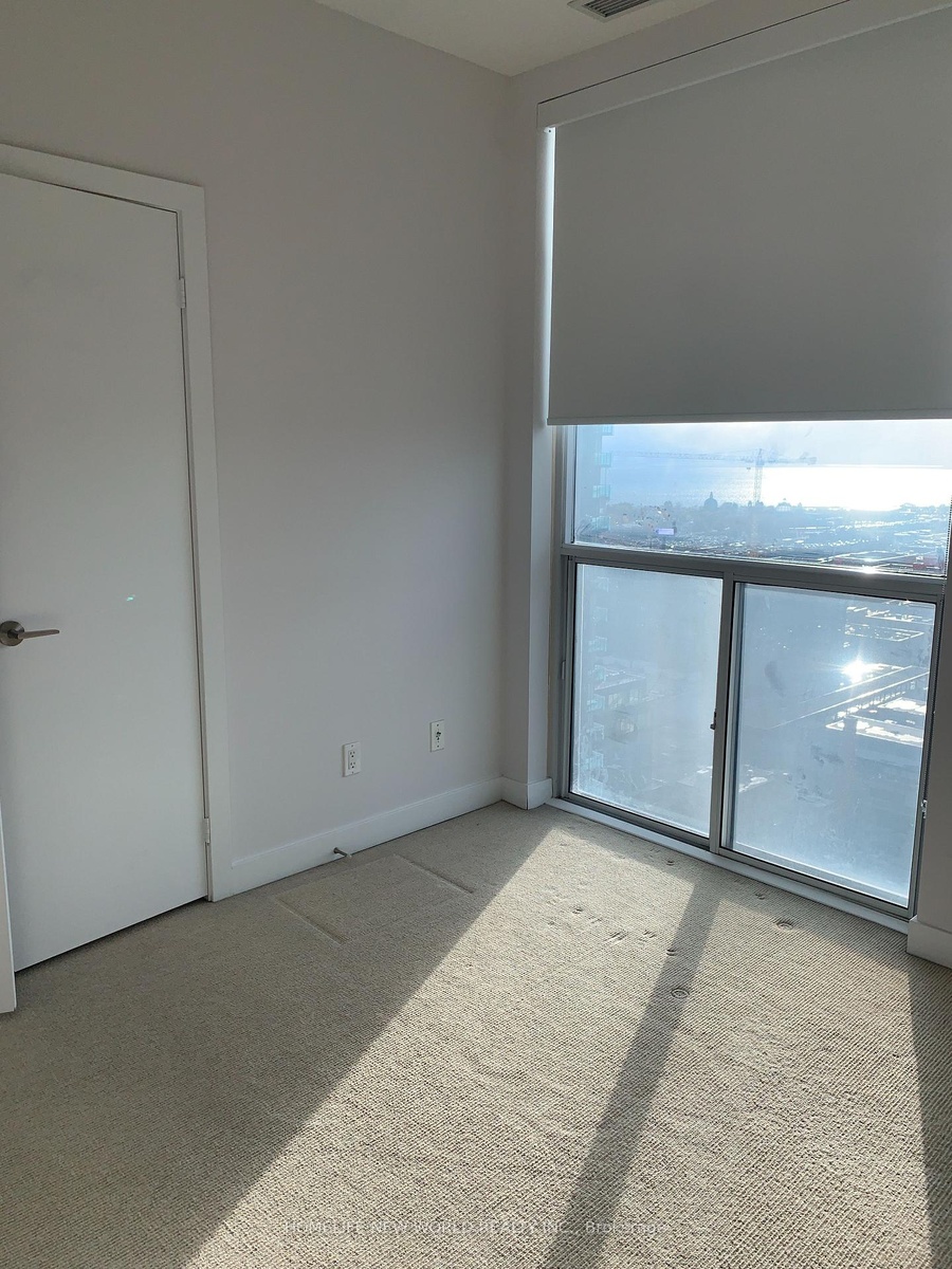 Welcome home features an ultra-wide southwest-facing floorplan and panoramic sunset views stretching all the way to the lake! Step inside to discover incredible all-day natural light and plenty of practical living space, with no pillars or odd room shapes to deal with. No need to settle for condo-sized furniture either. Use your den with clear view for WFH, dining room, home gym, baby's crib, or 3rd bedroom! Culinary dreams come true in this chef's kitchen, enjoy full-size appliances, double counter-top, breakfast bar, plus a huge window! One elevator ride away from the impressive rooftop terrace, gym, billiard's room, party room, library, and conference room. Walk to any amenity you need - michelin star restaurants, bars, metro, shoppers, nature trails, the lake, TTC, go train, and trinity bellwoods park. Don't miss out!