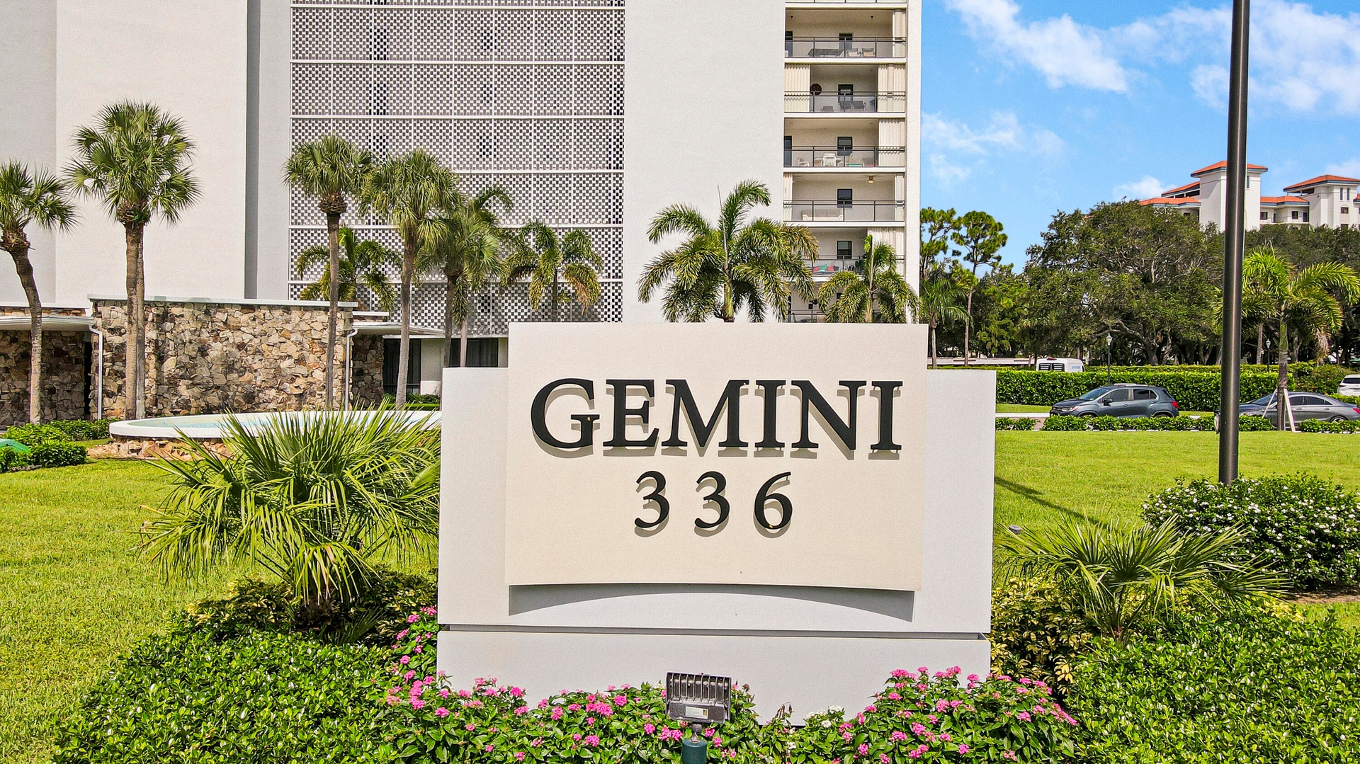 Welcome to one of North Palm Beach's premiere condo buildings. Having recently completed remediation and SIRS requirements this property is ready for it's next owner. Located in the west wing this property features long views to the south and west. Skyline and sunset views, watch the boat parade from your balcony or at the pavilion on the waterway. Newer tile floors, and updated master vanity. Plantation shutters, impact windows in bedrooms and kitchen. The Gemini has a long list of amenities from billiards, boccee ball, bike storage, on-floor storage, heated pool, pavilion and BBQ to name just a few. Property includes a deeded covered parking spot on the secured grounds. Minutes from the North Palm Beach Country Club, PGA Blvd, shopping, dining and entertainment