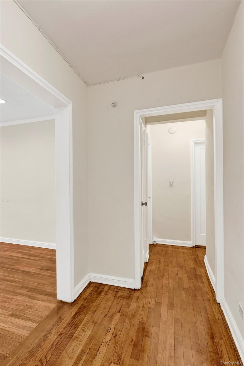 - Hall with light wood finished floors and baseboards