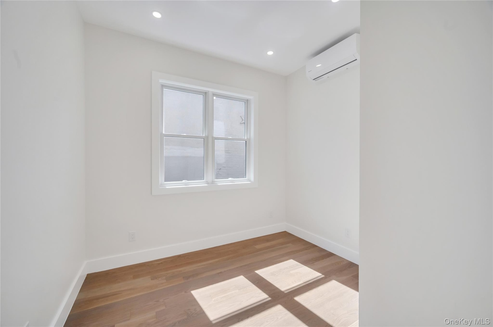 - Spare room featuring light wood finished floors, recessed lighting, and a wall mounted air conditioner