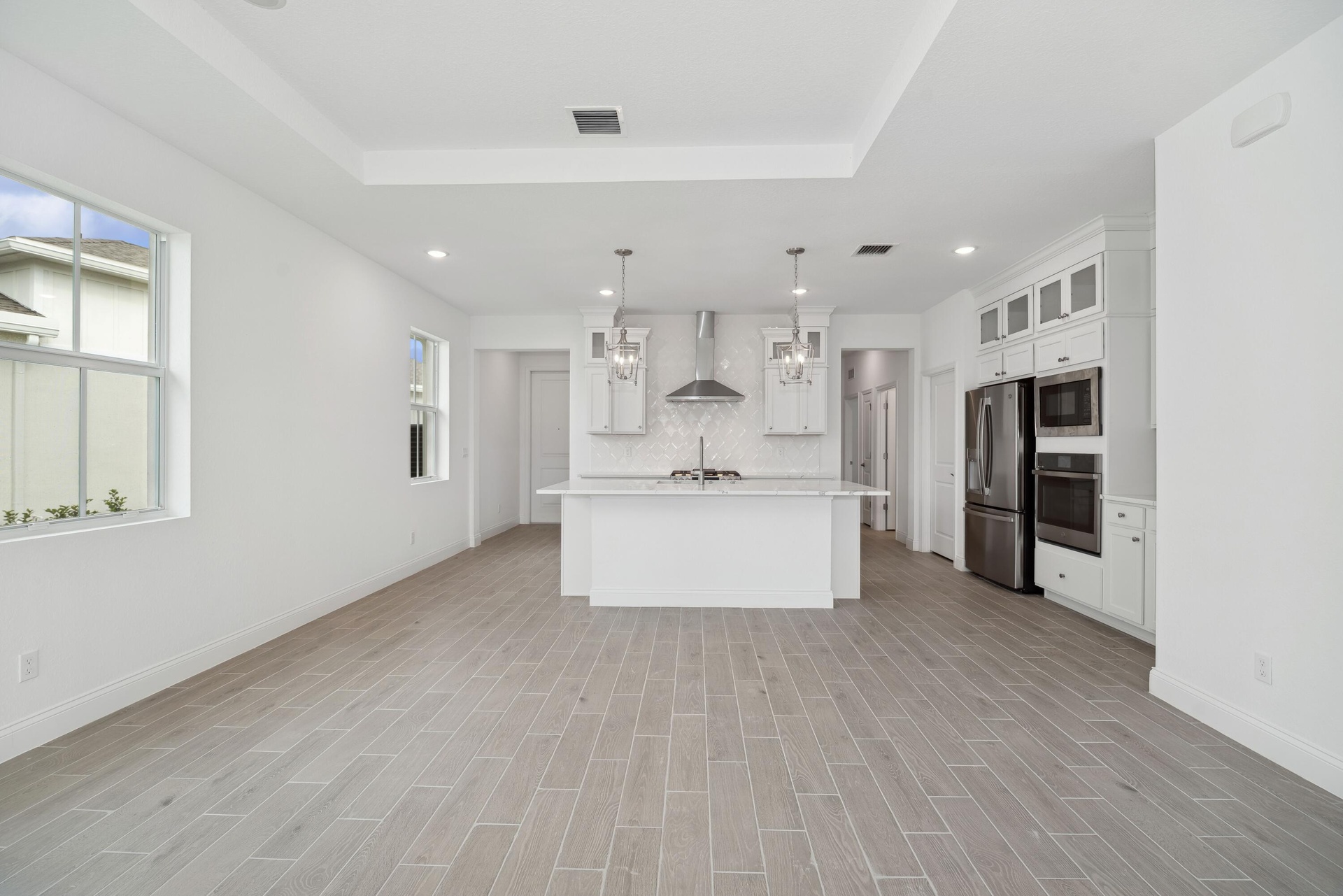Elegant Spring Lake IV Villa with Preserve ViewsWelcome to this exceptional Spring Lake IV villa, located in Four Seasons at Wylder, Port St. Lucie's premier 55+ community. Set on a premium 6,889 sq. ft. preserve lot with desirable south-facing exposure, this home captures abundant natural light and offers tranquil preserve views for a private, peaceful setting.The thoughtfully designed open layout blends style and functionality. The kitchen features pristine white soft-close cabinetry, gleaming quartz countertops, GE stainless steel appliances, and a professional-style gas range with stainless hood. Overlooking the great room and dining area, the kitchen allows for effortless entertaining and everyday convenience. A 12' sliding glass door opens the living space to the