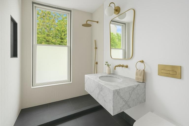 Above, the top floors host three high-quality rental units, including a floor-through 1-bedroom with wide-plank white oak flooring, a decorative original mantle, mini-split HVAC for heating & cooling, in-unit washer/dryer, as well as a full bath with radiant heated floor tiles and a soaking tub with Jacuzzi jets. The third floor features a 1BR apartment with high ceilings, exposed beams, washer/dryer, landmarked French casement outswing windows, as well as an additional studio apartment—each designed with thoughtful layouts and modern finishes.