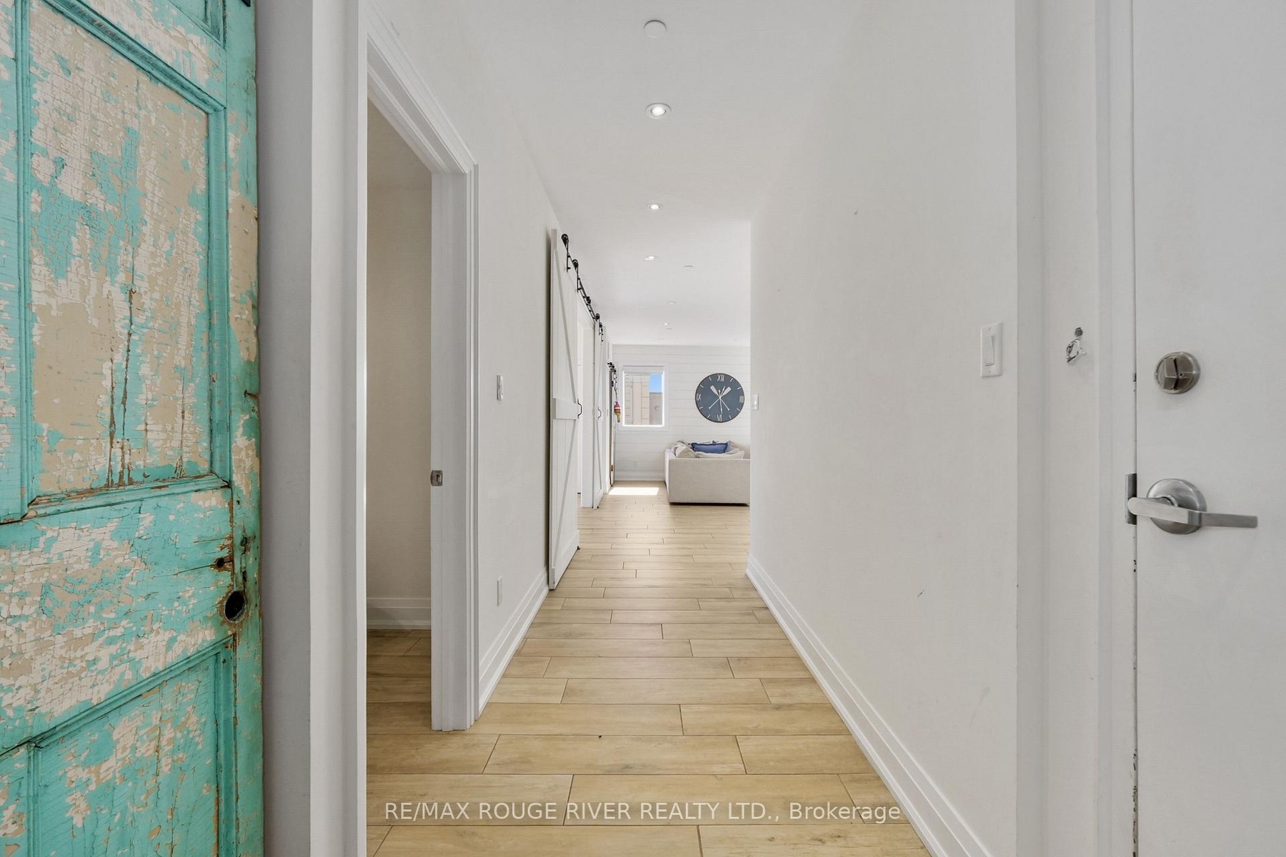 In the heart of Cobourg's Waterfront District, find this rare furnished luxury penthouse- an incredibly special sanctuary that has been designed with the utmost attention to detail. Atop the coveted Beach Walk Place building, this stunning open floor plan corner unit redefines lakeside living with its captivating views and oversized living spaces. Featuring sweeping views of the water, unit 301 is positioned facing South East, creating a sense of spaciousness and allowing natural light to stream in from all angles. The living, dining, and kitchen areas seamlessly connect, creating a fluid space that is perfect for both everyday living and entertaining. Up the stylish, industrial staircase, a huge jaw-dropping rooftop patio, one of multiple outdoor spaces in this unit, making it the perfect spot to host friends and family, or relax with a view. Accessed by a lift and including 1 covered parking spot- this executive furnished rental is turnkey and ready for you. Steps to the Cobourg Beach, boardwalk, marina, fine dining and shopping.
