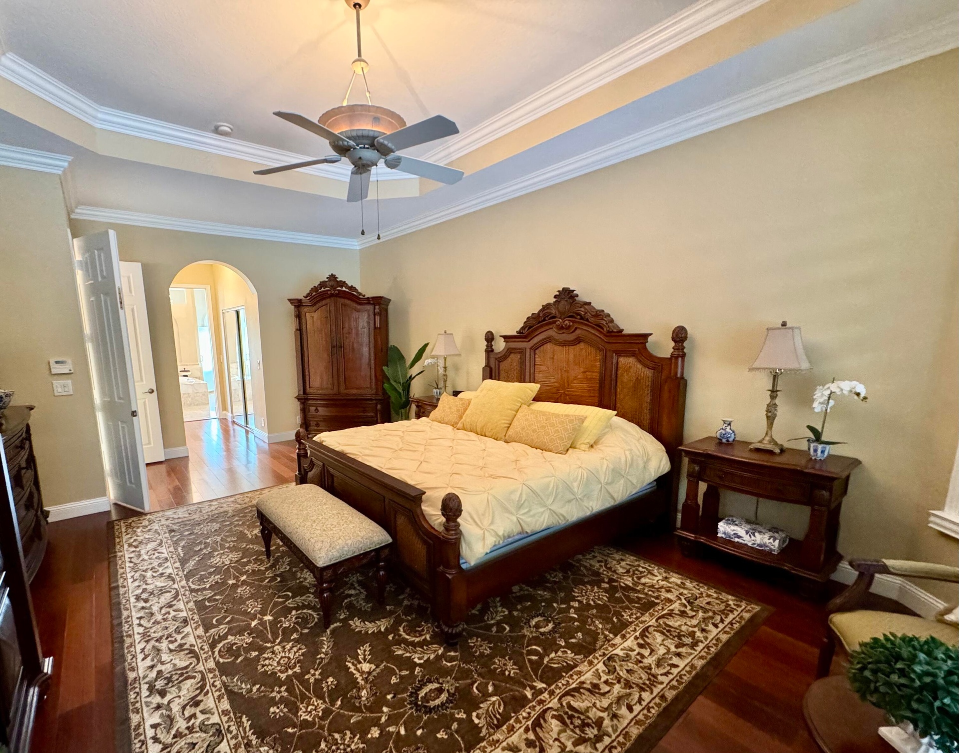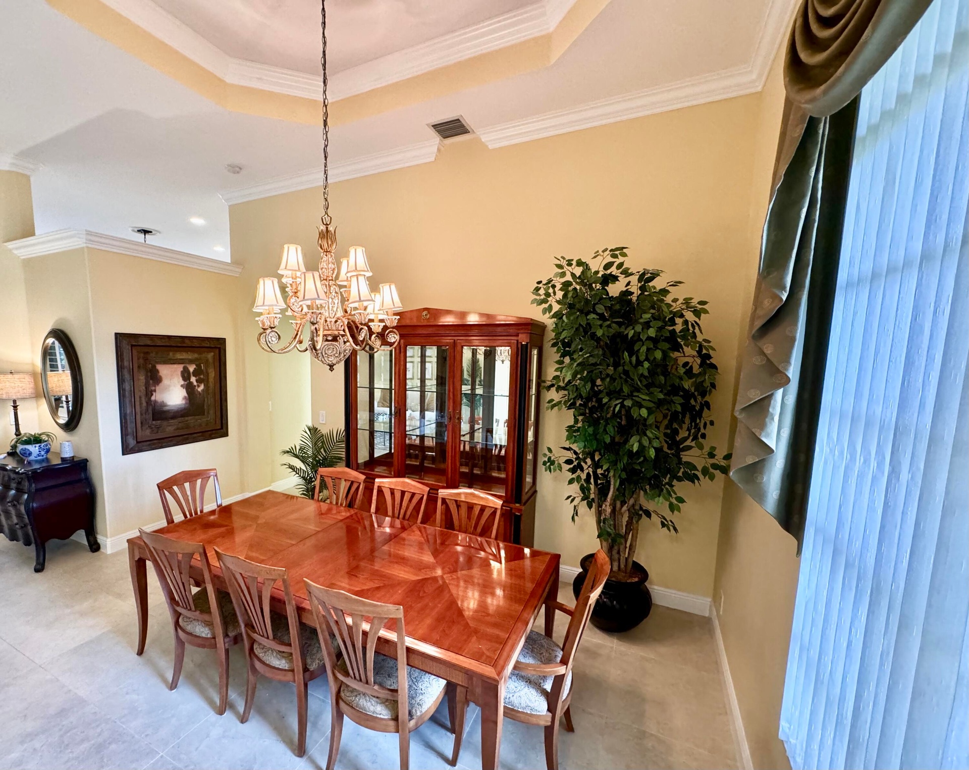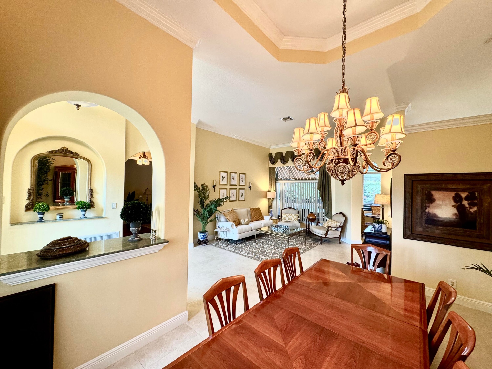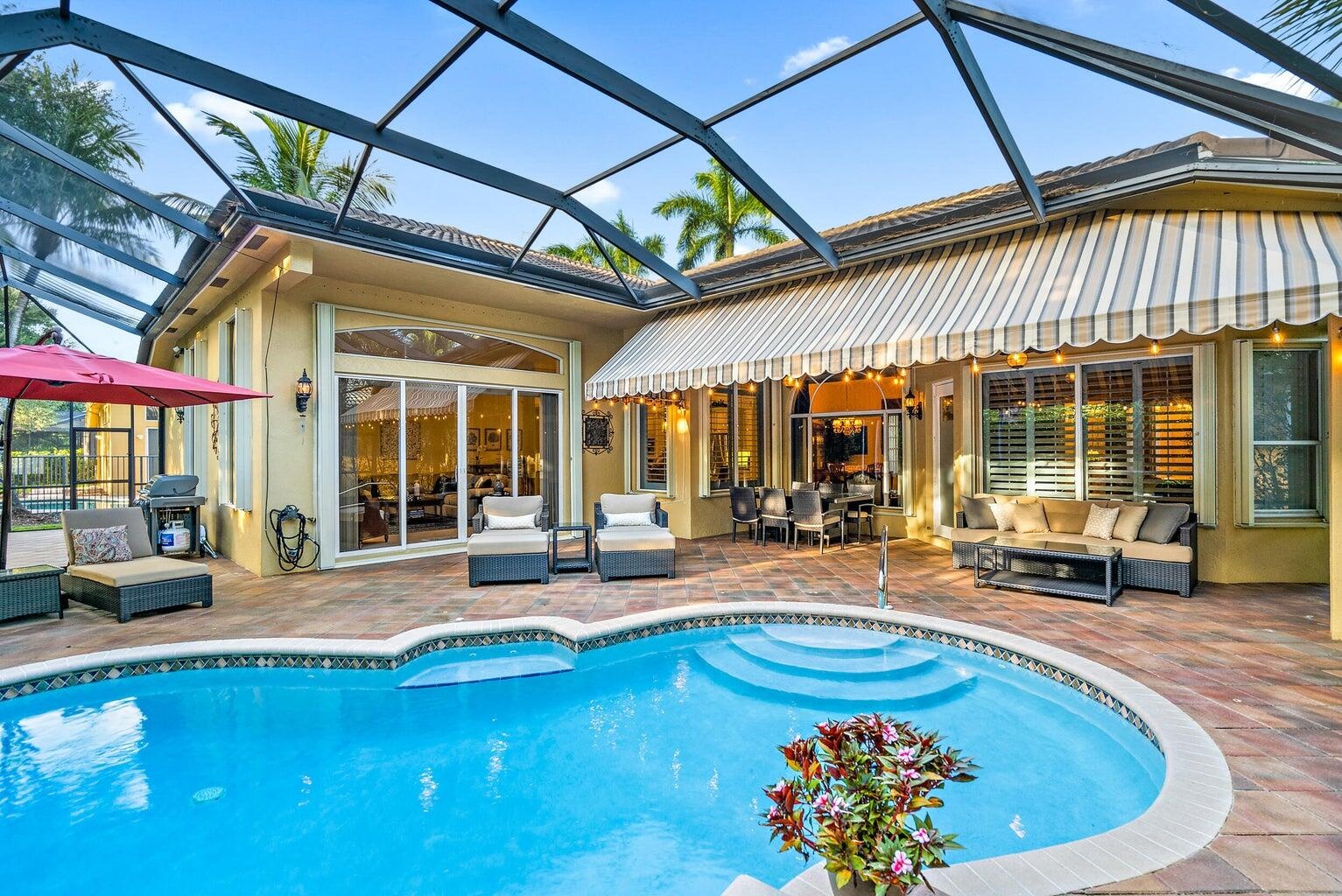 This home has it all!! Grand Mediterranean Style Ranch in desirable Countryside Estates-Minutes to all Wellington equestrian venues! 4 bed/3 bath, high ceilings, plenty of sunshine elegant finishes, creative design, open kitchen, custom cabinets, SS appliances, generous island, high end granite, an ideal space for entertaining! , Dining area comfortably seats 8 or more-dine inside or on your private lanai, surrounded by lush landscaping & citrus/fruit trees! Master en suite ensures privacy as well, with your own personal entrance to your salt water, heated pool. East side of home offers separate entrance, full bath and bedroom for guests or in-law, 3 car garage, oversized driveway for added vehicles, gated community, NEW ROOF 2023-HALO Disinfecting Ozone system 2023--- LOW HOA!!