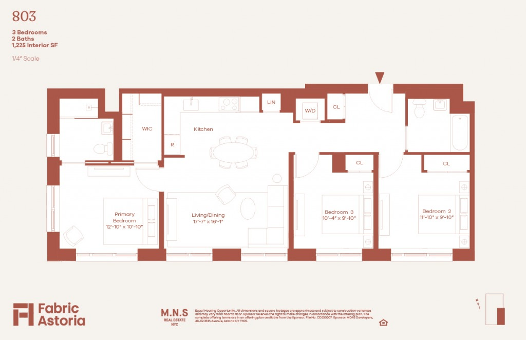 Top-Floor, corner 3-Bedroom with Manhattan skyline views!Sign a contract now and receive up to 2 years of parking.Schedule your exclusive tour in Astoria’s latest 20 YEAR TAX ABATED** condominium.Don’t miss the opportunity to own this timeless 3-bedroom, 2-bathroom home. Inside, three generously sized bedrooms await, including a primary suite equipped with Manhattan views and a windowed, en-suite bathroom and a fully customized walk-in closet. The open kitchen, living, and dining area create a seamless flow of light and air throughout the home.Weaving contemporary design and exceptional amenities into its accessible Astoria location, Fabric Astoria offers 35 one through three-bedroom condominium residences. Featuring brand-new quality construction, with a robust collection of indoor and outdoor amenities.Fabric Astoria residences feature large windows, open plan layouts, modern kitchens with top-of-the-line appliances and hand-picked finishes, an in-unit washer and dryer, and bright, sun-filled views of the city skyline or landscaped courtyard. Attention to detail is paramount, from the herringbone-pattern oak floors and built-in blinds to the high-technology Carson app that manages packages, maintenance, apartment access, and more.Fabric Astoria offers over 21,000 SF of coveted, well-designed indoor and outdoor amenity space. This comprehensive collection includes two landscaped roof terraces with skyline views, a state-of-the-art fitness center opening to an adjoining two-level courtyard terrace, an outdoor BBQ, a dry sauna, a co-working space, a recreation lounge with pool table, a children’s playroom and more.Amenities- Landscaped roof terrace with sweeping Manhattan views- Landscaped and furnished courtyard with outdoor kitchen- State-of-the-art fitness center with direct access to courtyard- Resident lounge with pool table/converts to dining table- Co-working space, with conference room and private work stations- Children’s playroom- Dry sauna- Bicycle storage- Pet spa- Live-In Super- Carson virtual doorman featuring remote apartment entry, package notification, maintenance tracking and more- Roof solar panels to supply power to common elements- On-site parking with EV chargers*- 421a Tax Abatement**Astoria is one of Queens’ most vibrant and diverse neighborhoods, known for its rich culture, thriving dining scene, and close proximity to Manhattan. From tree-lined streets and scenic waterfront parks to world-class restaurants and trendy cafes, Astoria offers the perfect blend of urban convenience and neighborhood charm. With easy access to multiple subway lines, top-rated schools, and a strong sense of community, it’s no wonder Astoria remains one of NYC’s most sought-after places to call home.**Real estate taxes stated herein are projected estimates that assume the 421a Tax Abatement (Option D) will eventually be granted by HPD. There is no guarantee these benefits will be granted. For further detail regarding the 421a Tax Abatement at Fabric Astoria, prospective purchasers should review the offering plan, specifically the special risks and tax opinion letter.Photos, renderings, videos and 3D tours may be reflective of a similar unit or staged residence.Equal Housing Opportunity. Sponsor reserves the right to make changes in accordance with the offering plan. The complete offering terms are in an offering plan available from the Sponsor. File No. CD230207. Sponsor: MD45 Developers 48-02 25th Avenue, Astoria NY 11105.