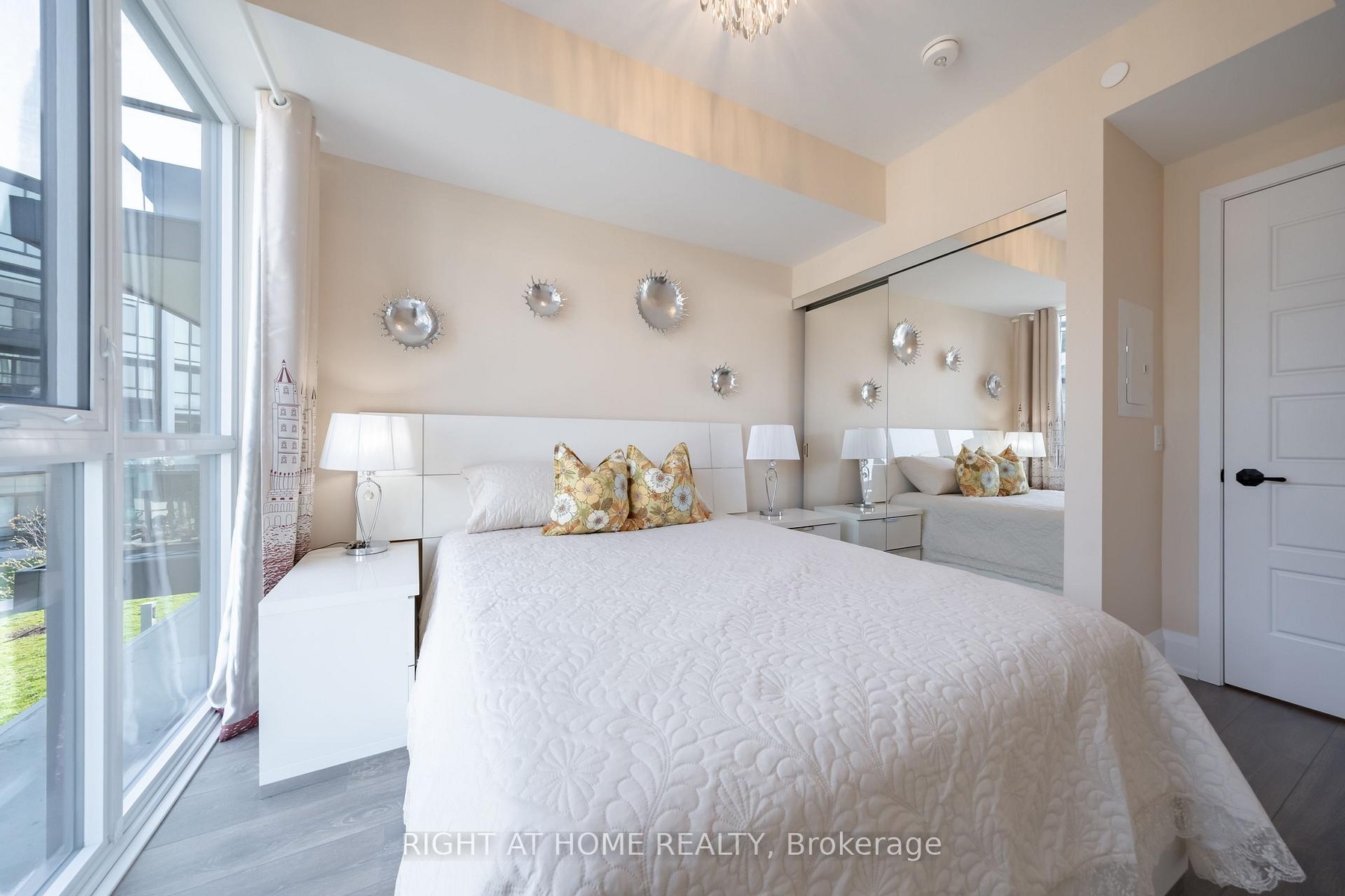 Bright & Spacious South-Facing One-Bedroom Unit with Large Balcony & Resort-Style Living! Comes with 1 Parking and Locker, 525 SQFT Floor Plan + 90 SQFT Open Balcony/Patio with Southern Exposure! You will enjoy Private Outdoor Courtyard Pool and Hot Tub, With A Doggy Spa Room For Your Furry Family Members. This unit is a areal Gem boasting a spacious open-concept layout with soaring 9-ft ceilings, this modern suite features a stylish kitchen with sleek finishes, perfect for both entertaining and everyday living. Floor-to-ceiling south-facing windows flood the space with natural light all day long.The generously sized bedroom offers exceptional comfort and versatility. Step outside to one of the largest balconies in the building ideal for relaxing, hosting, or soaking up stunning views. Enjoy access to world-class, resort-style amenities - North America's Largest man made marina, Private Restaurants - Beach Club andLake Club, with modern fitness centre and recreational activity areas plus A Marina Pool and Beach Club Pool.