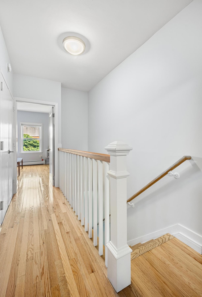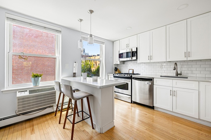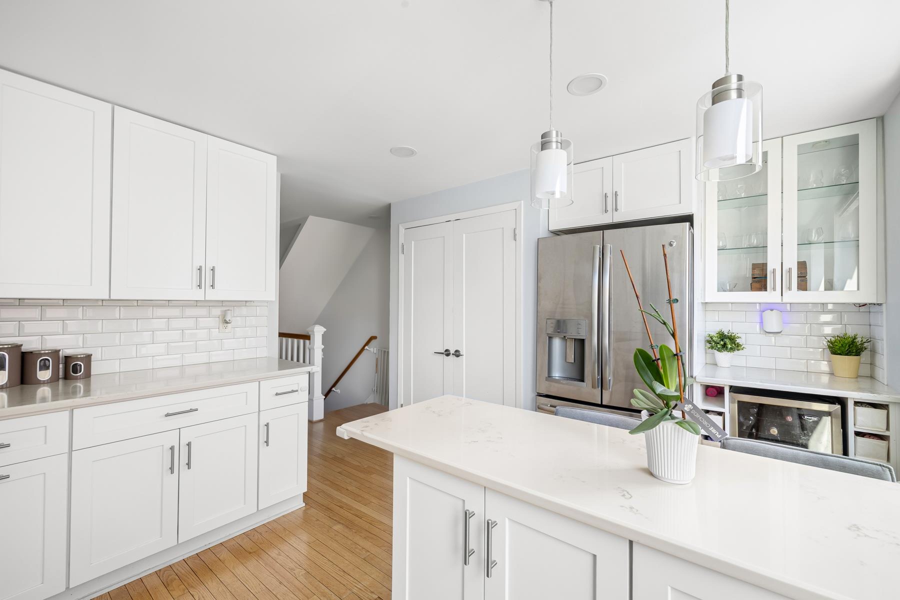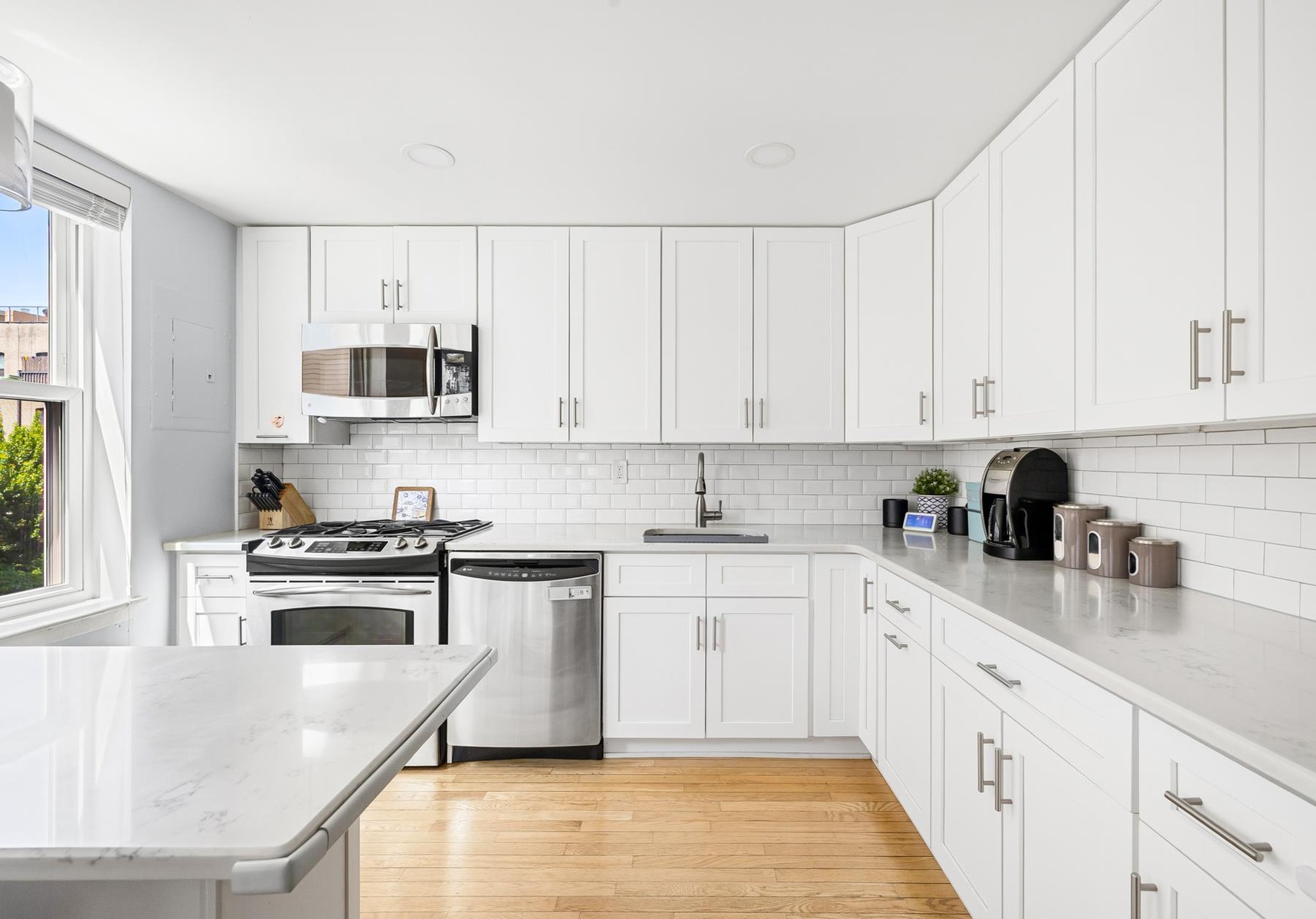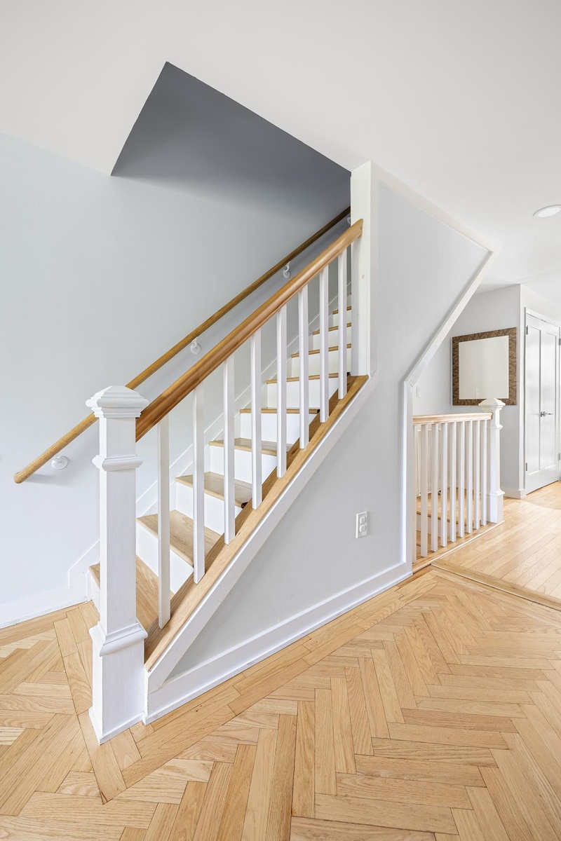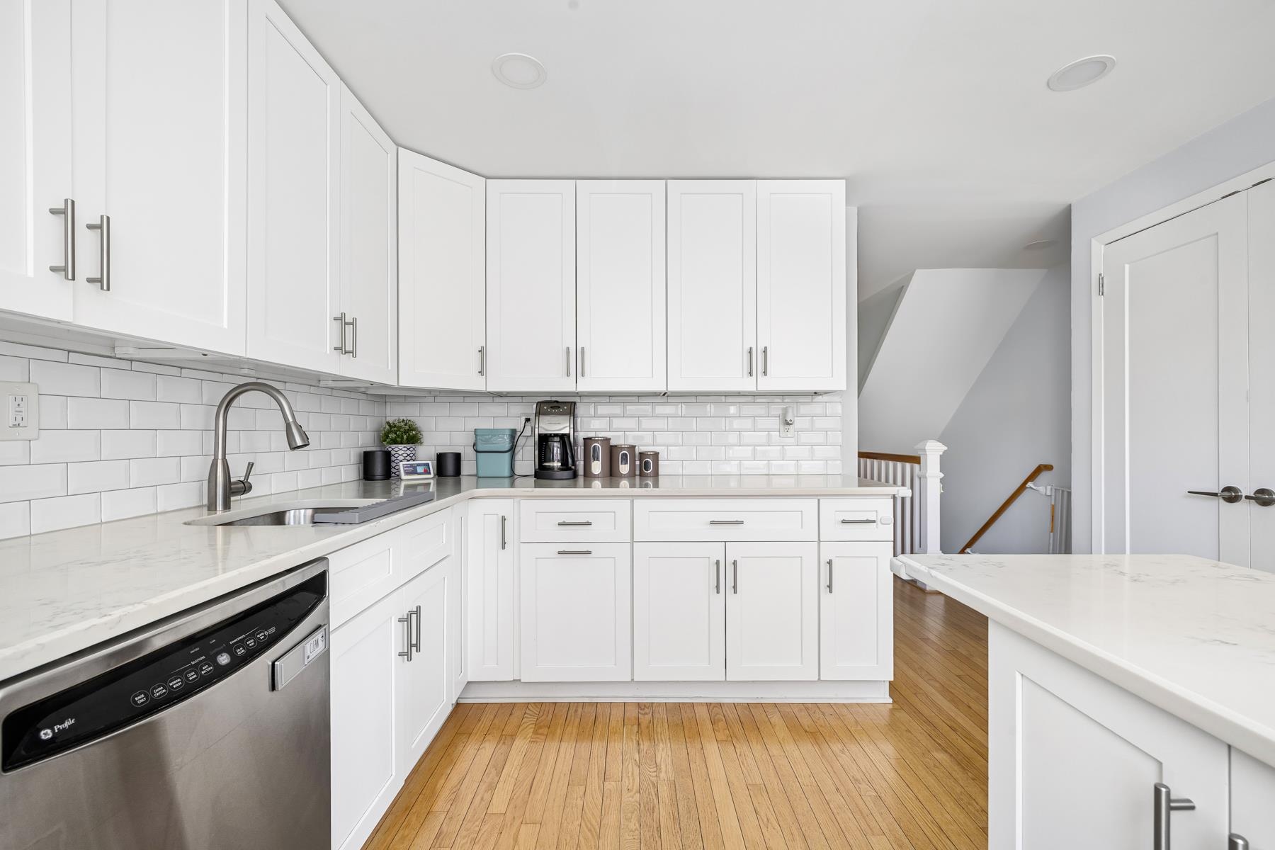 The main level of this meticulously renovated condo offers bright sunny windows with eastern and western exposures. Beautiful herringbone hardwood floors and recessed lighting throughout. Newly upgraded kitchen with peninsula, dishwasher, wine refrigerator, and plenty of cabinets and storage space. Newly updated powder room with new fixtures and full sized washer and dryer. Upgraded electrical throughout the apartment.