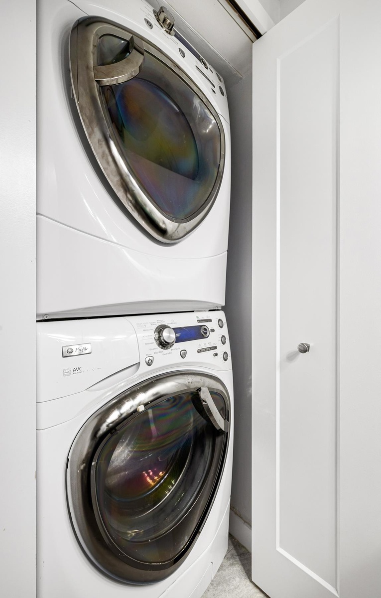 The upper level offers two bright king sized bedrooms each with custom built closets and a newly renovated bathroom with new fixtures including a warming rack for towels.