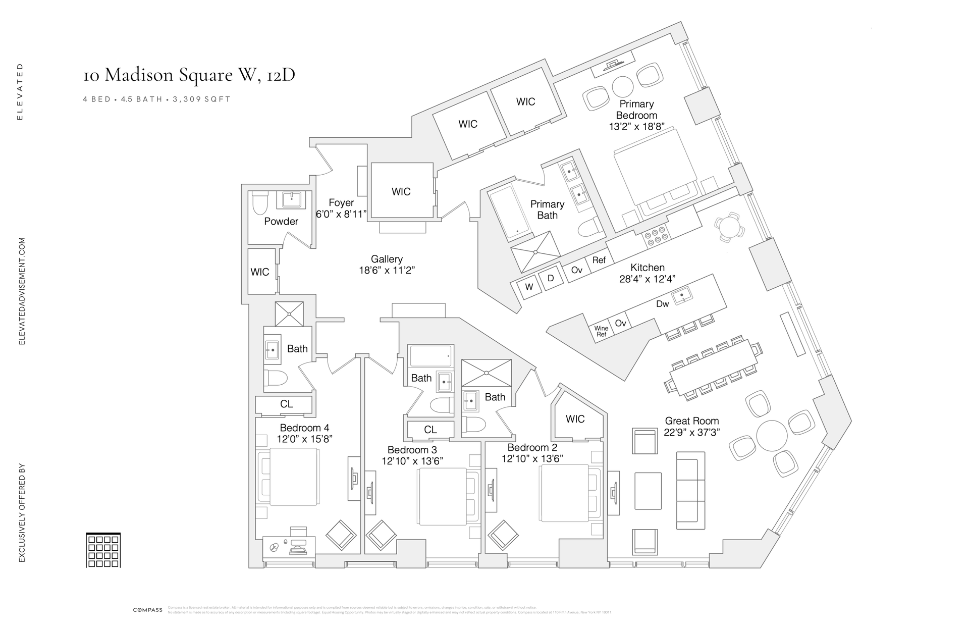 Residence 12D is the most desirable line at 10 Madison Square West with a rare triple exposure, East, South, and West, showcasing incredible light and iconic views of Madison Square Park. Spanning 3,309 square feet of thoughtfully designed living space, this home defines modern luxury in the heart of Flatiron.