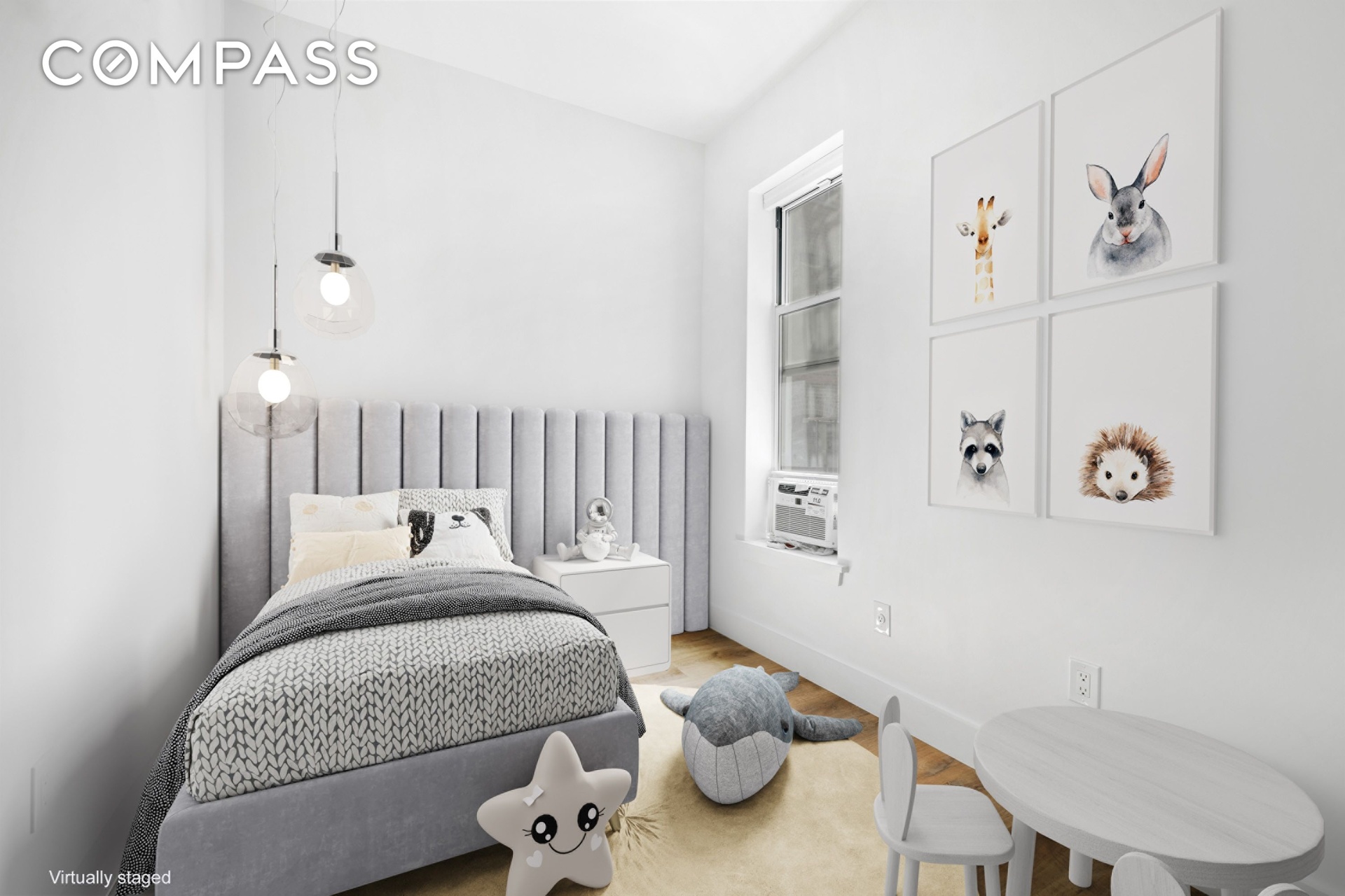 As you walk into this triple-mint home, an oversized living room, with plenty of space for a separate dining area, welcomes you. This meticulously designed home has all the trimmings of sublime living in NYC: A full-sized washer and dryer in the unit, beautifully finished hardwood floors, extra high ceilings and an open-concept kitchen with a large breakfast bar and top-notch appliances. The thoughtful layout ensures a distinct separation between the common areas of the apartment and the bedrooms.