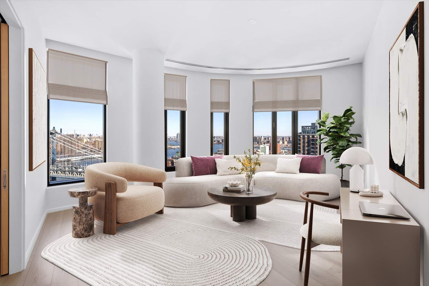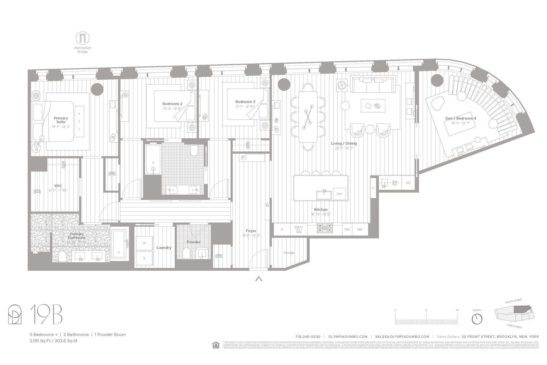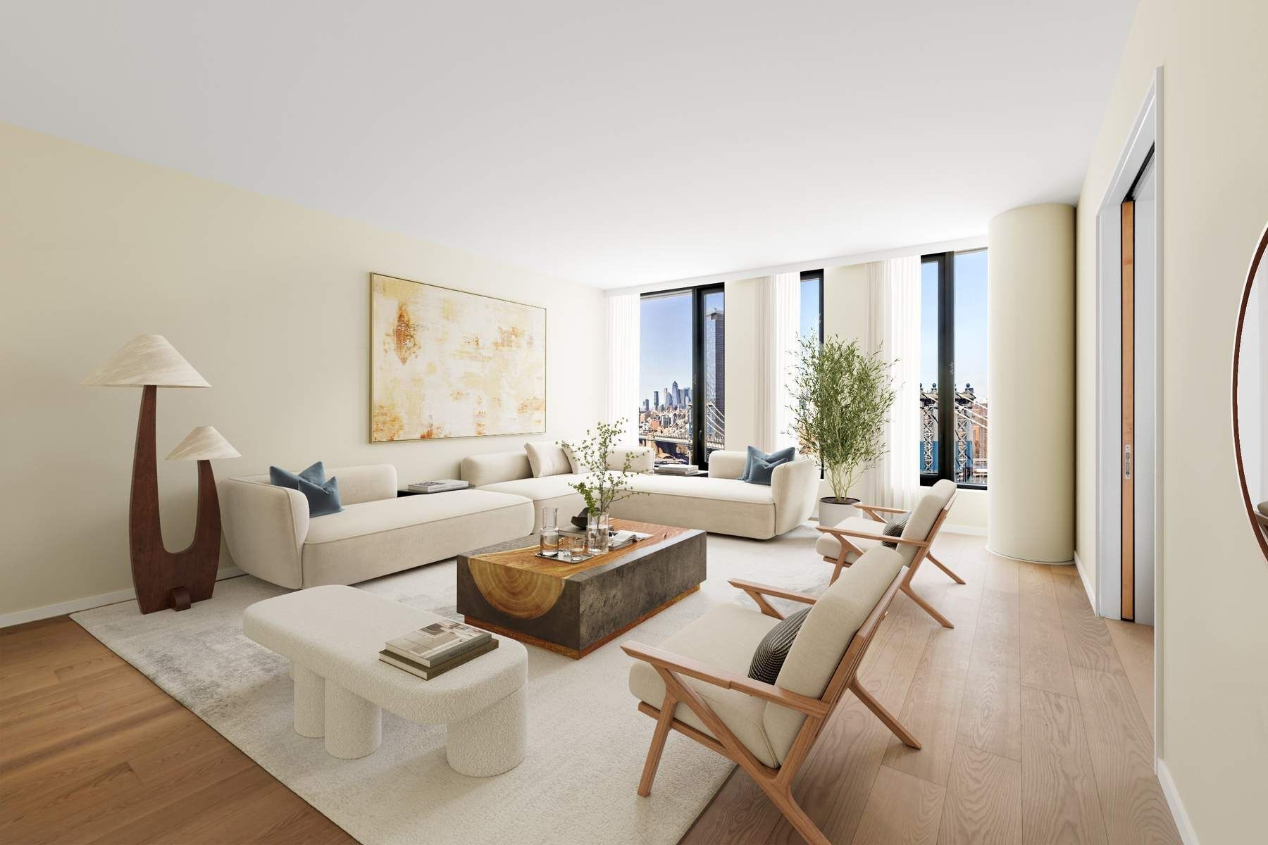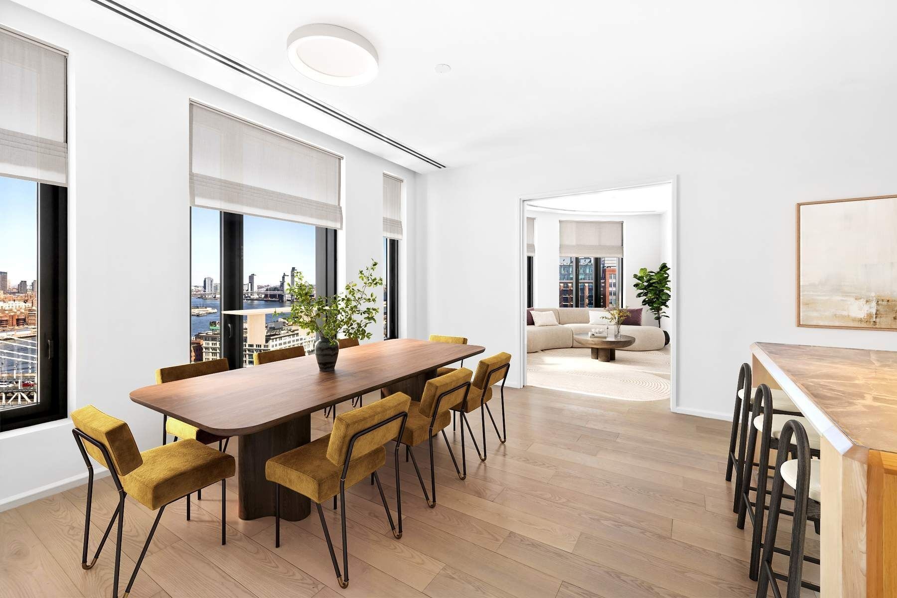 With views of the Manhattan Bridge and skyline, corner Residence 19B is the definition of elite living. This three bedroom plus, two-and-a-half-bathroom home with 2,191 SF of interior space is imbued with an everlasting and modern beauty.
