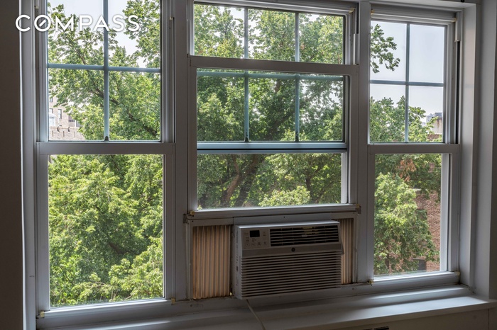 Prewar details include Herringbone hardwood floors freshly sanded and refinished in 2024, high ceilings, new doorknobs including some of original Bakelite knobs and bullet hinges, Asian design elegant glass ceiling lamps installed in foyer and dressing area, upgraded Electric including wiring and new box, new paint throughout including closets and closet floors - 2024. This home boasts gorgeous views of the beautiful mature grand old tree in the planted garden outside of the Castle Village Management Office, spectacular in all seasons, and a Hudson River/partial GWB view from the triple pane window in the LR!