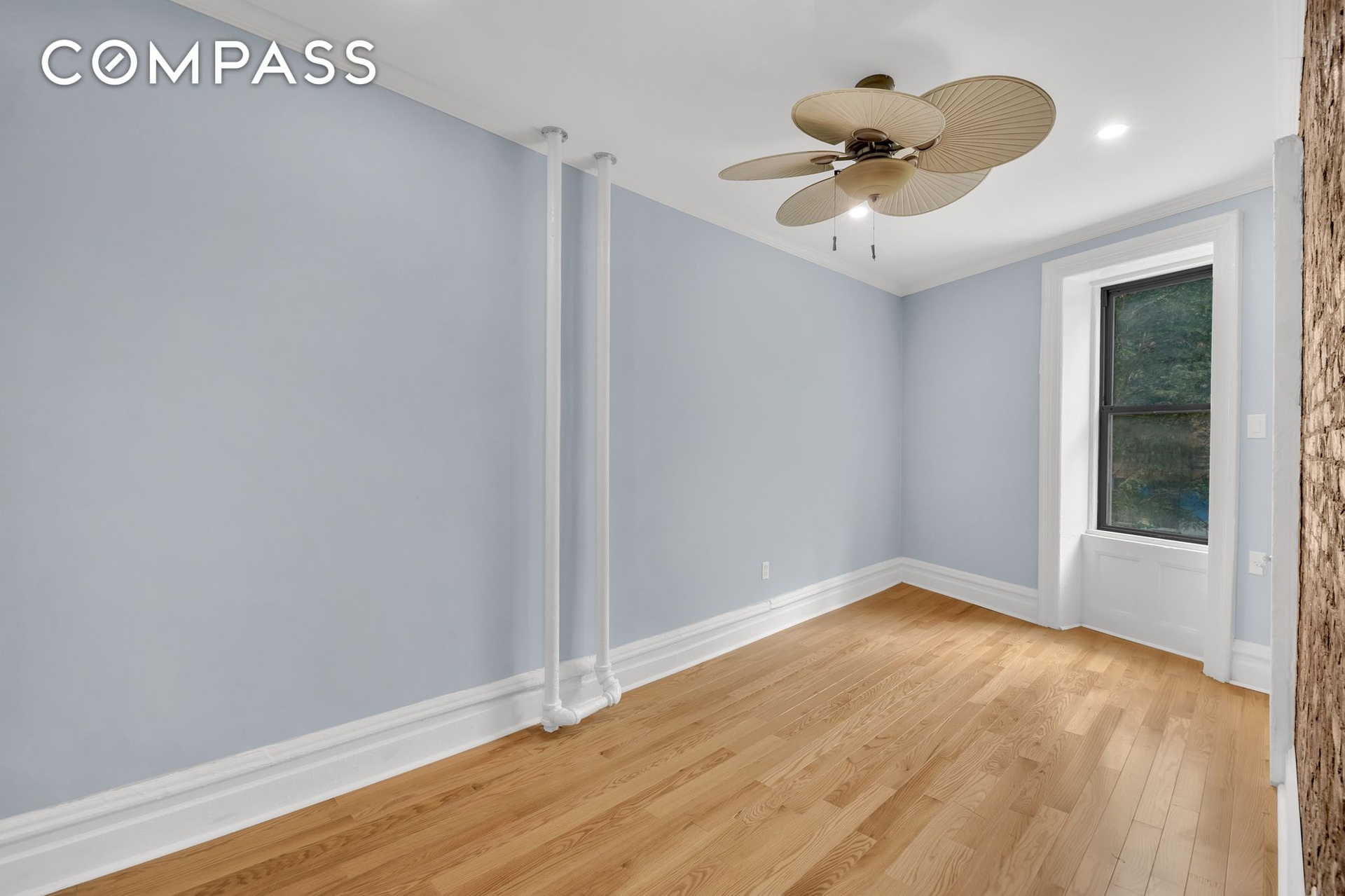 - Exposed brick wall in primary bedroom