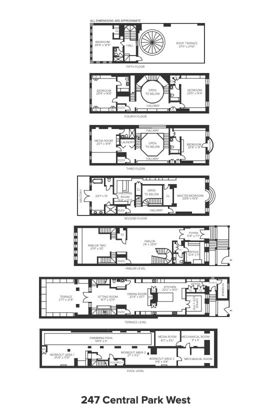 A rooftop terrace crowns the property, providing panoramic vistas of Central Park.
