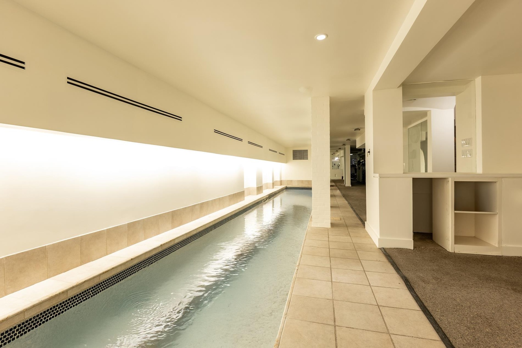 On the lower level, the residence features a nearly 60-foot indoor lap pool and a dedicated home fitness area, elevating the standard of in-home wellness amenities.
